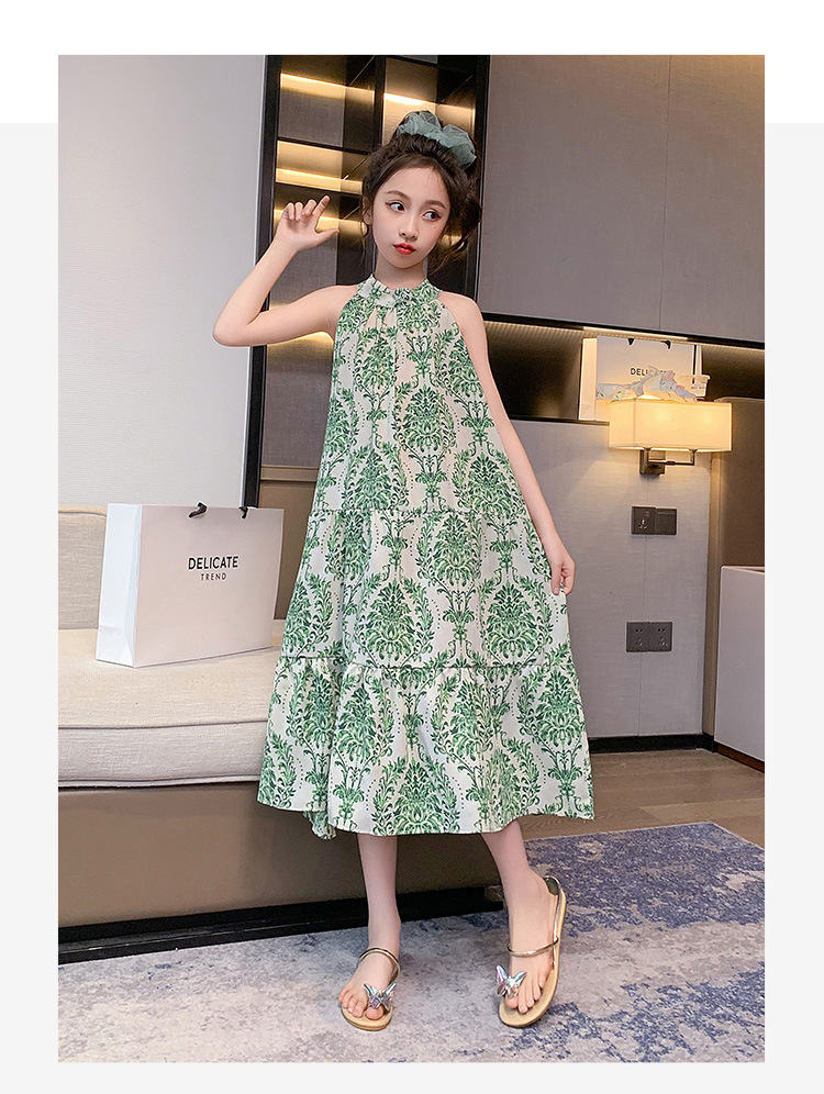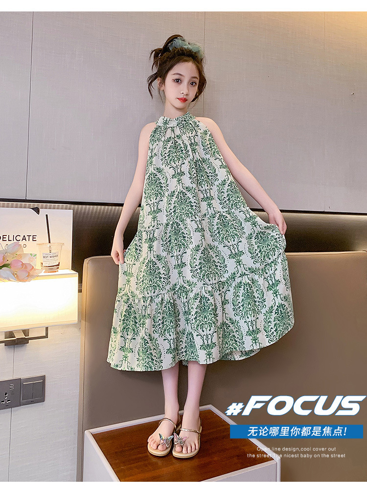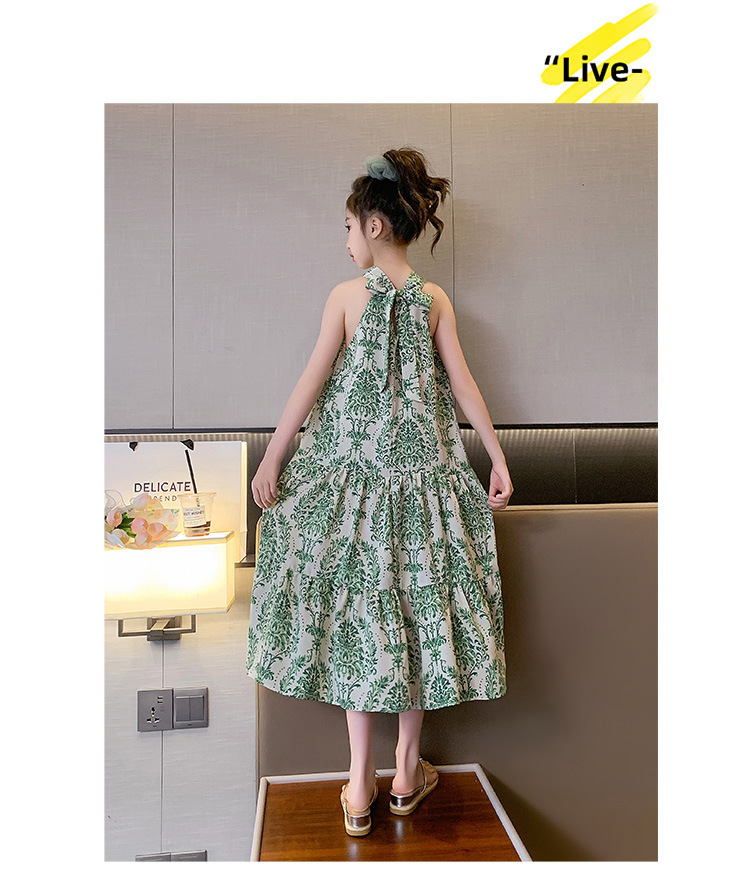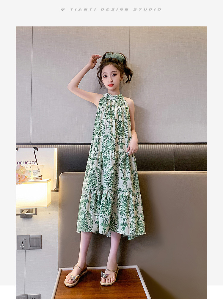 女童夏季连衣裙2024新款网红裙子中大童挂脖背心裙夏装儿童沙滩裙