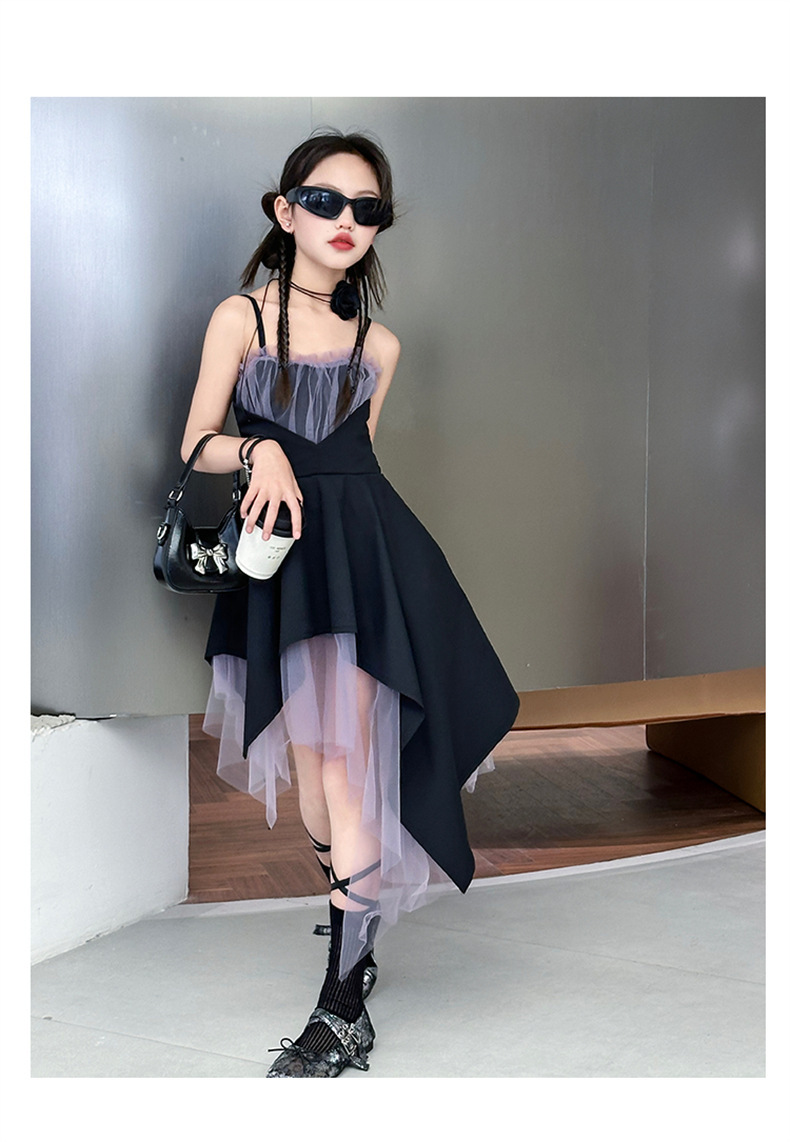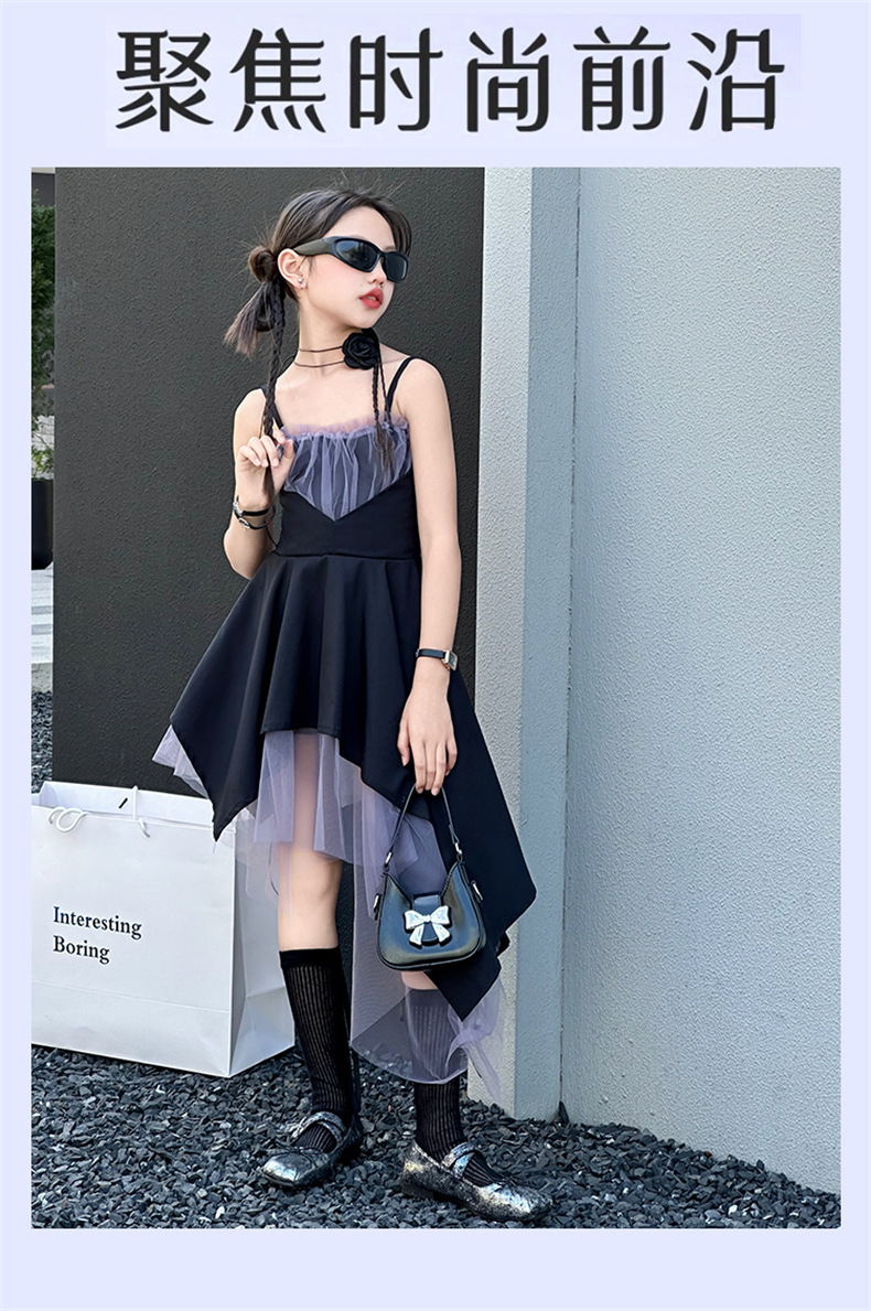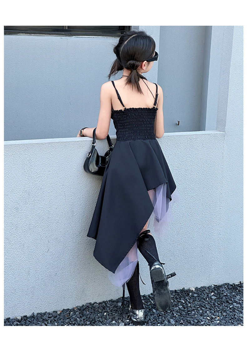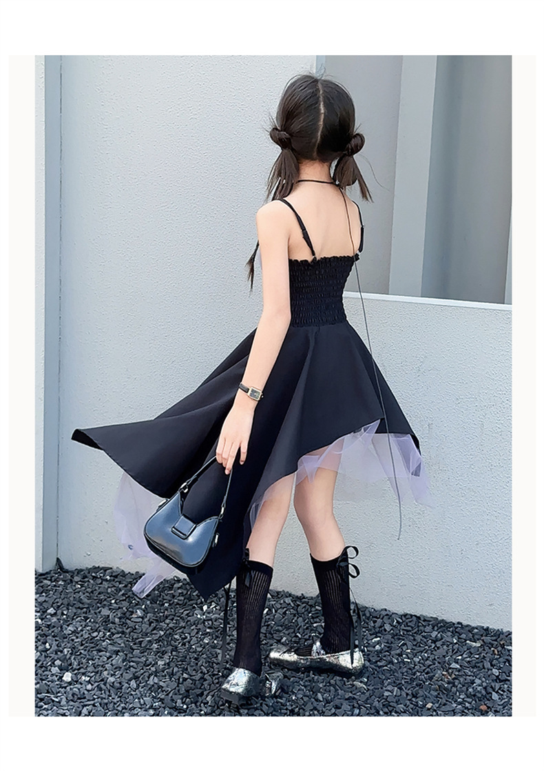 女童黑色连衣裙夏季2024新款儿童韩系洋气吊带裙大童夏装时髦裙子