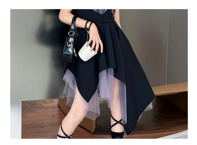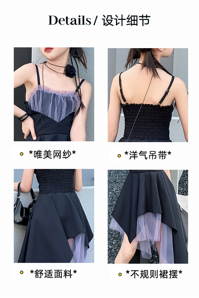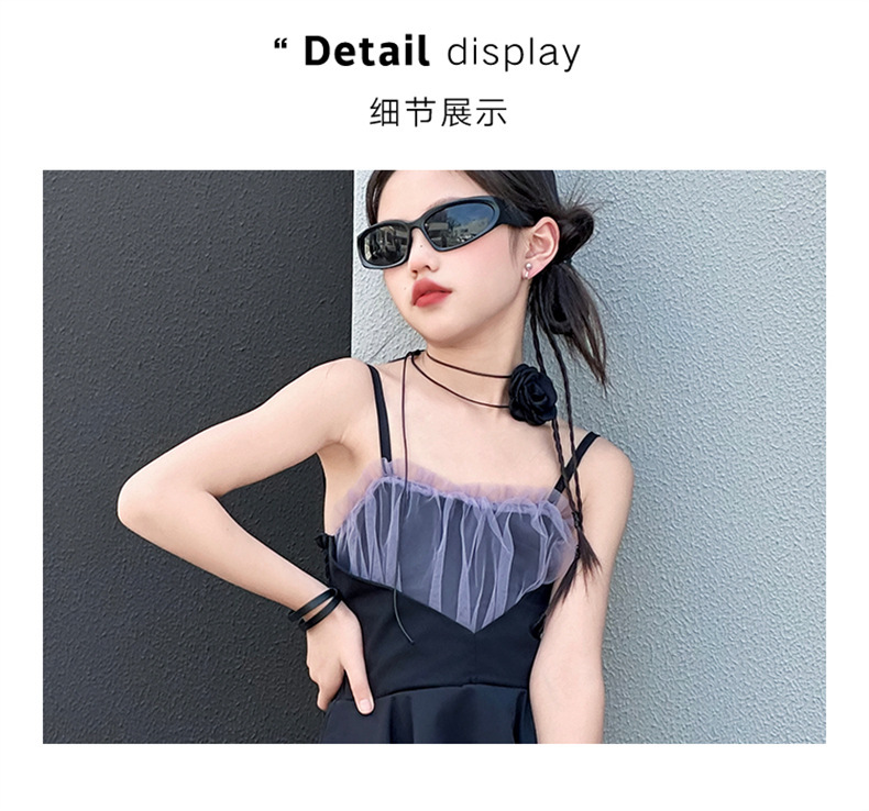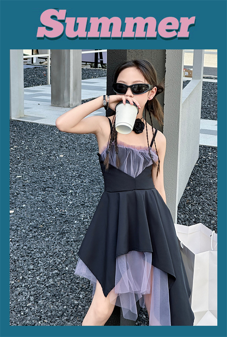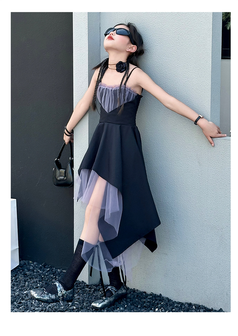 女童黑色连衣裙夏季2024新款儿童韩系洋气吊带裙大童夏装时髦裙子