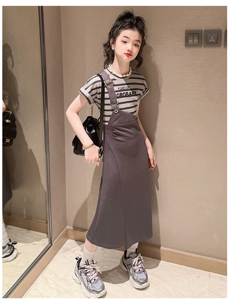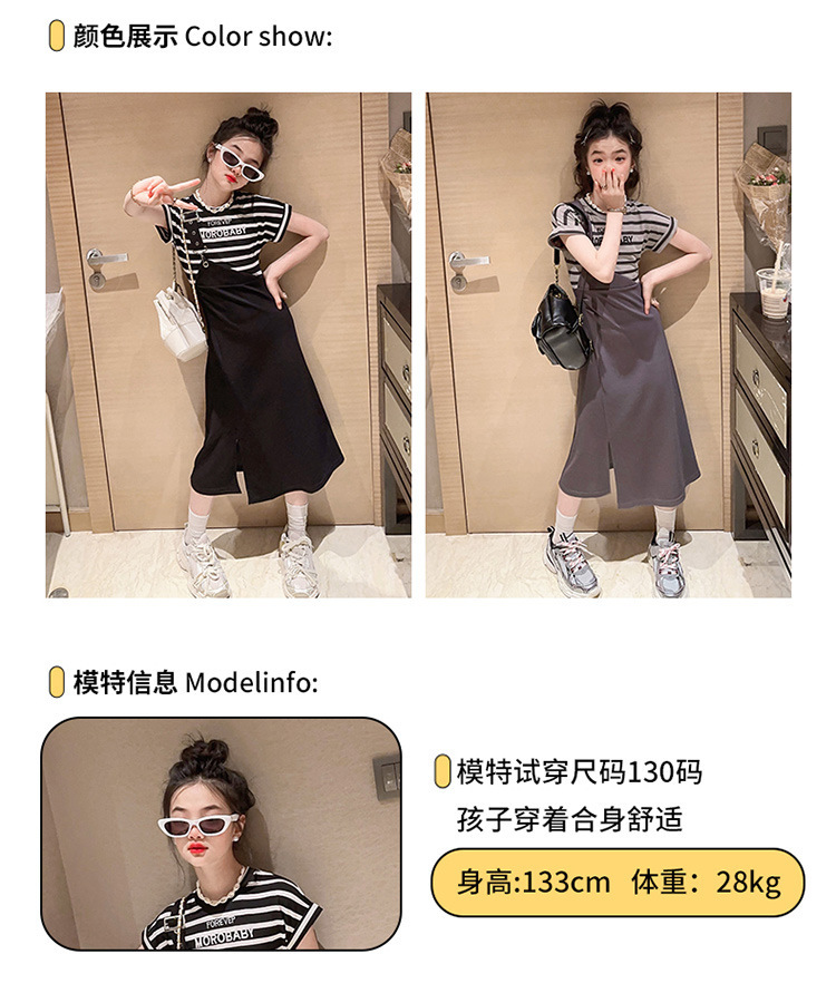 桔子虎女童连衣裙新款时髦洋气裙子女孩薄款百搭连衣裙中大童背带