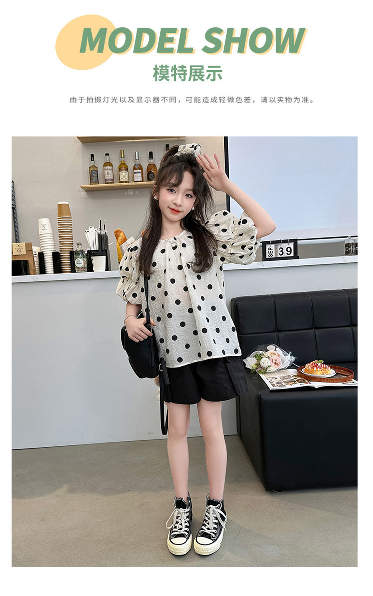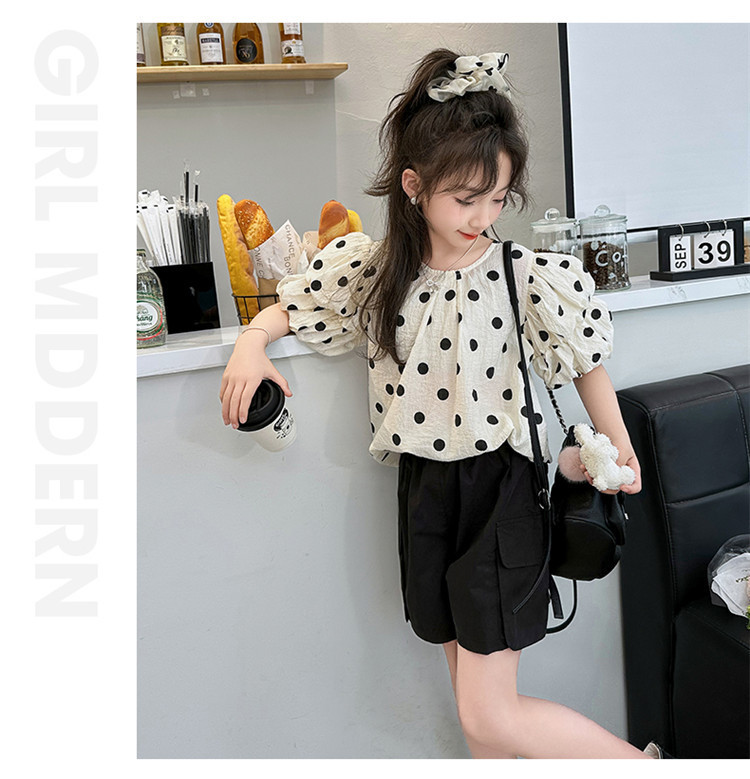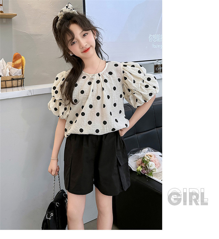女童夏季套装2024新款女大童夏装洋气泡泡袖短裤儿童休闲两件套潮