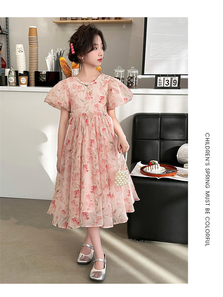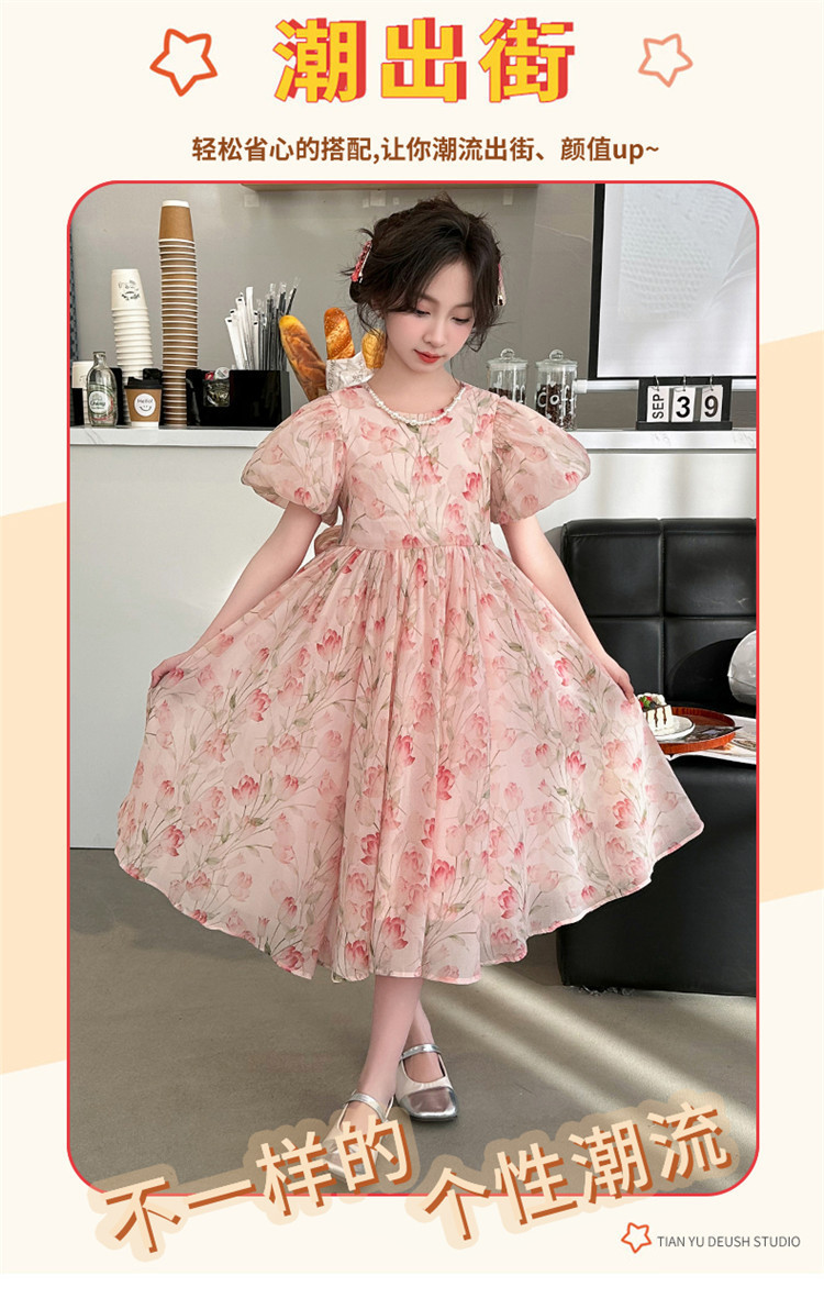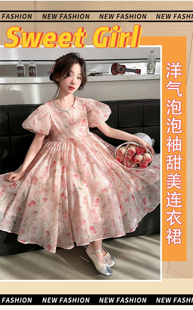 桔子虎女童夏装连衣裙2024新款女孩甜美泡泡袖公主裙中大童夏季碎