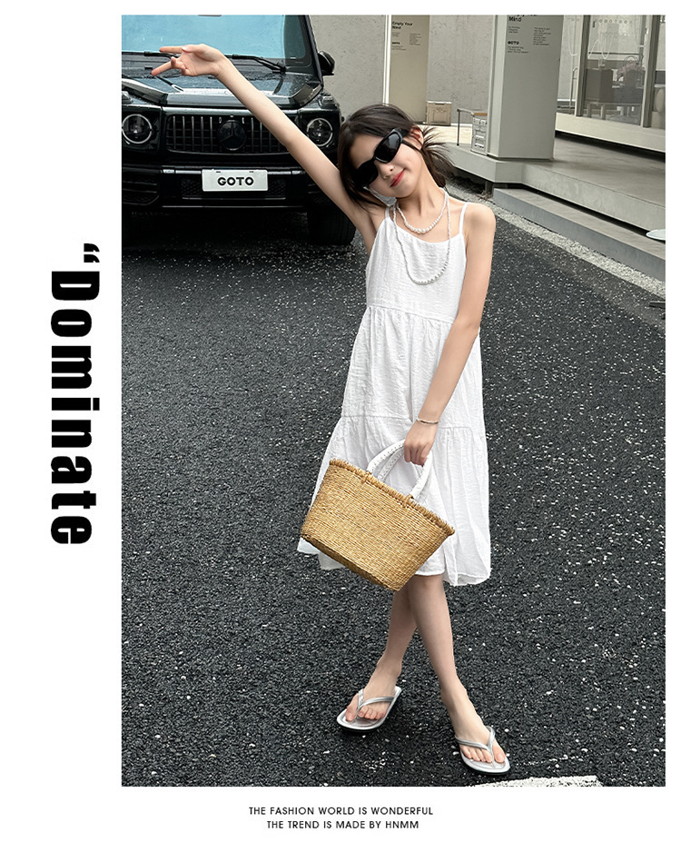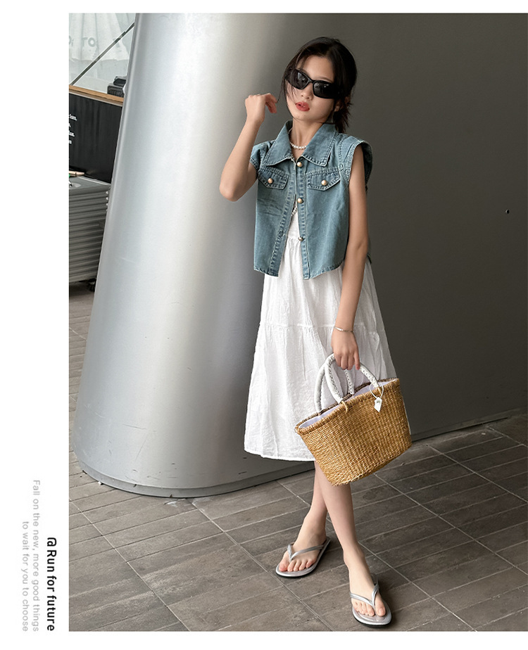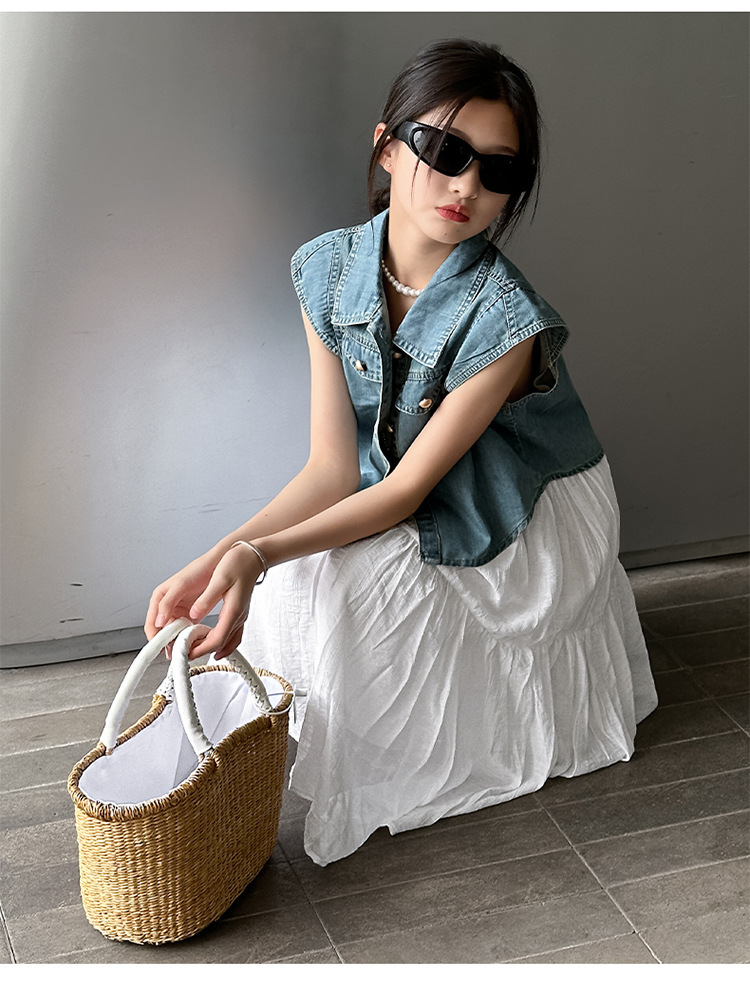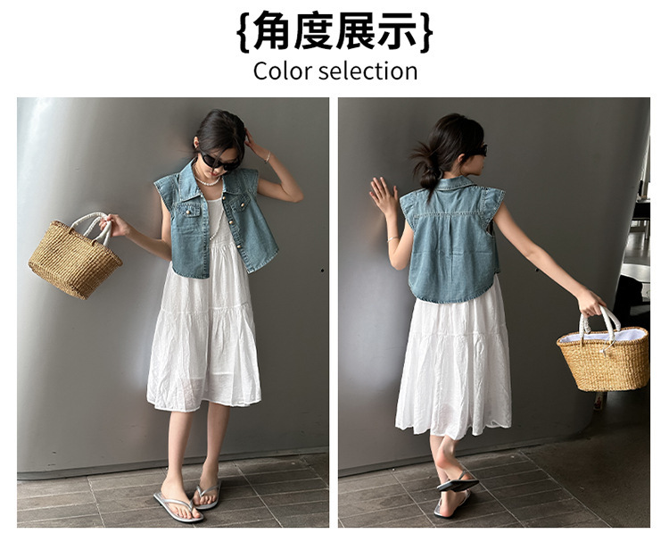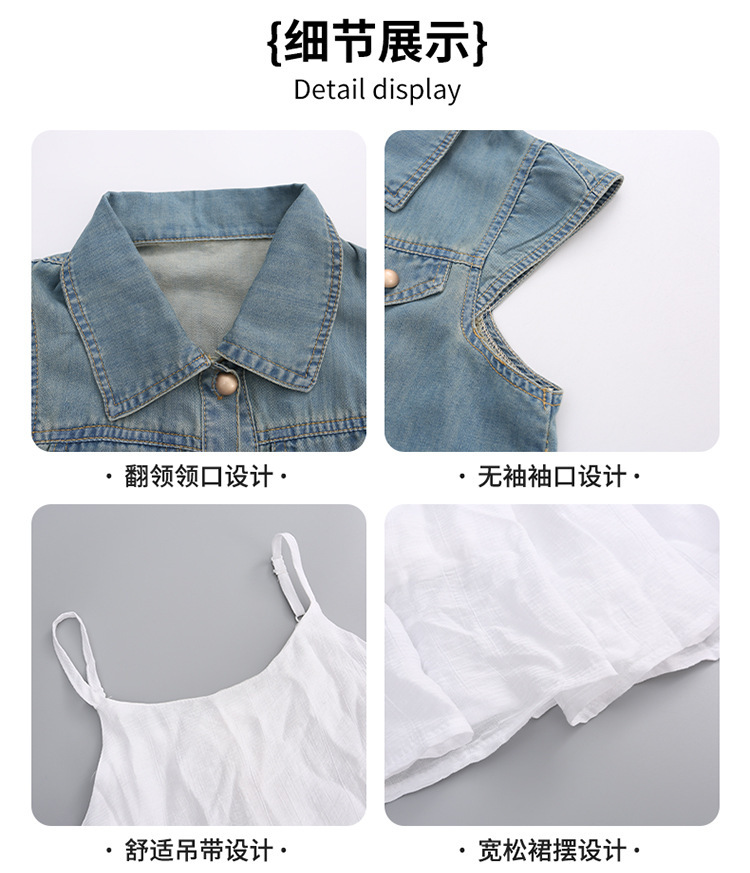 女童夏装连衣裙2024新款儿童牛仔马甲夏季白色蛋糕裙大童洋气裙子