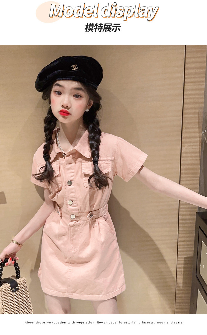 女童夏季牛仔连衣裙2024新款洋气儿童夏装学院风短袖大童工装裙子