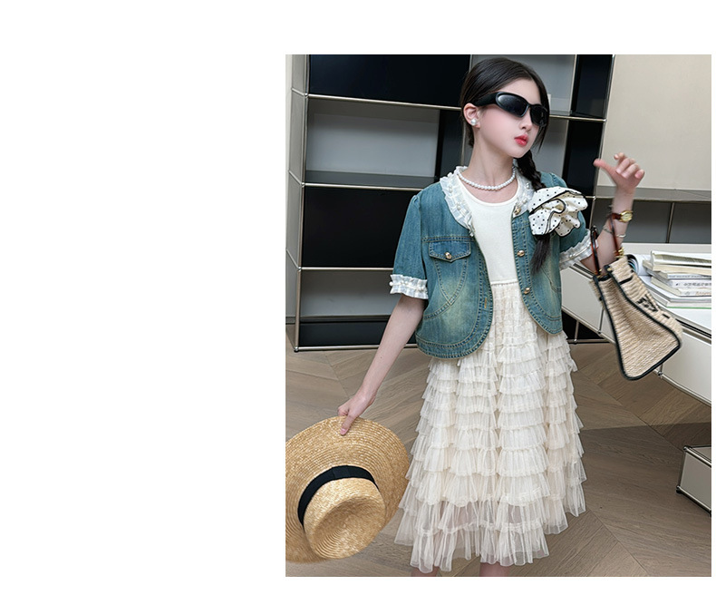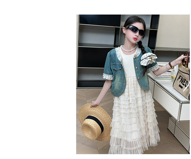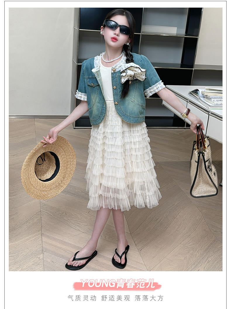 女童连衣裙夏季2024新款儿童女大童夏装洋气蛋糕裙背心裙子套装夏