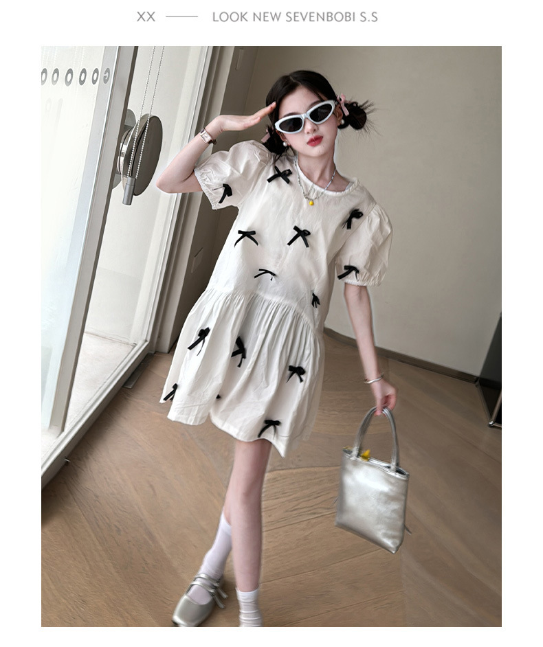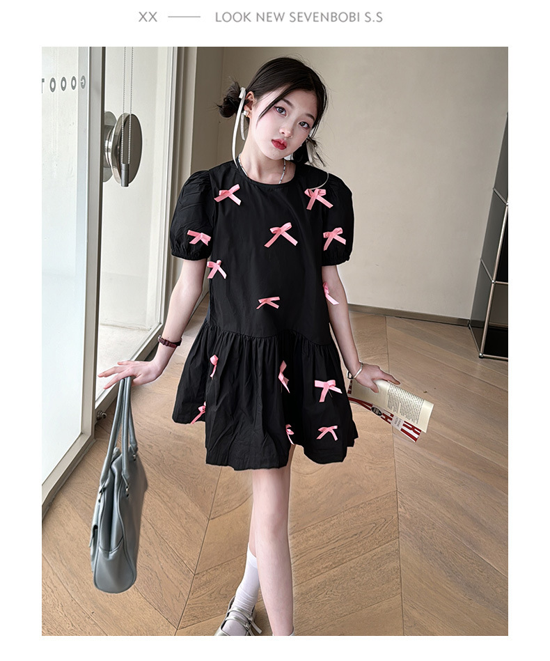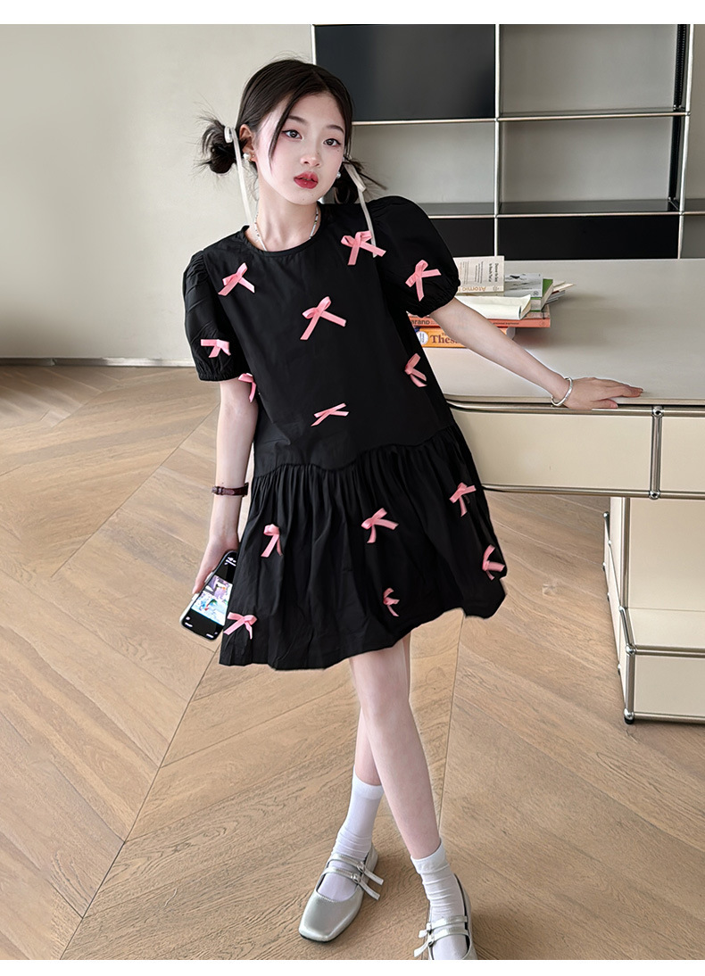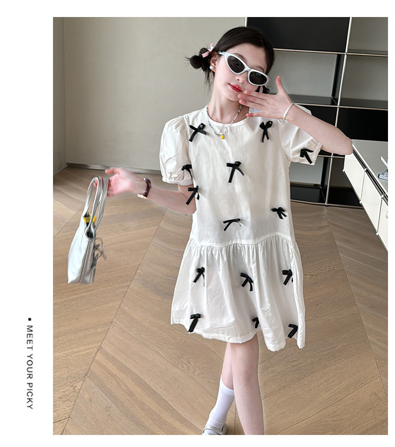 女童夏季连衣裙2024新款洋气儿童蝴蝶结连衣裙女大童裙子时髦百搭