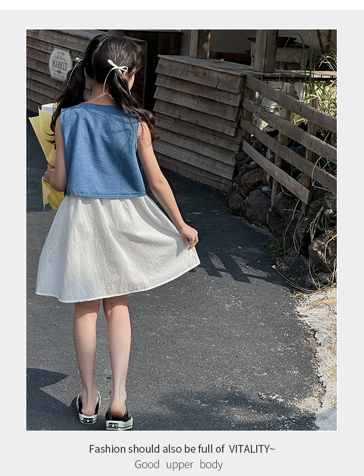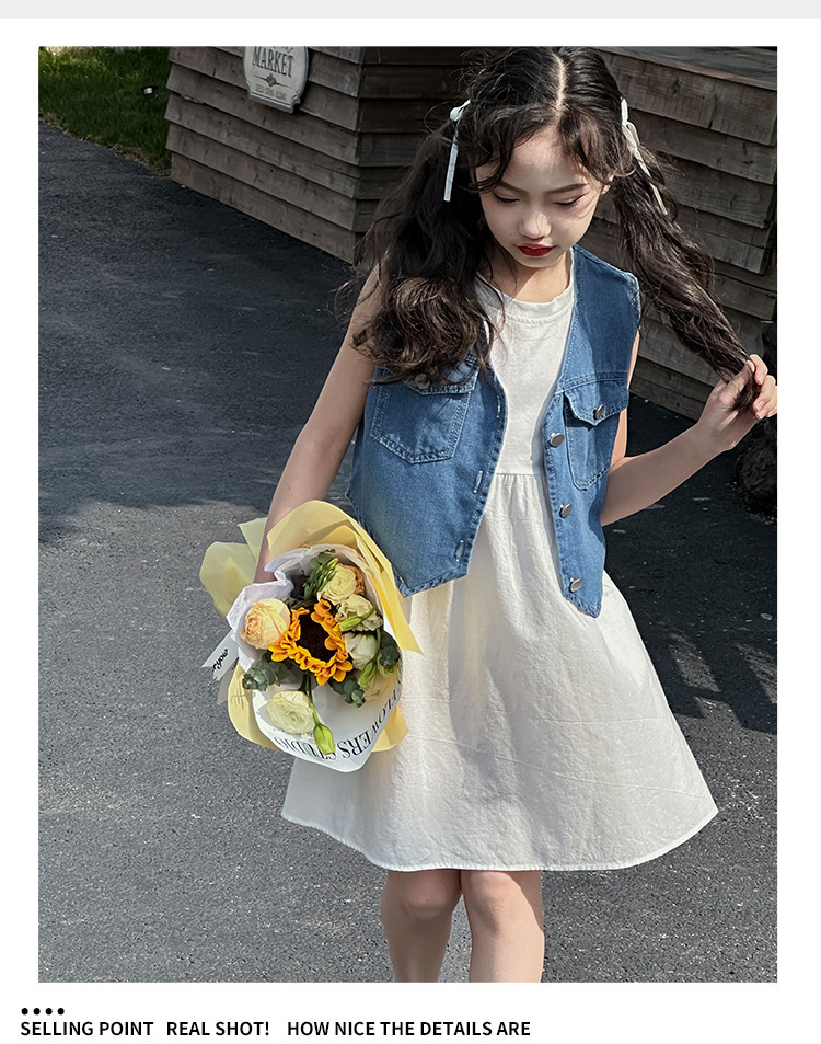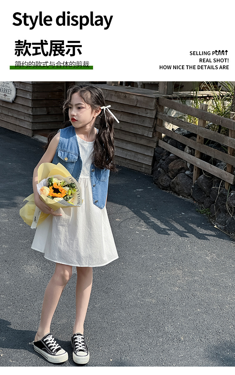 女童夏装套装2024新款女大童牛仔马甲夏季女大童连衣裙两件套洋气
