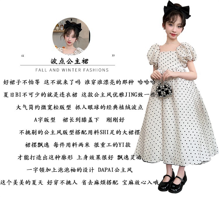 女童连衣裙夏装2024新款洋气儿童甜美裙子女大童夏季泡泡袖公主裙