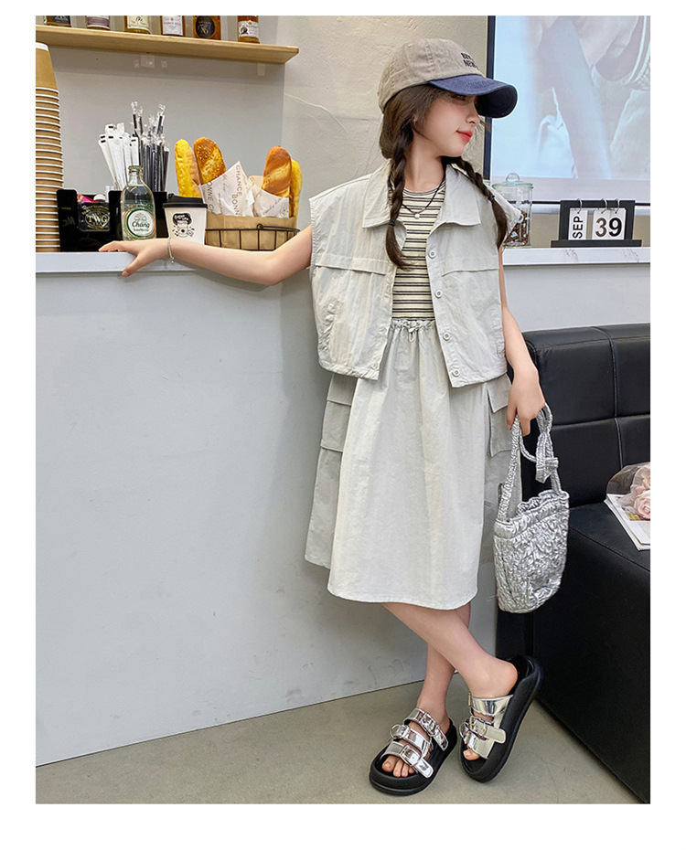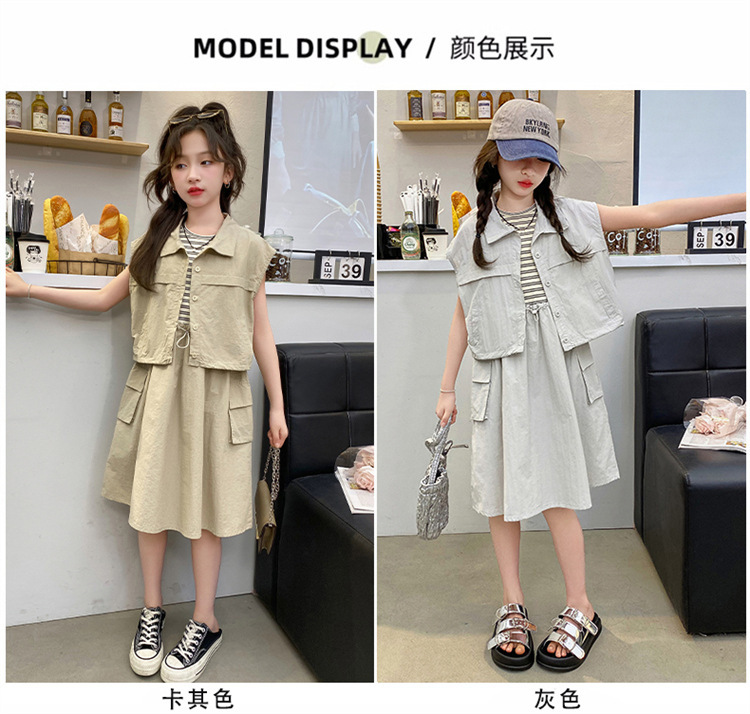 女童夏装套装2024新款大儿童马甲时髦夏季小孩连衣裙两件套洋气潮