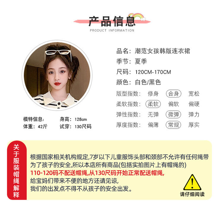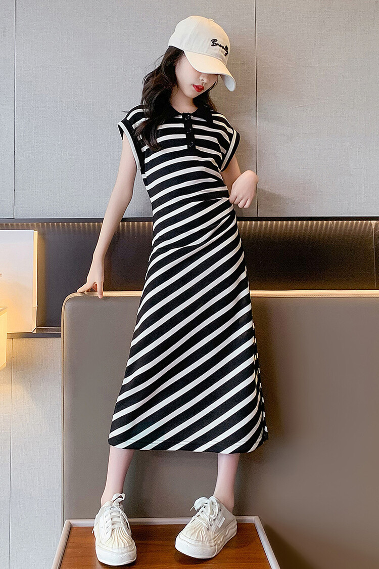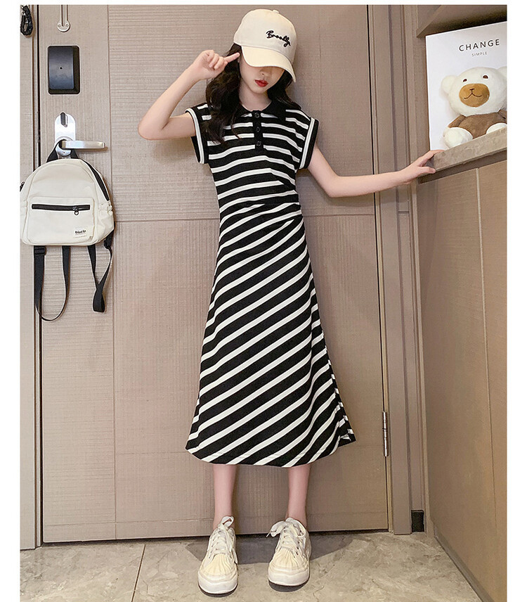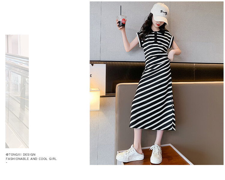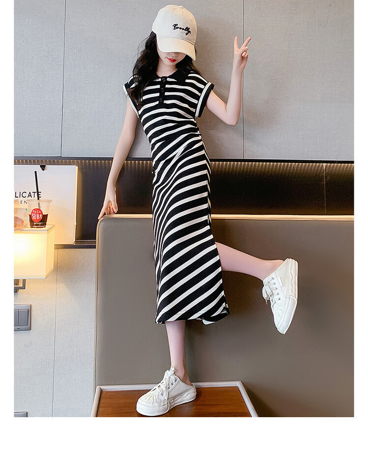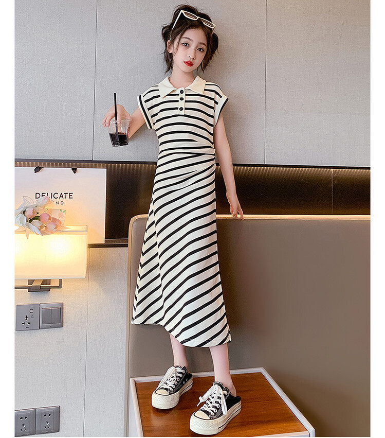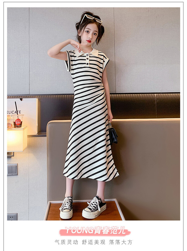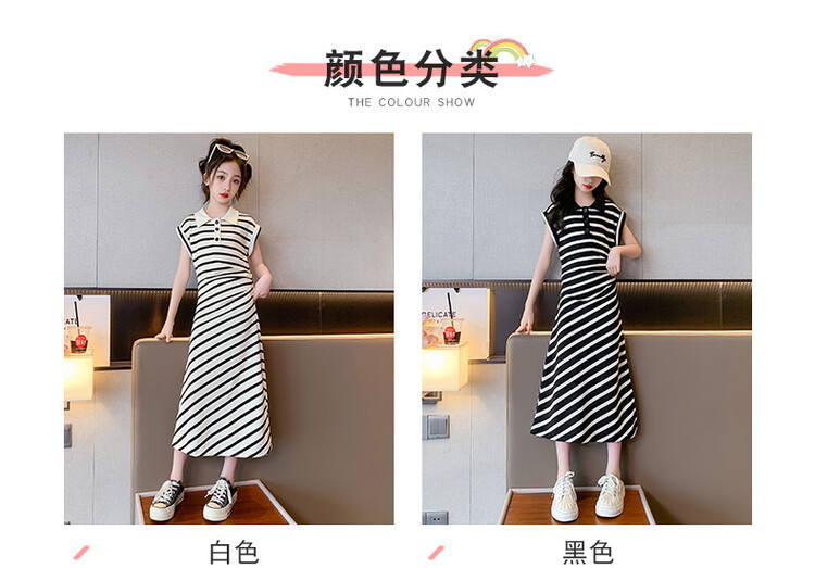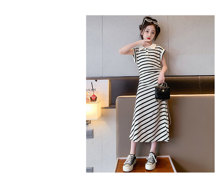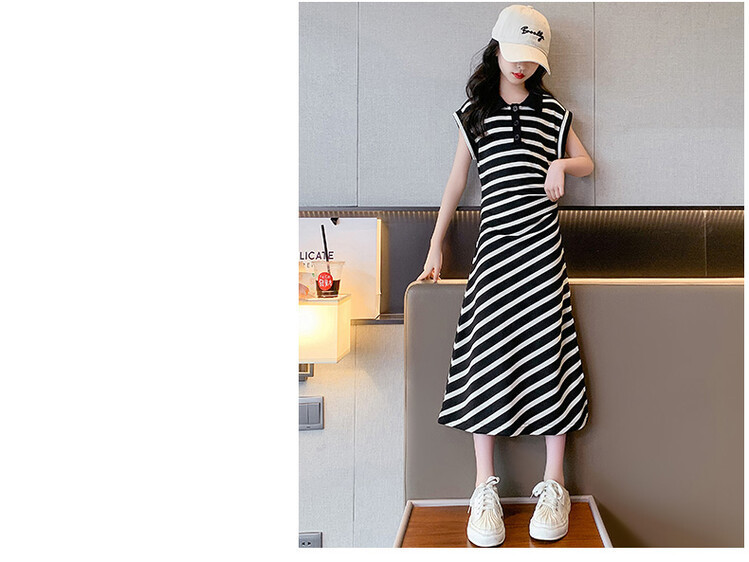 女童条纹连衣裙夏季2024新款洋气儿童无袖休闲长裙小女孩polo裙子