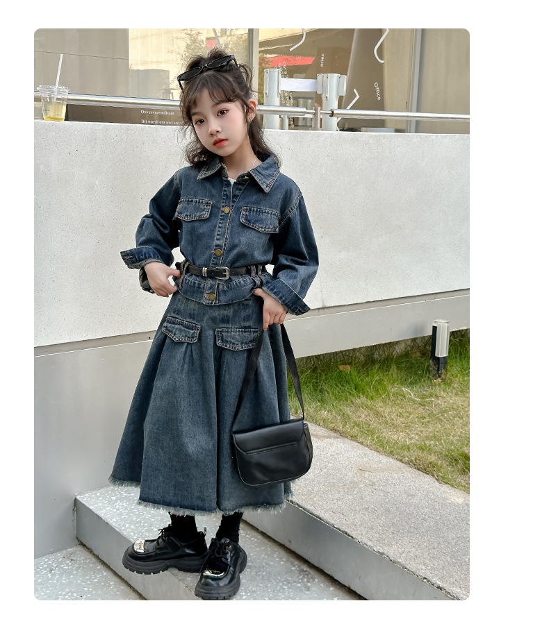 女童连衣裙春秋2024新款洋气儿童时髦裙子套装女大童春装牛仔裙潮