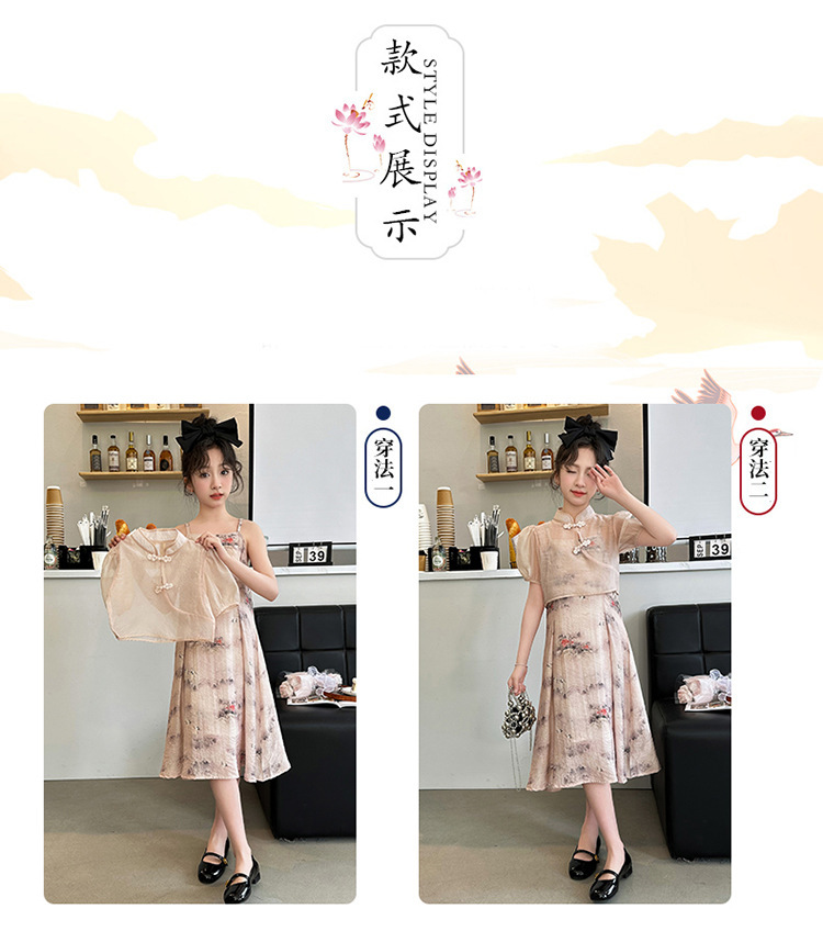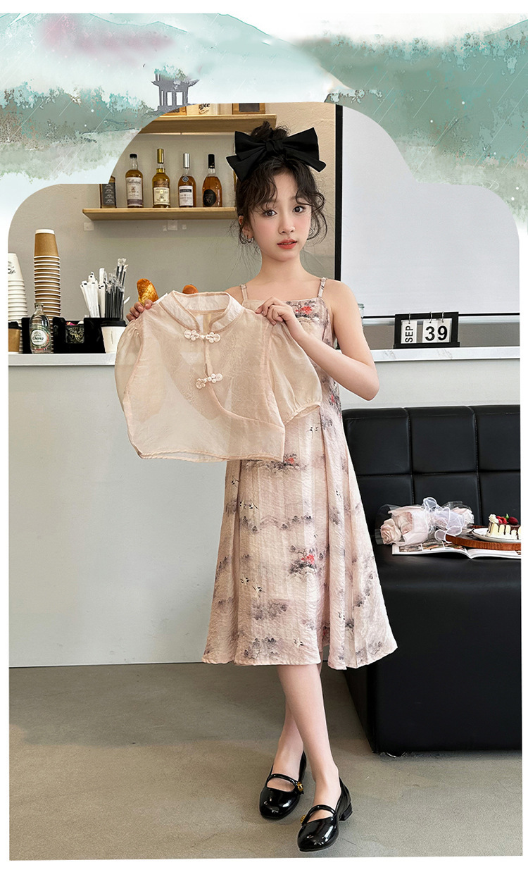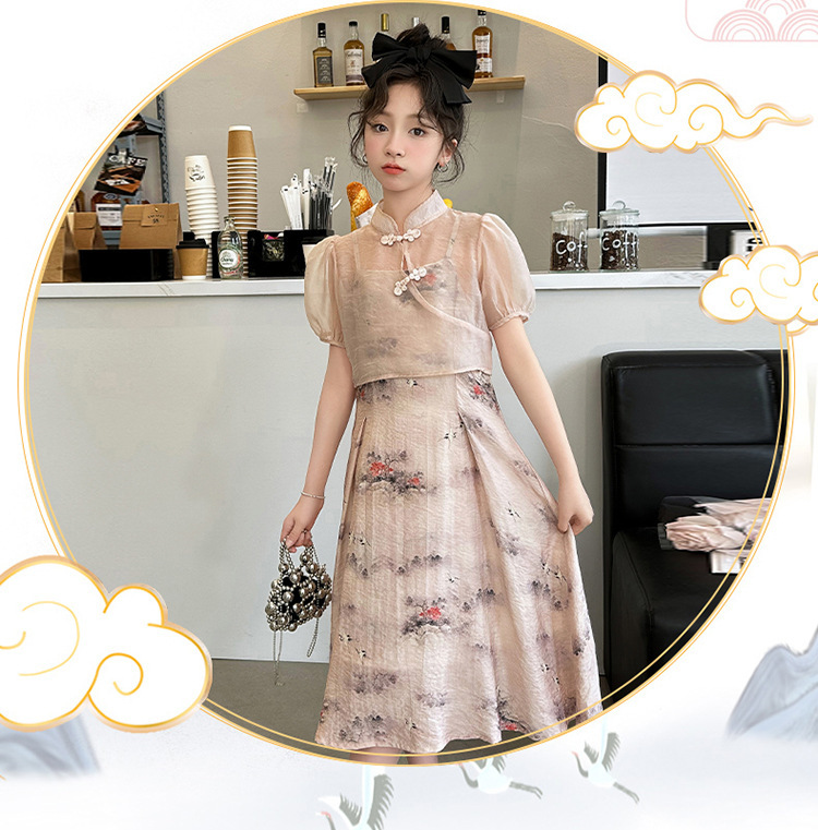 女童套装夏季连衣裙2024新款女孩个性碎花国风盘扣连衣裙两件套装