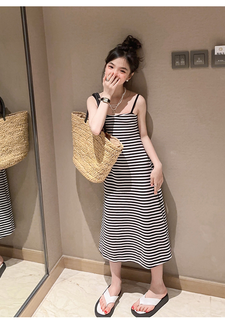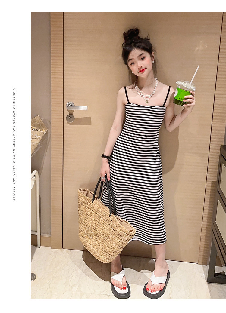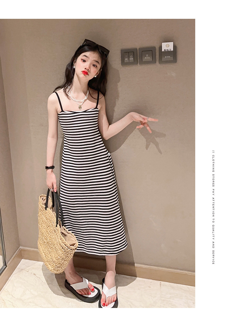 女童吊带连衣裙夏季2024新款儿童女大童夏装薄款洋气长裙条纹裙子