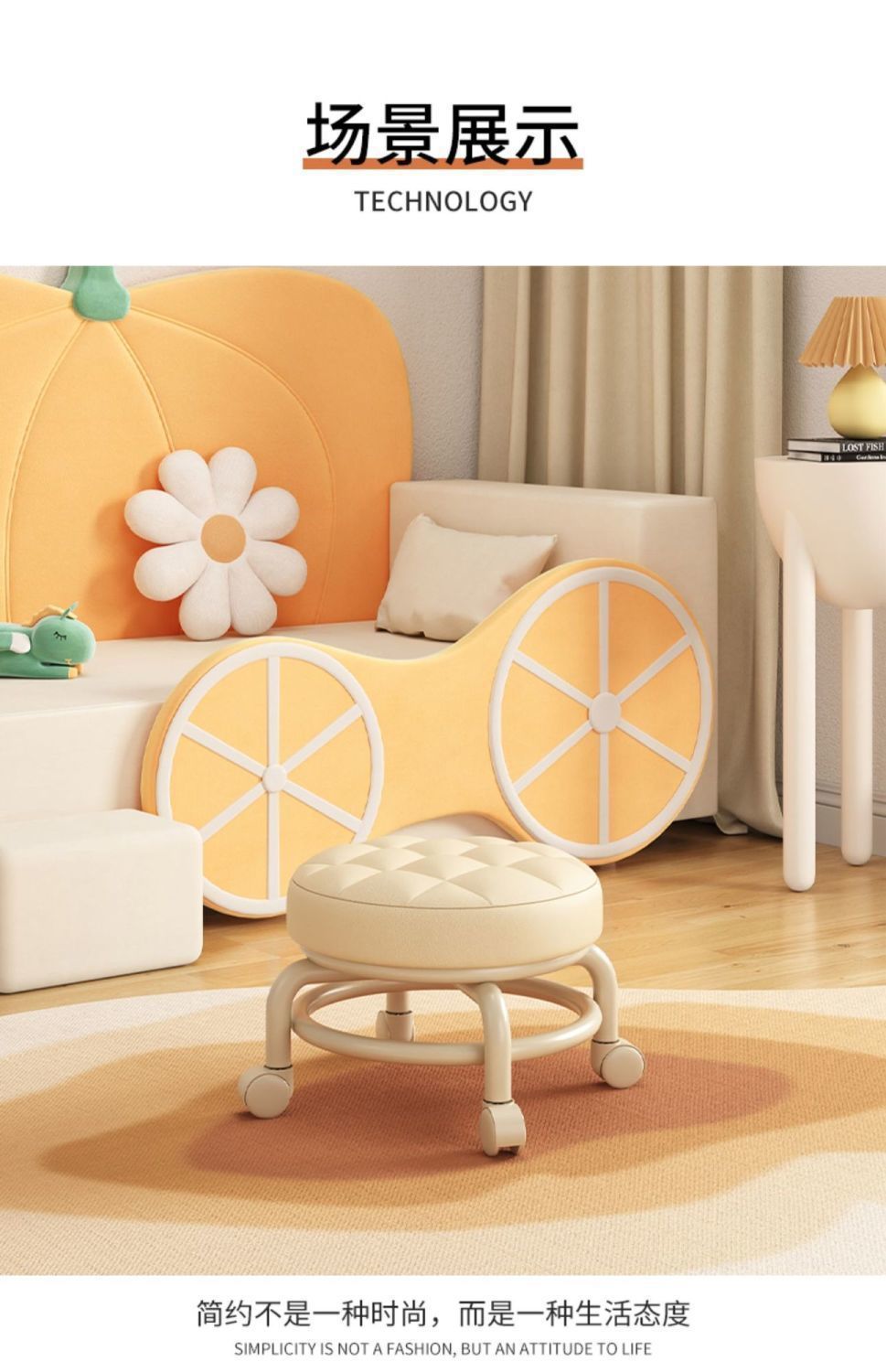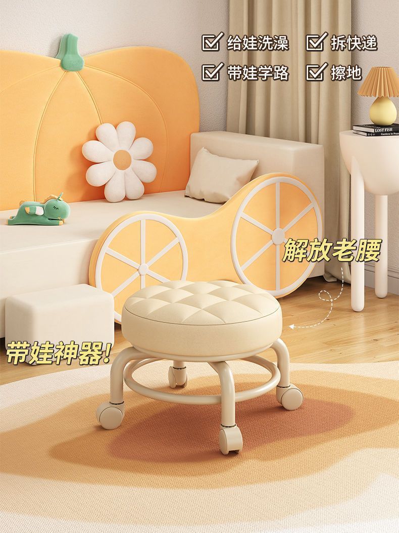 滑轮矮凳家用万向轮网红小凳子带轮带娃神器儿童小凳美缝圆板凳