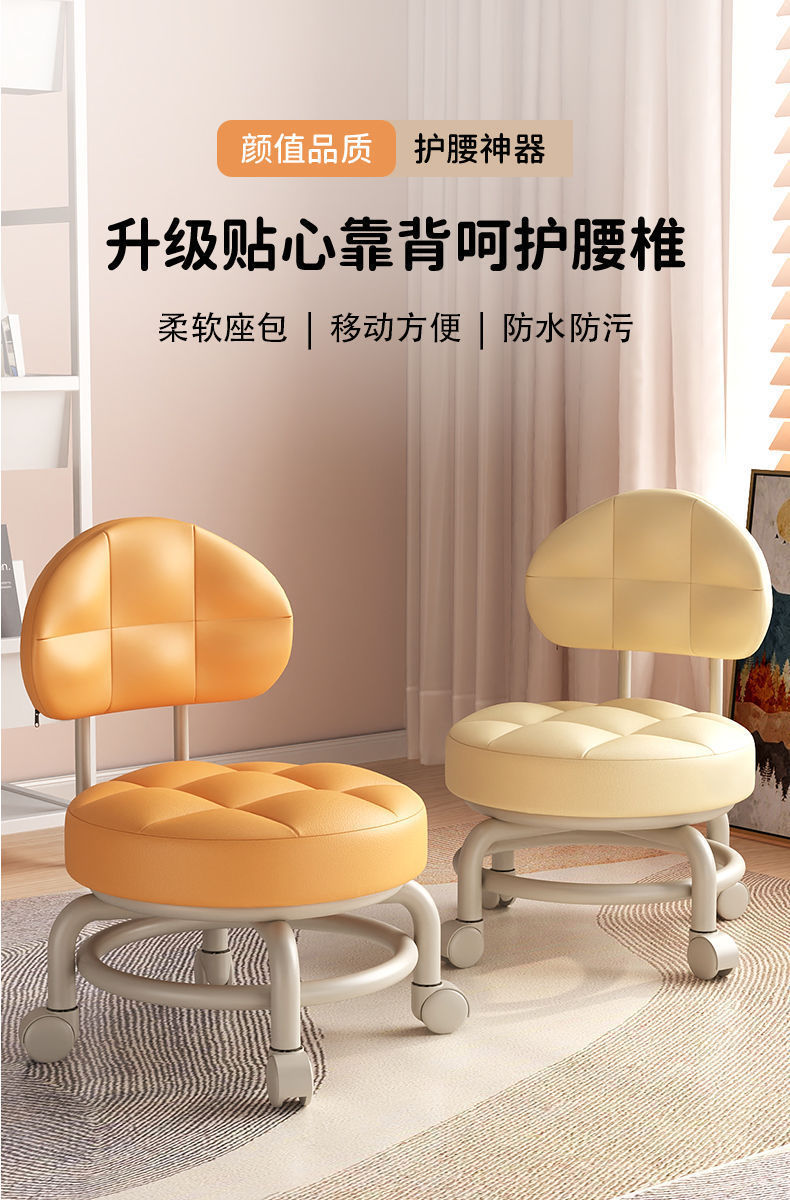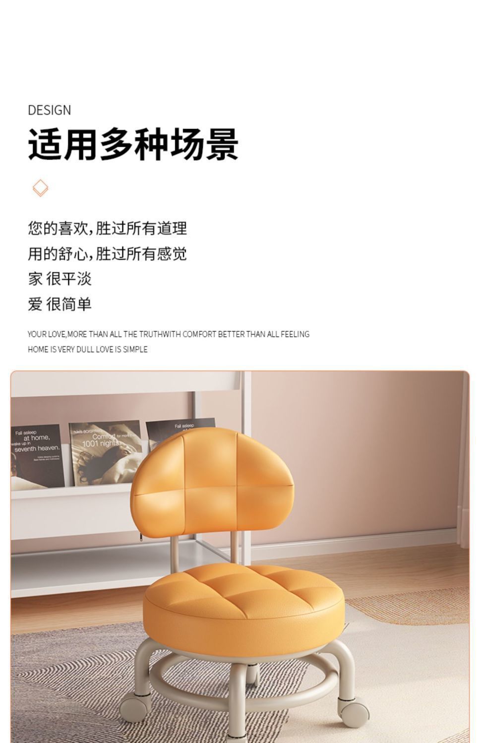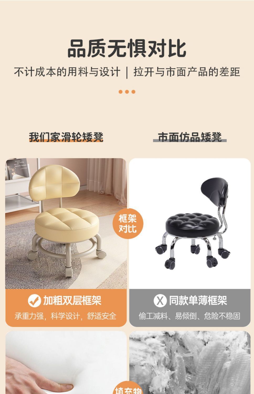 家用滑轮矮凳美缝儿美甲擦地带娃神器圆凳儿童学步移动多功能凳子
