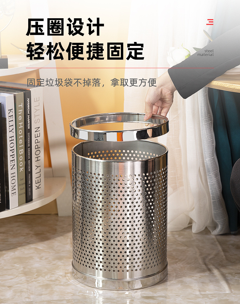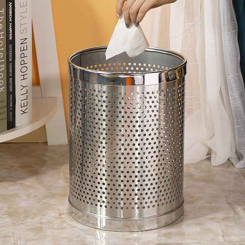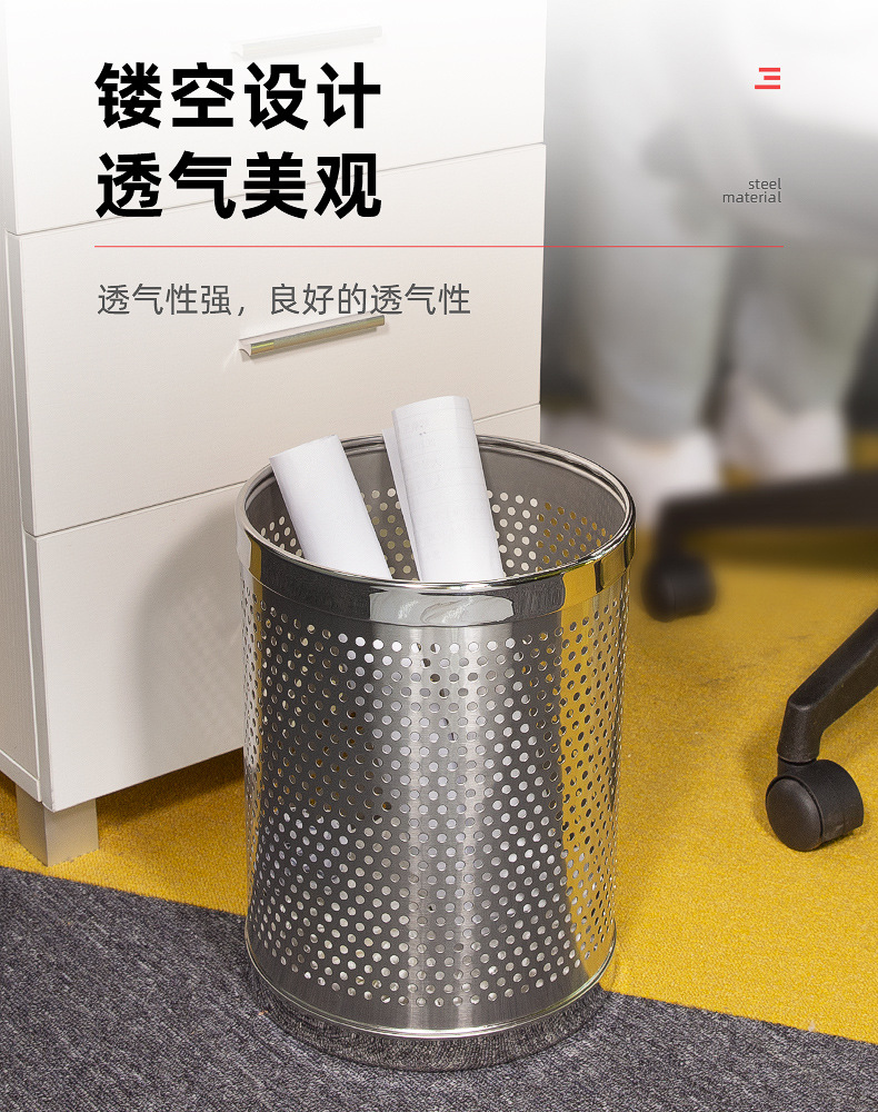不锈钢垃圾桶家用镂空垃圾桶办公室纸篓卧室金属厕所垃圾篓批发