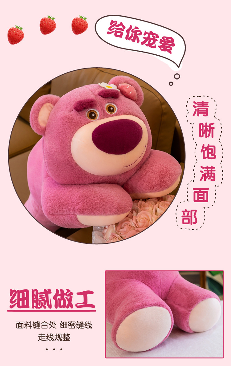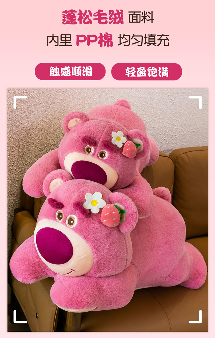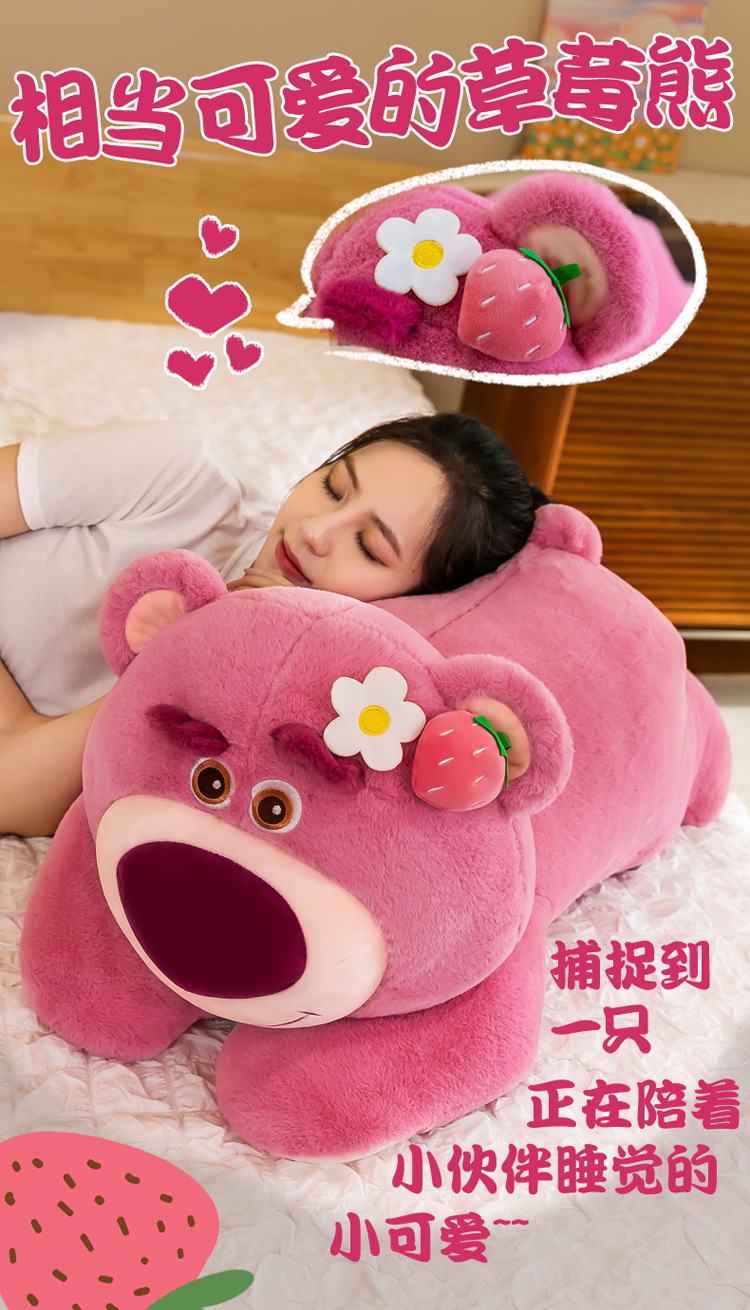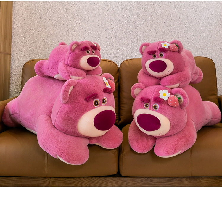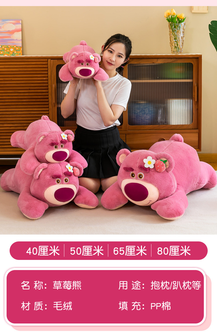 趴款草莓熊毛绒玩具沙发靠垫床头靠枕儿童玩偶生日礼物厂家批发