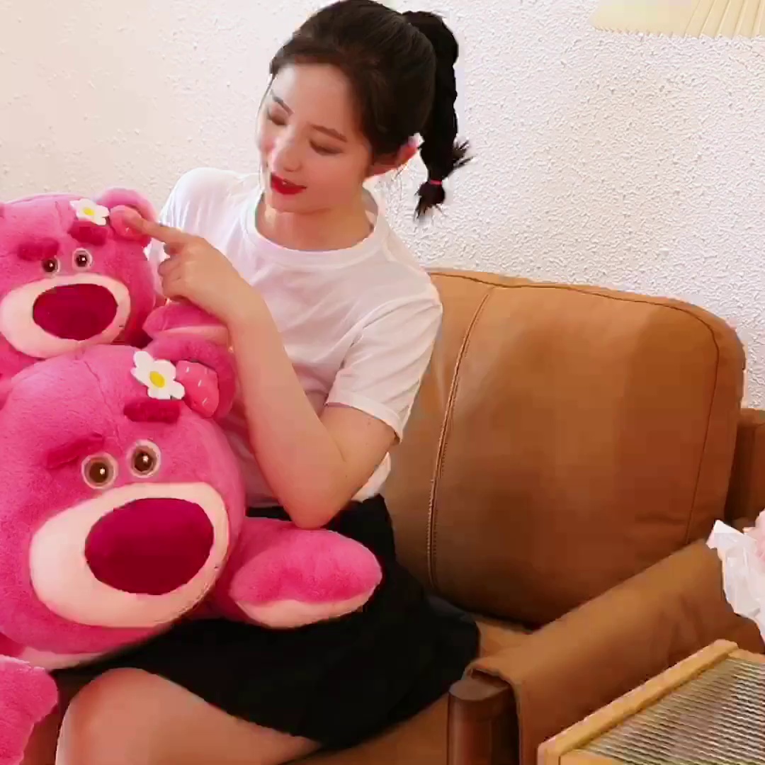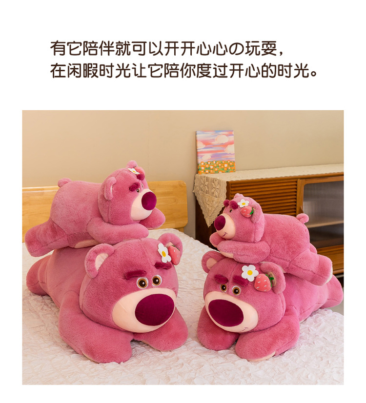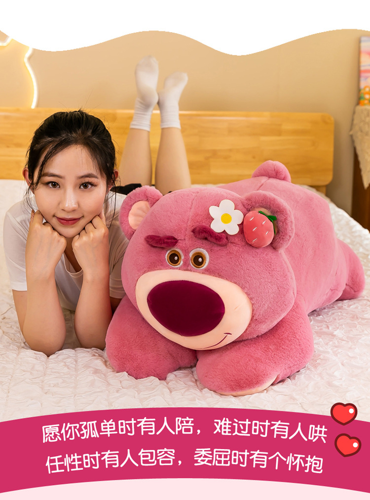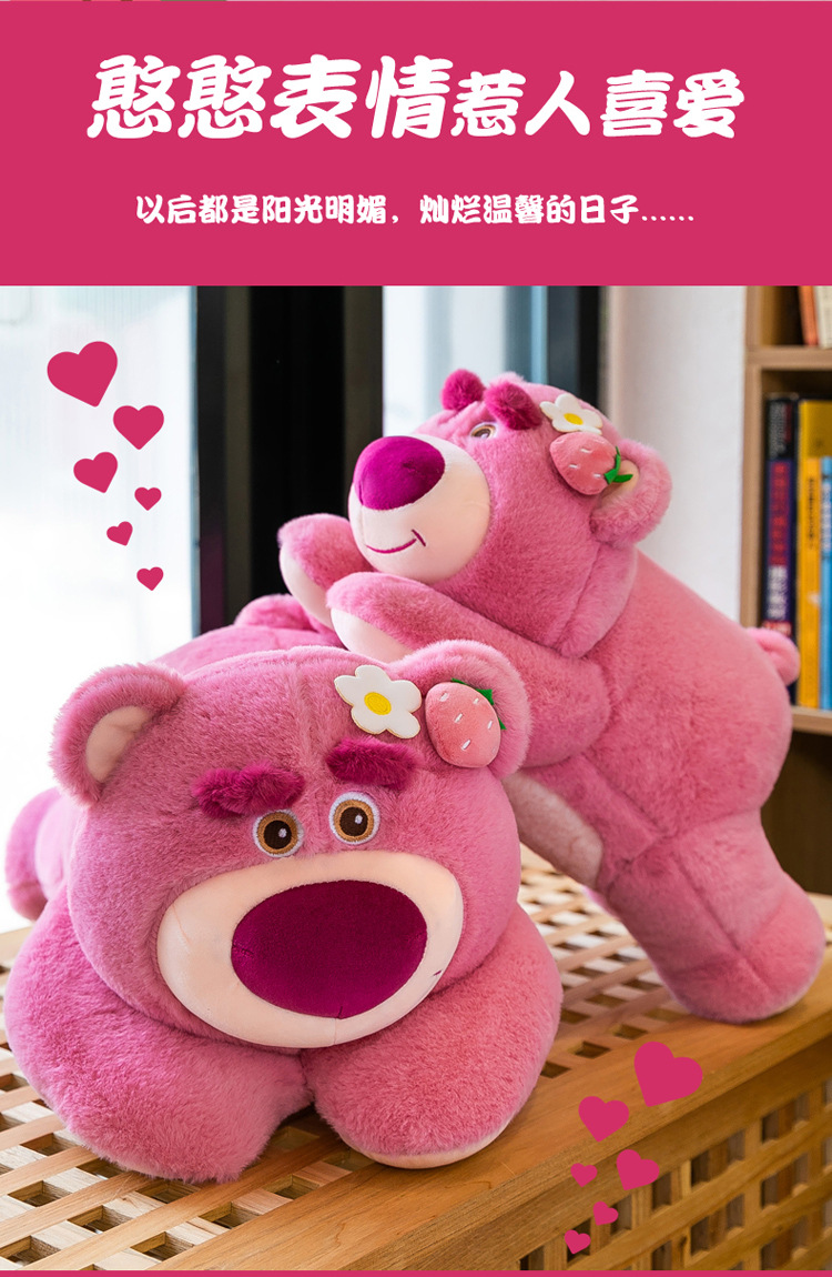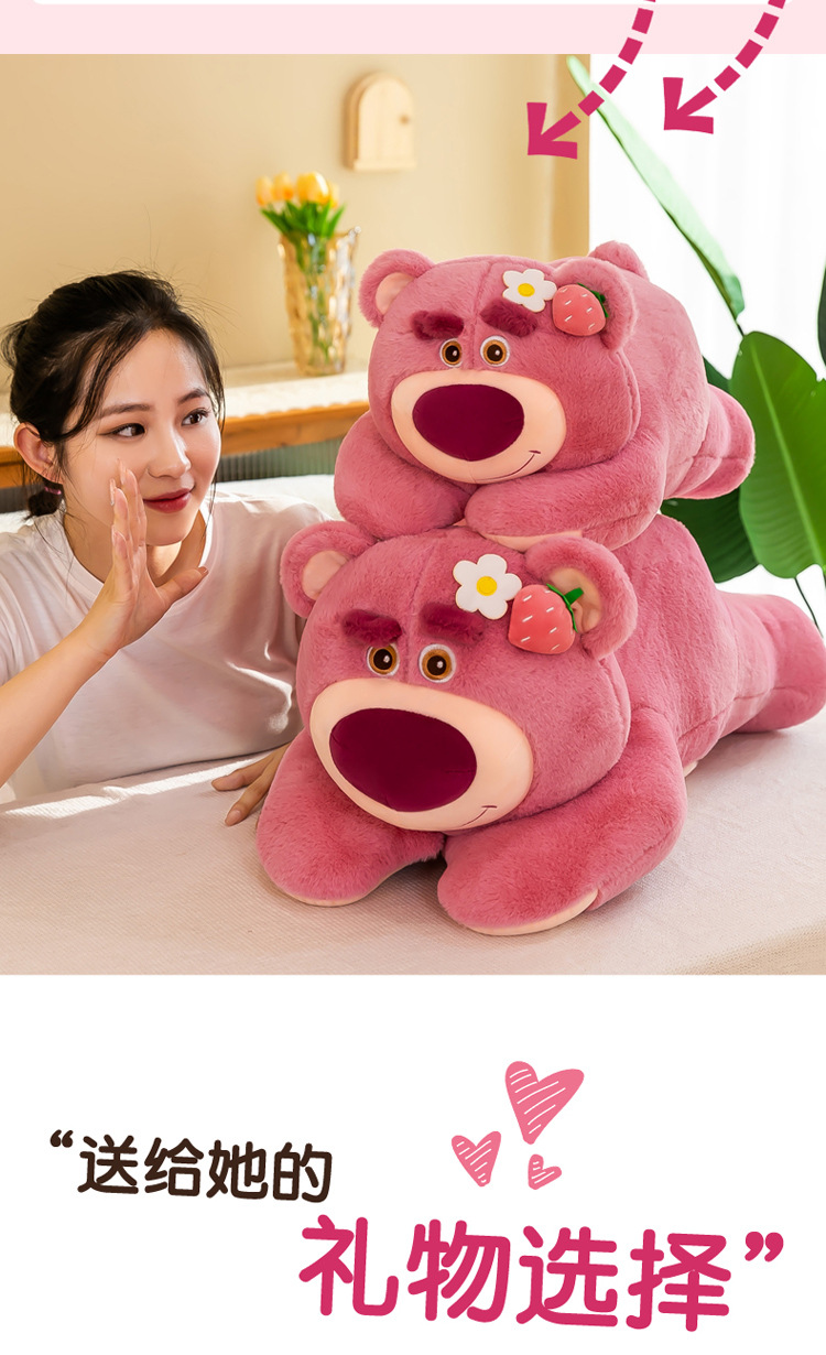趴款草莓熊毛绒玩具沙发靠垫床头靠枕儿童玩偶生日礼物厂家批发