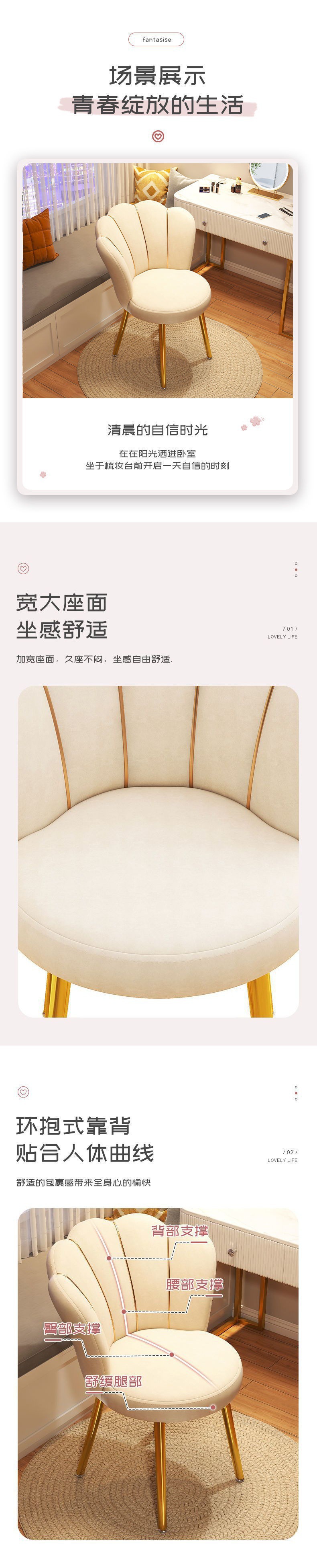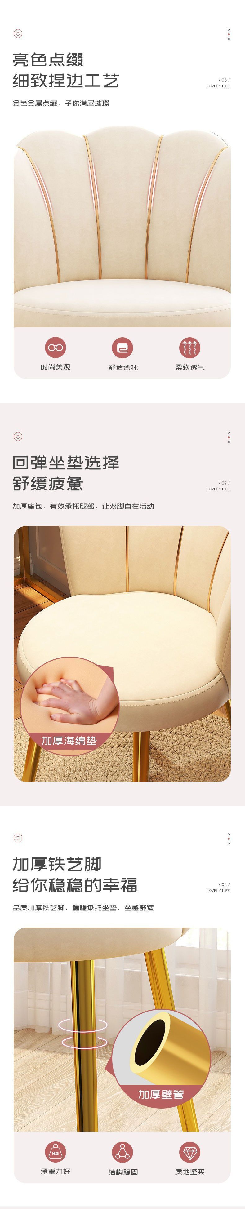 化妆椅轻奢主卧梳妆台凳子网红靠背高级感美甲椅女生卧室花瓣椅子