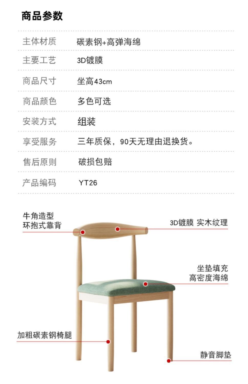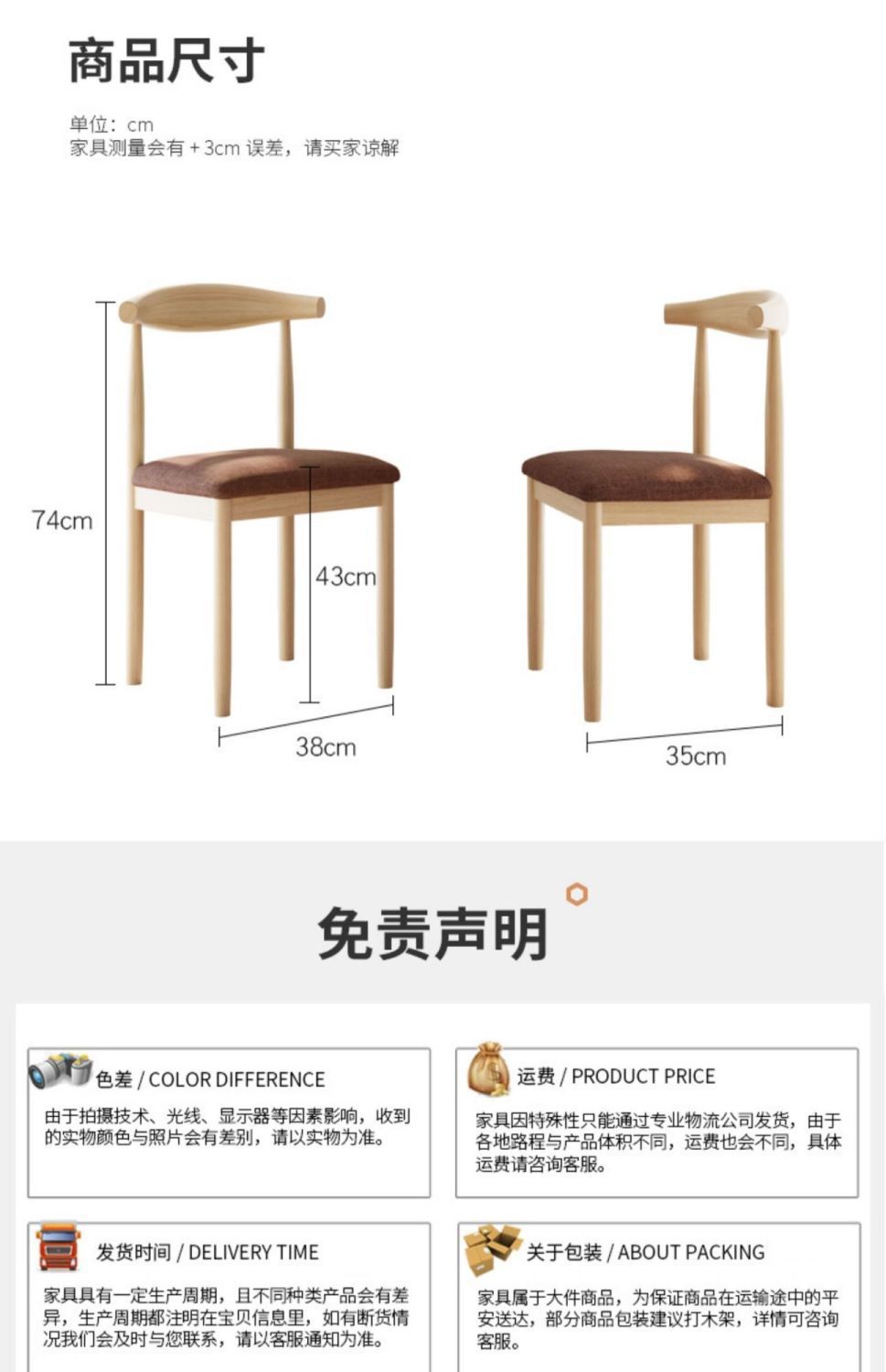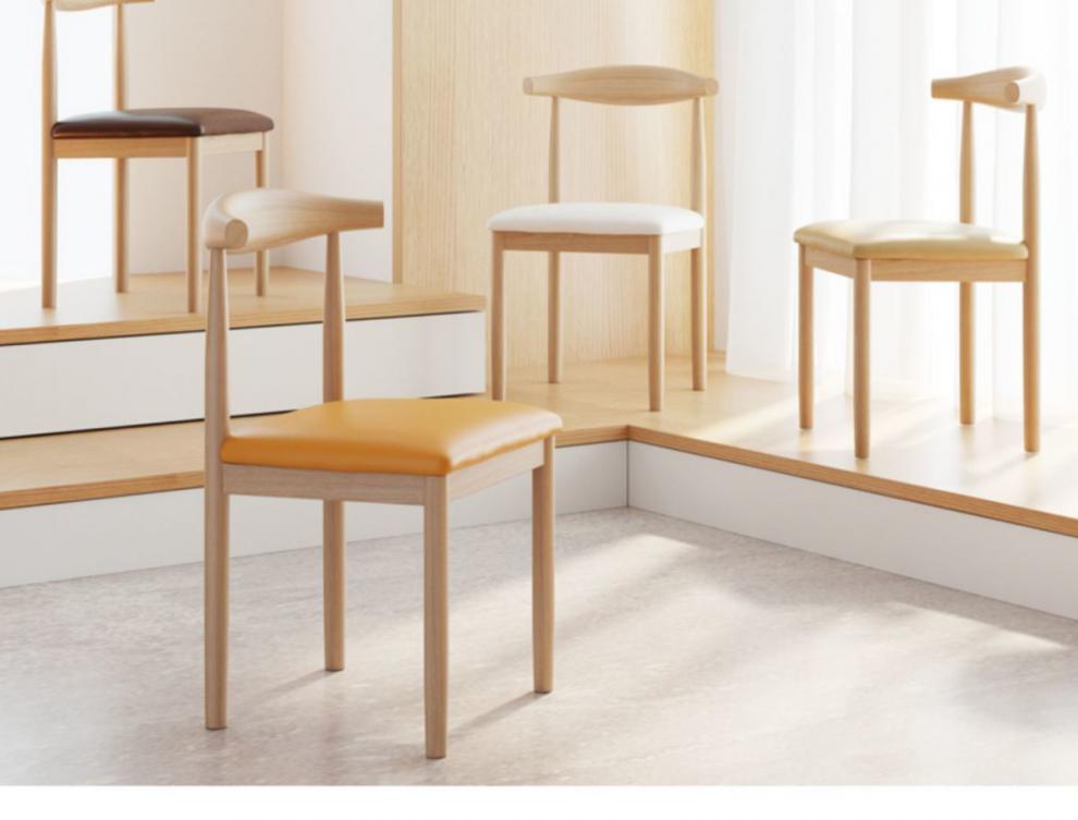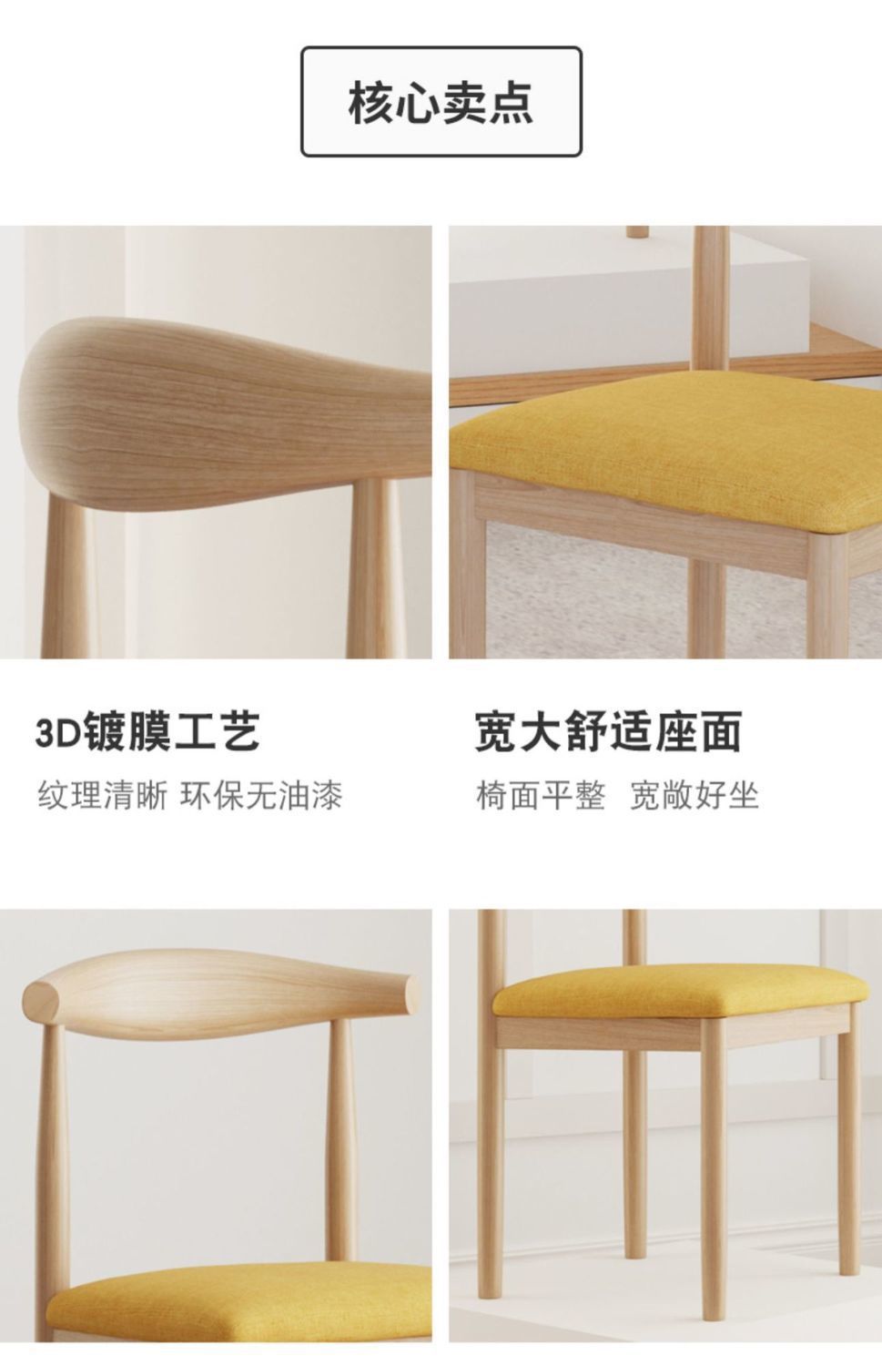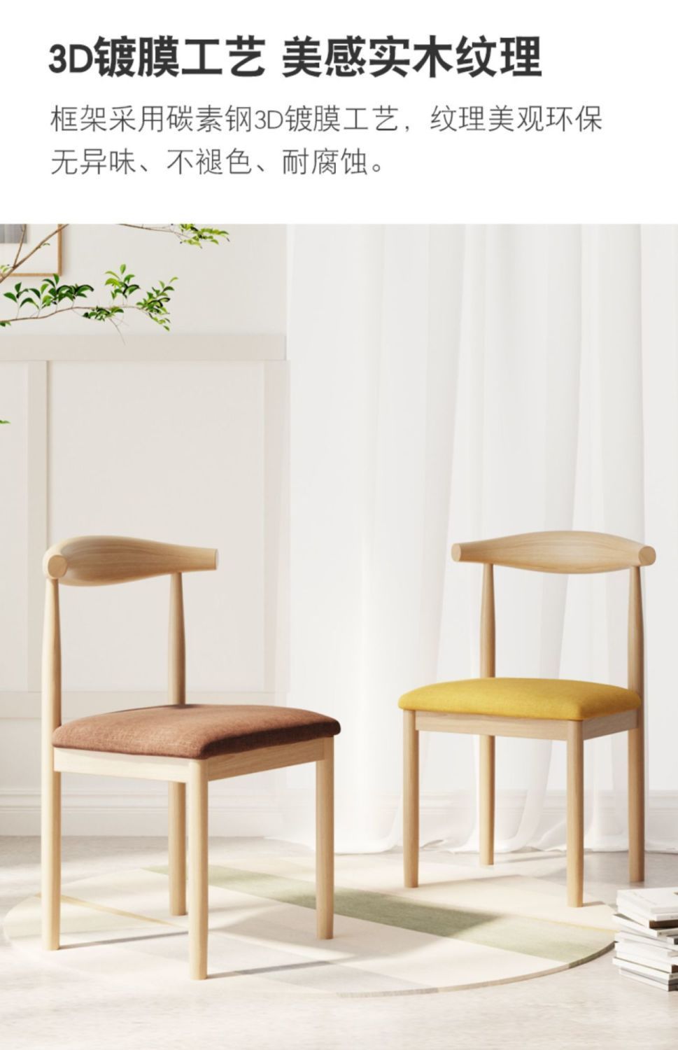 餐椅靠背北欧简约书房凳子书桌学生学习卧室家用仿实木铁艺牛角椅