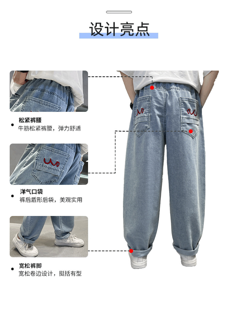 男童牛仔防蚊裤2024新款中大童夏季休闲裤子儿童夏装长裤冰丝长裤
