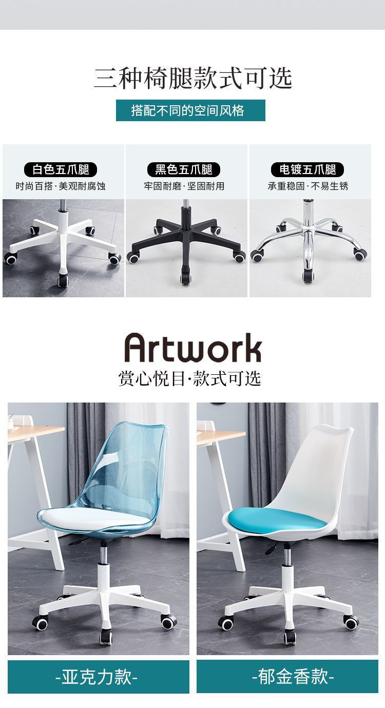 北欧网红梳妆电脑椅亚克力透明舒适可升降转椅办公写字书房家用椅