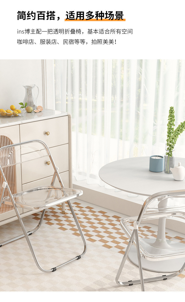 透明椅子亚克力时尚网红服装店拍照椅简约家用ins餐椅凳子折叠椅