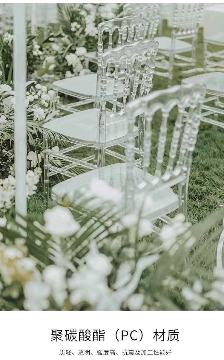 酒店宴会婚庆水晶椅婚宴礼堂户外塑料亚克力透明水晶拿破仑竹节椅