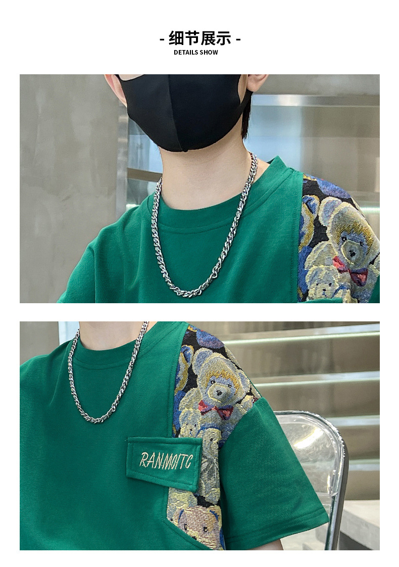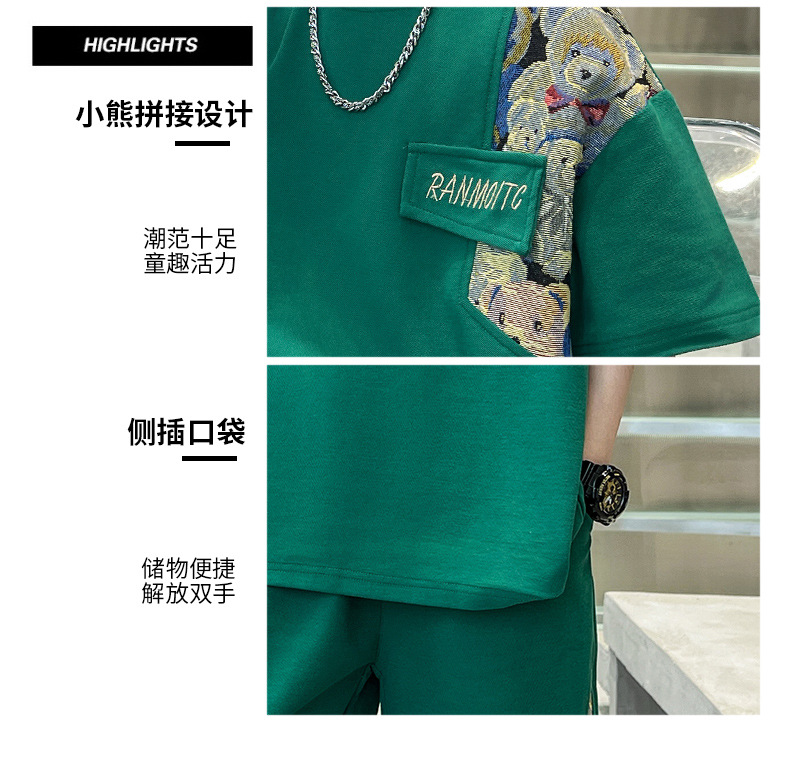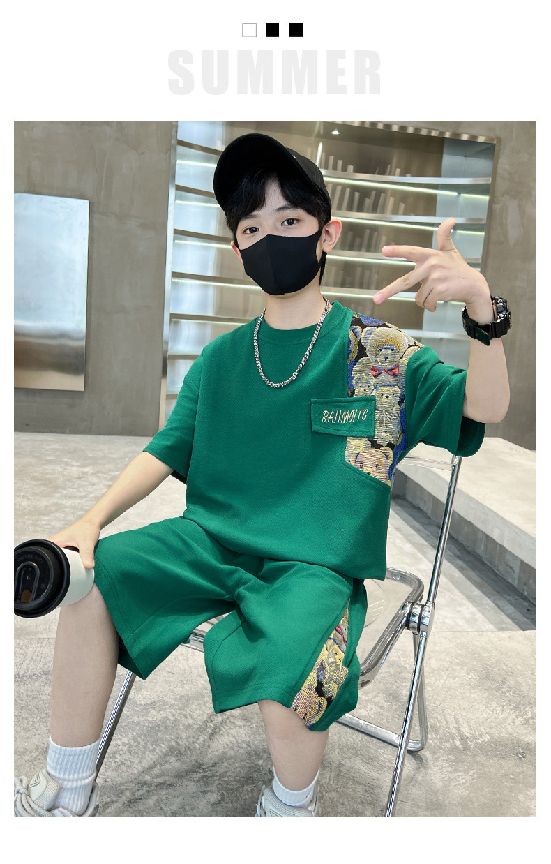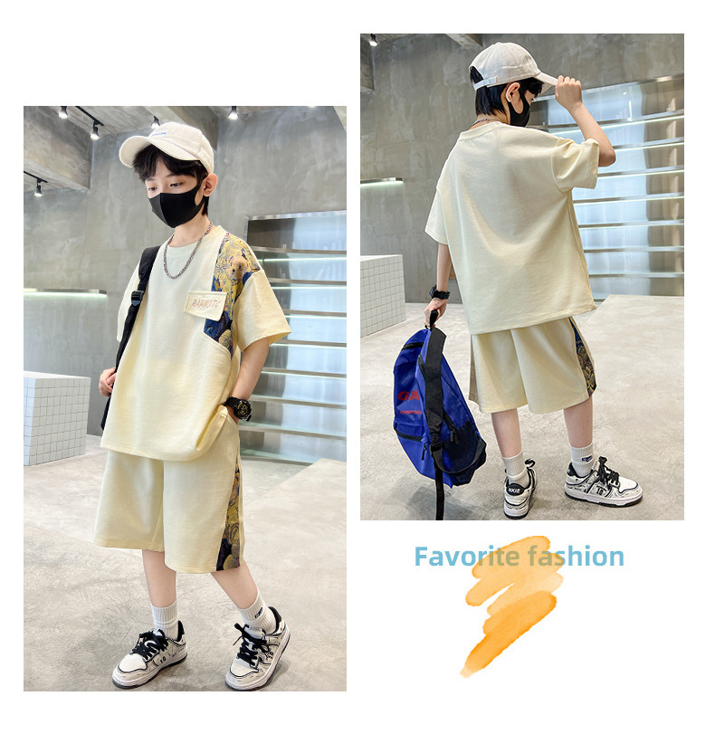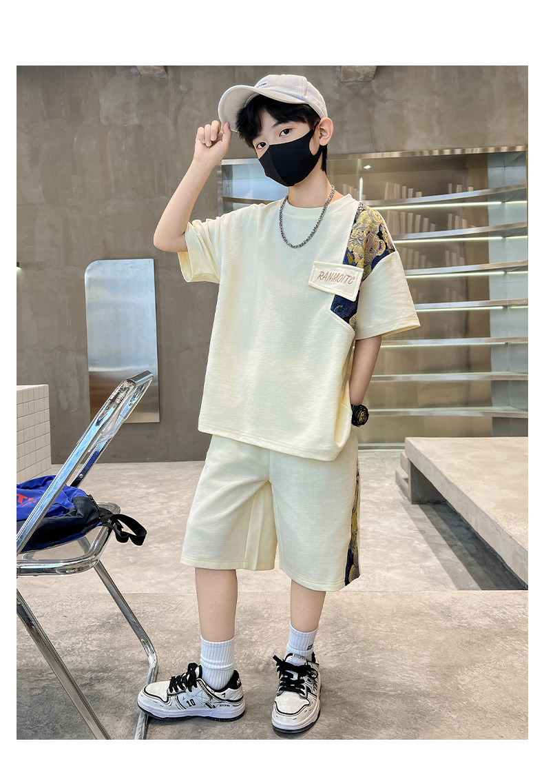 男童拼接套装夏季新款2024中大童潮酷帅气夏天薄款T恤短裤两件套t