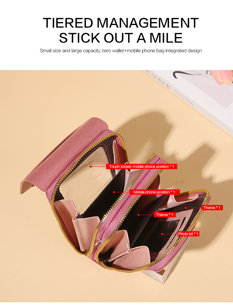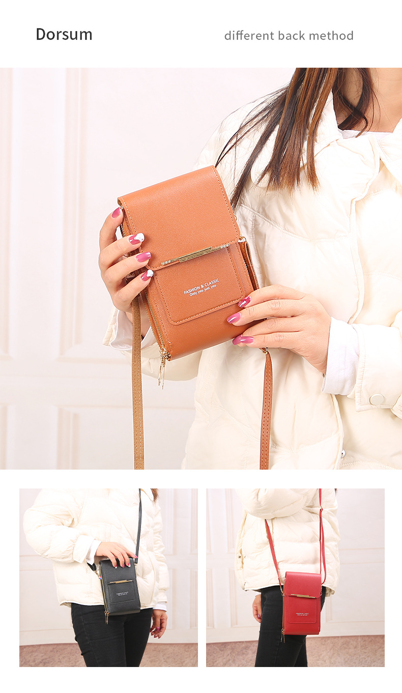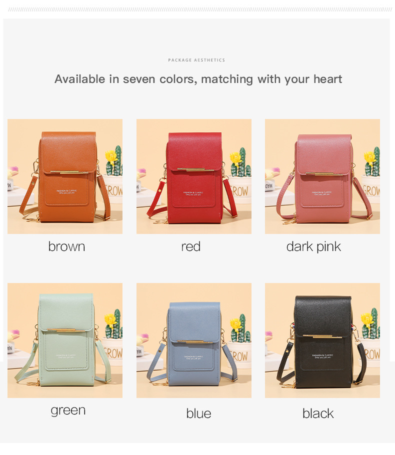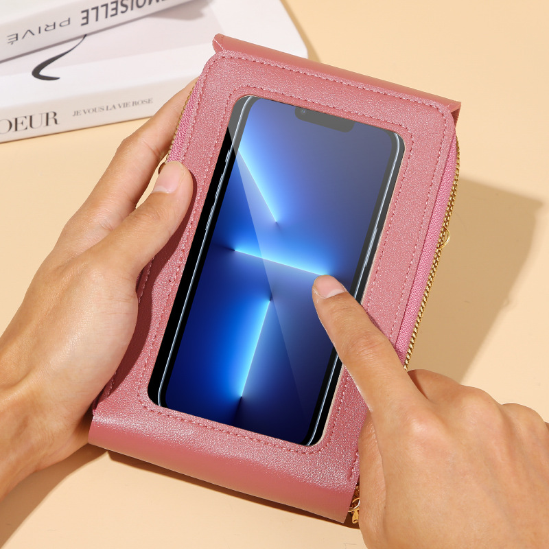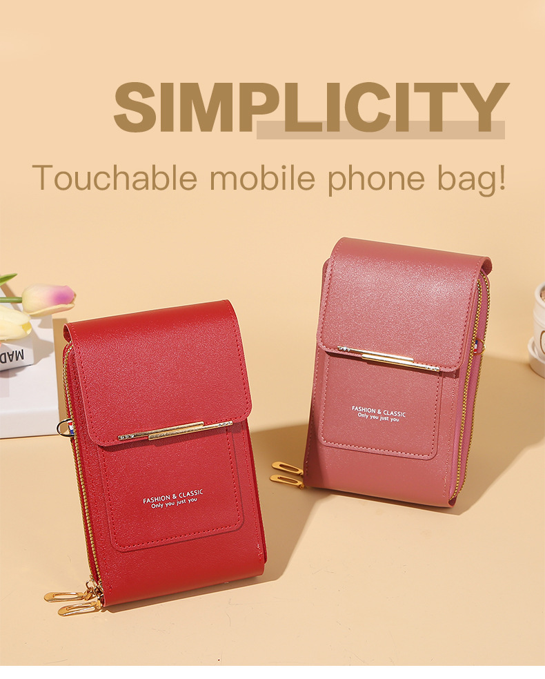 2024新款手机包斜挎触摸屏手机包包纯色钱包单肩包便携卡包批发