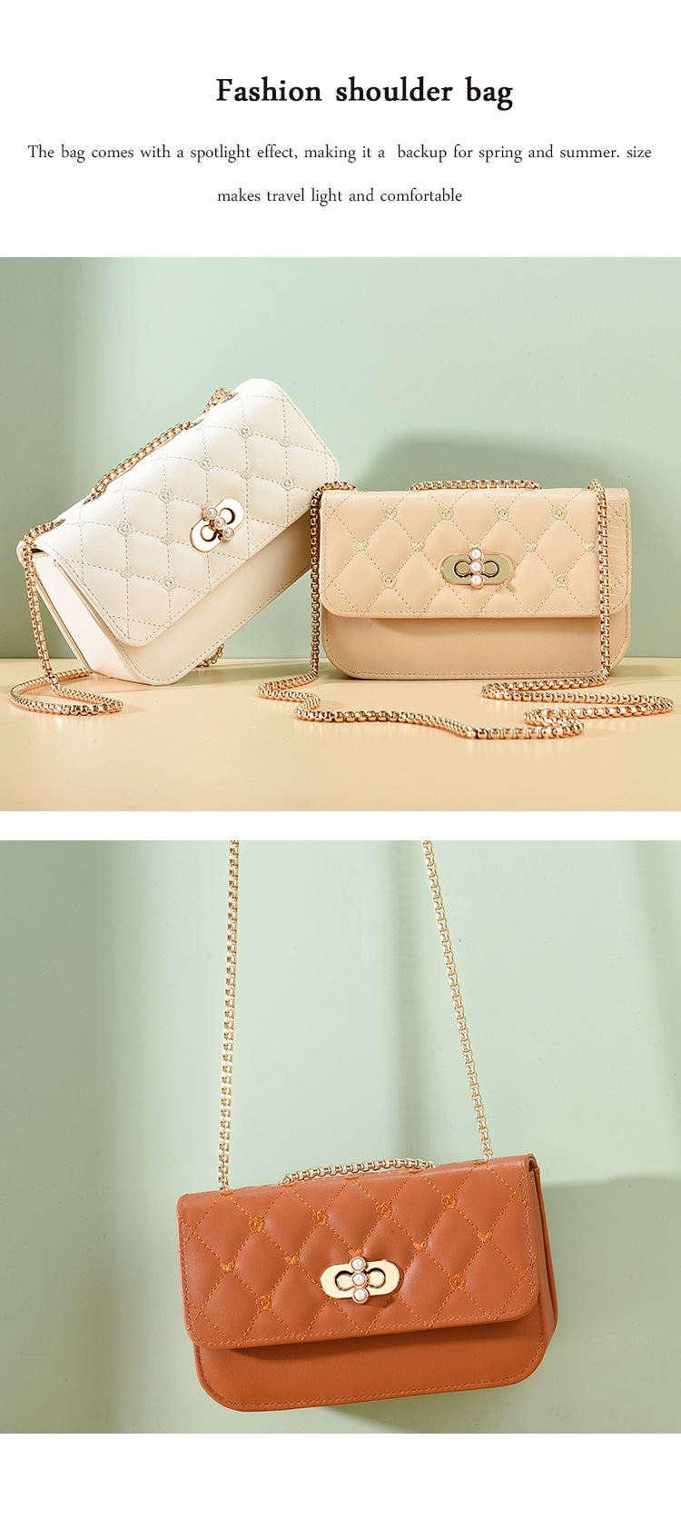 斜挎包包百搭小香风2024新款女包珍珠链条包小方包时尚ins单肩包