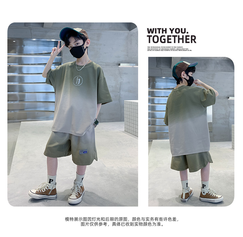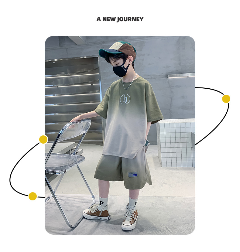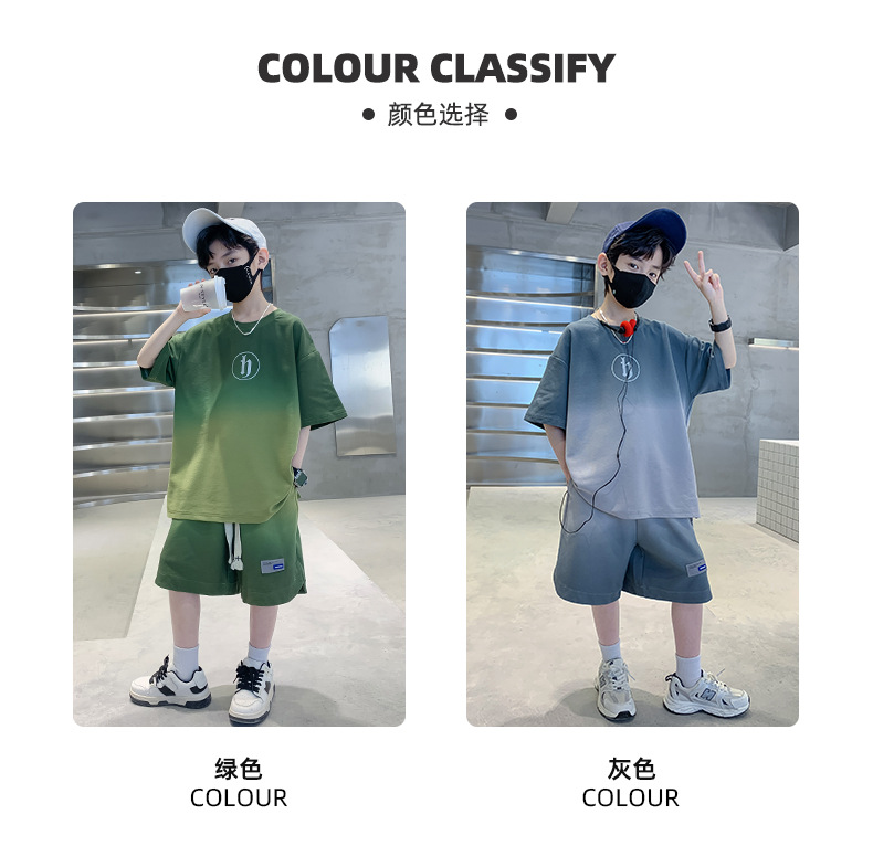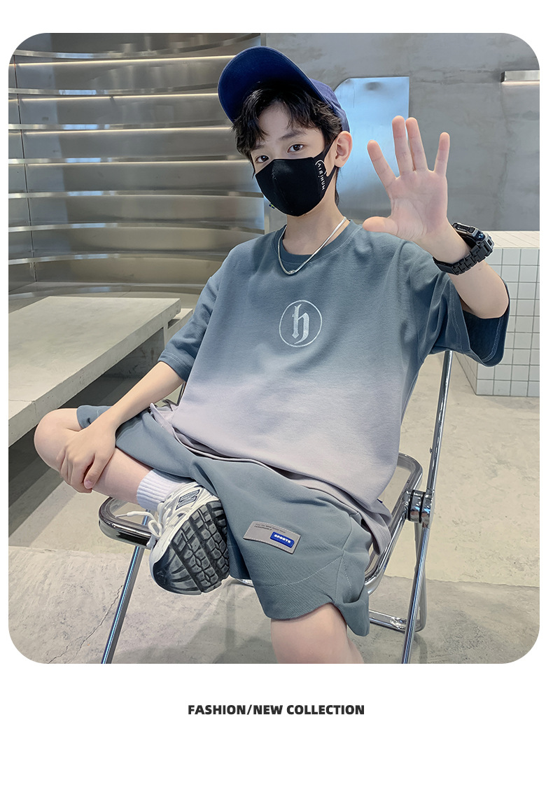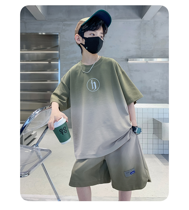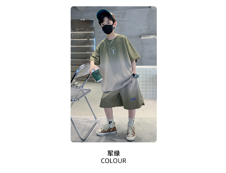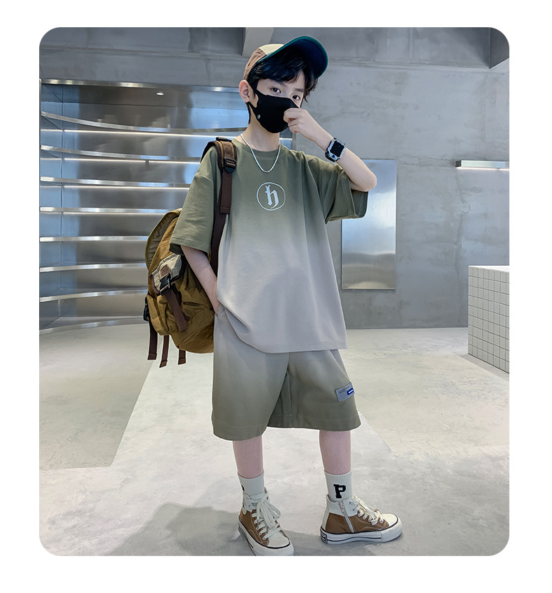 男童时髦渐变短袖套装夏季新款2024中大童男孩个性休闲两件套夏装