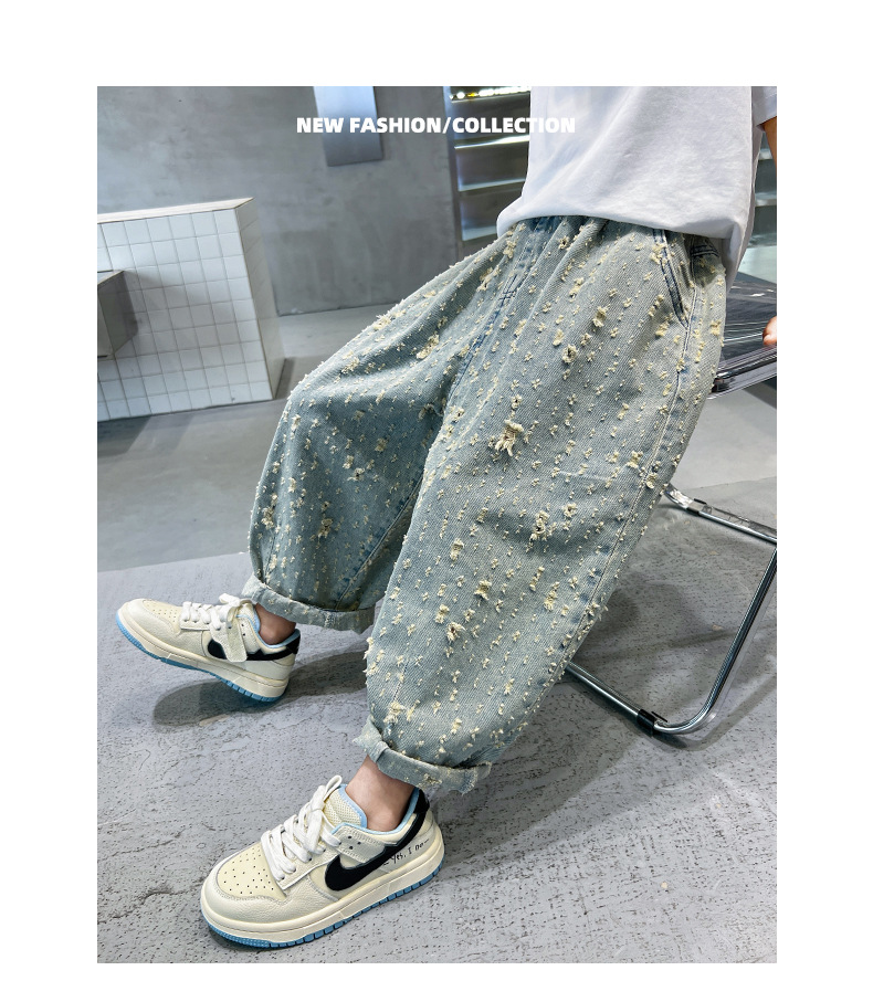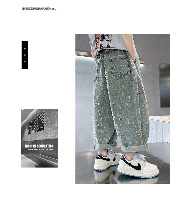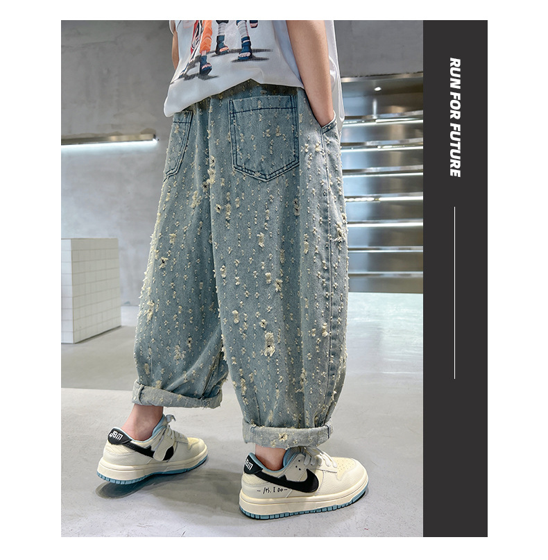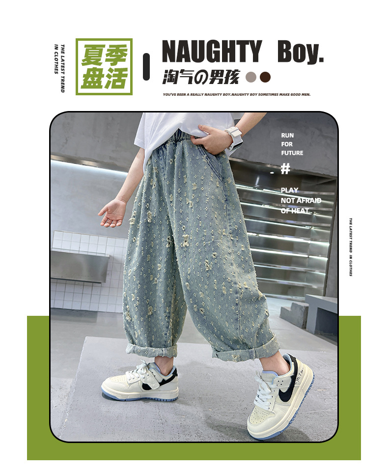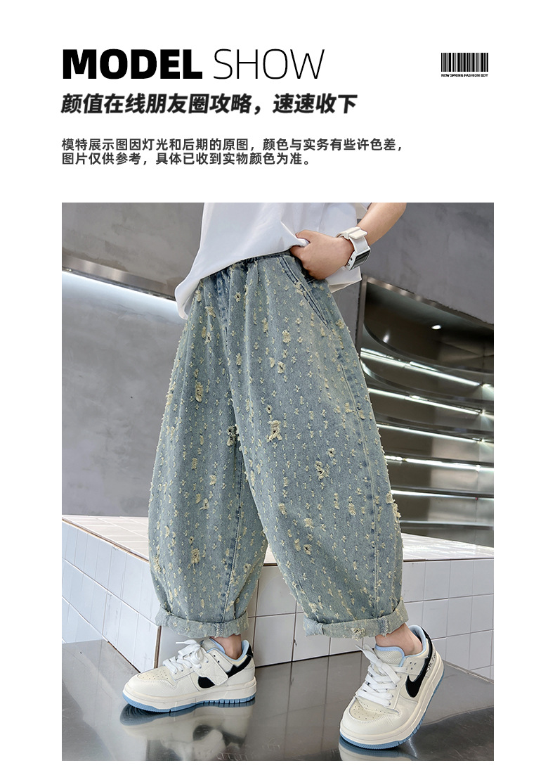 男童夏季牛仔裤2024新款儿童男孩潮酷破洞裤子中大童夏装宽松长裤