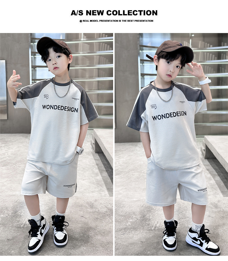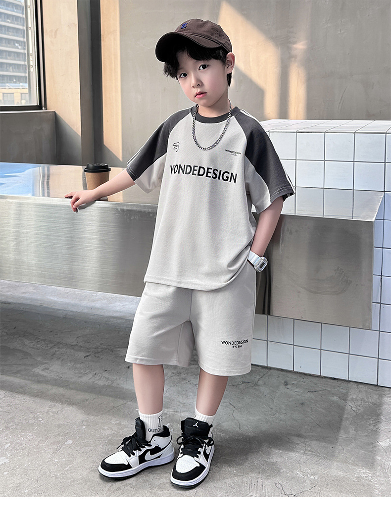 男童夏季薄款运动套装2024新款中大童男孩潮酷拼色休闲短袖短裤夏