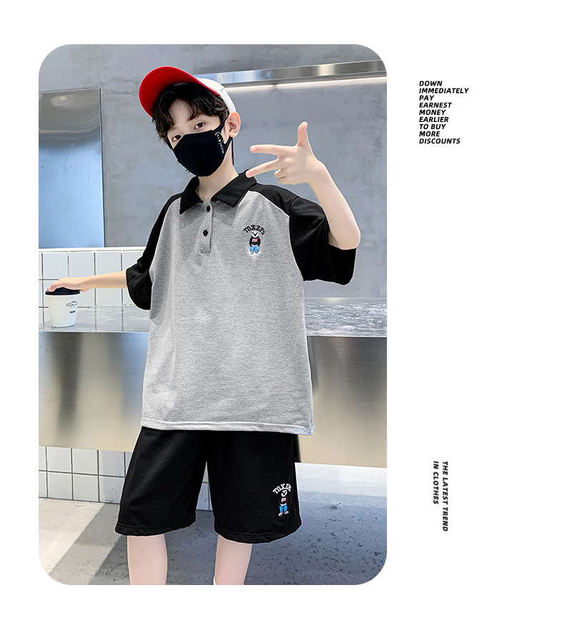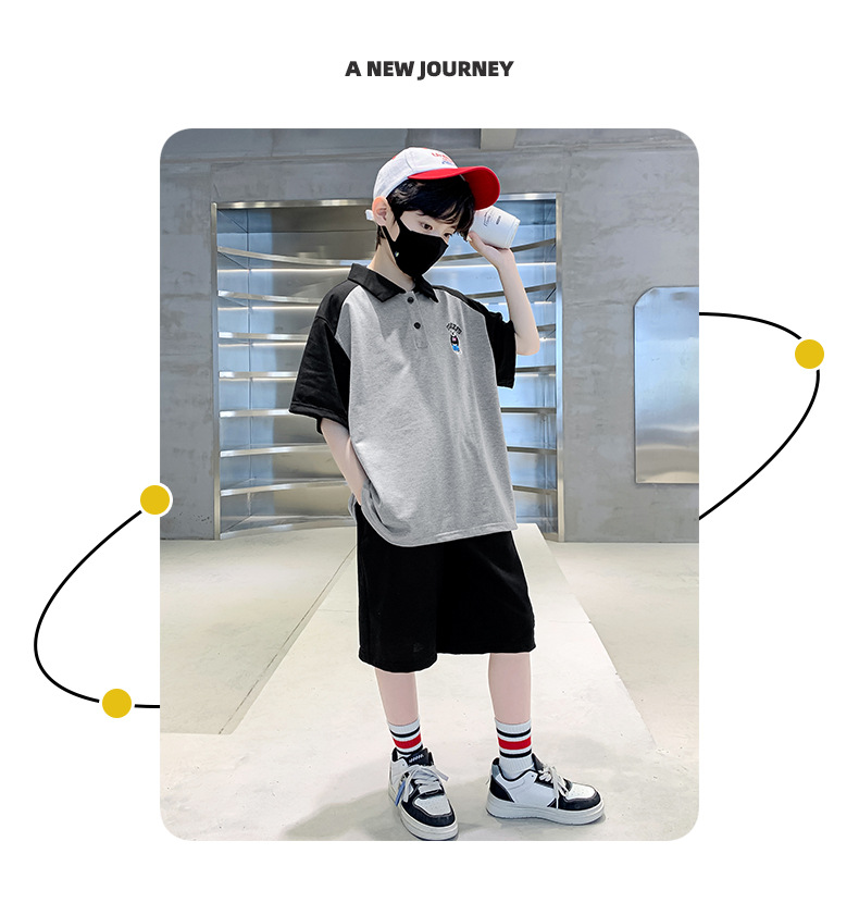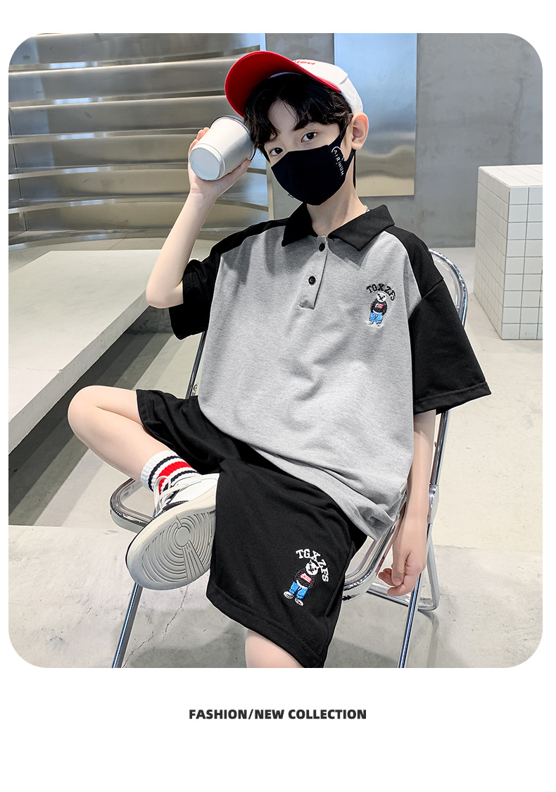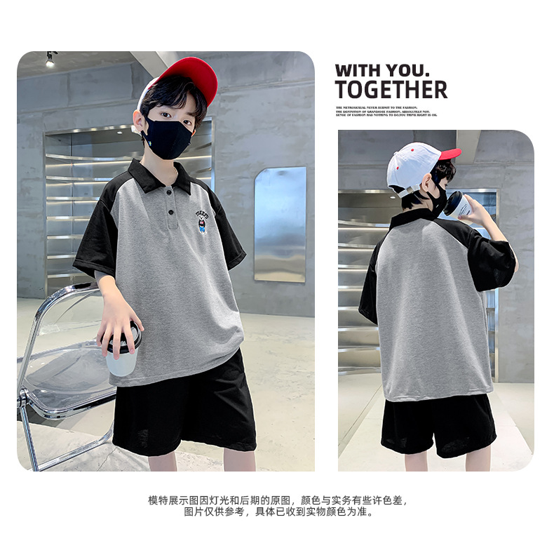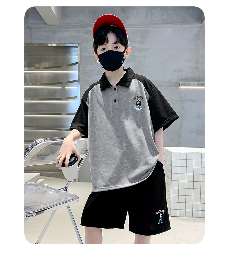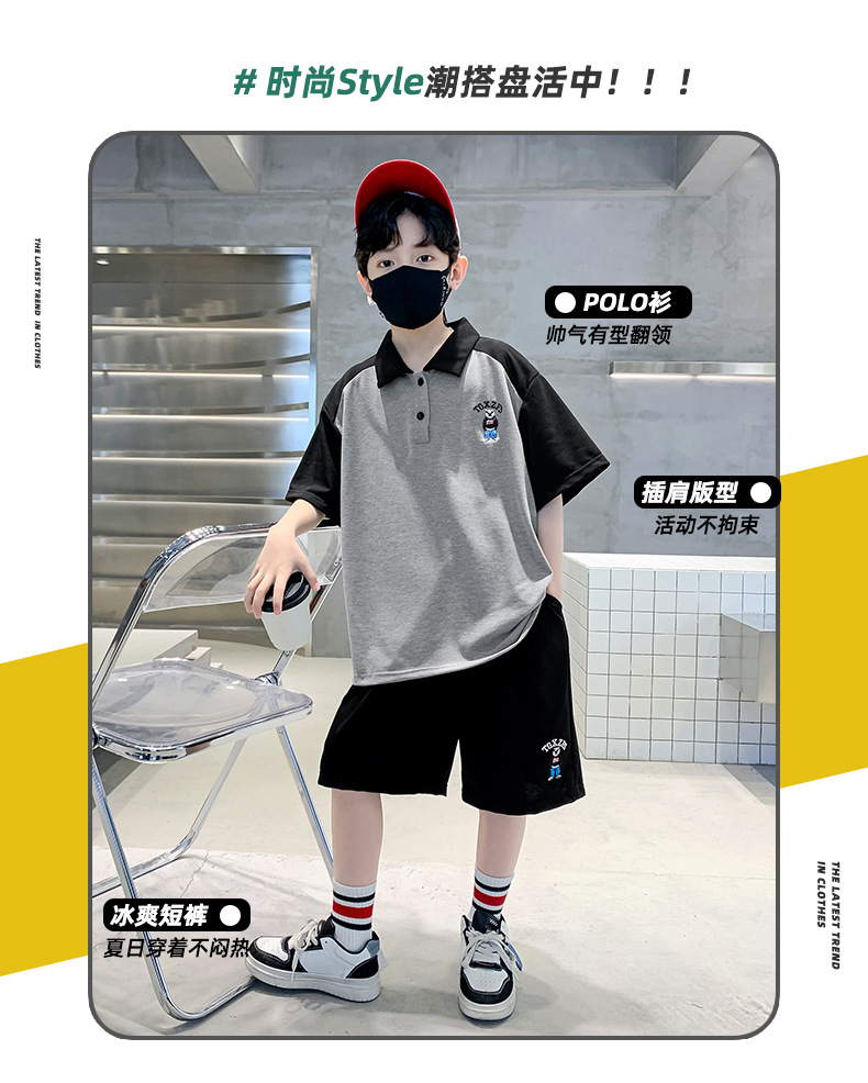 儿童POLO衫套装夏季新款2024男孩痞帅炸街夏装中大童刺绣两件套潮
