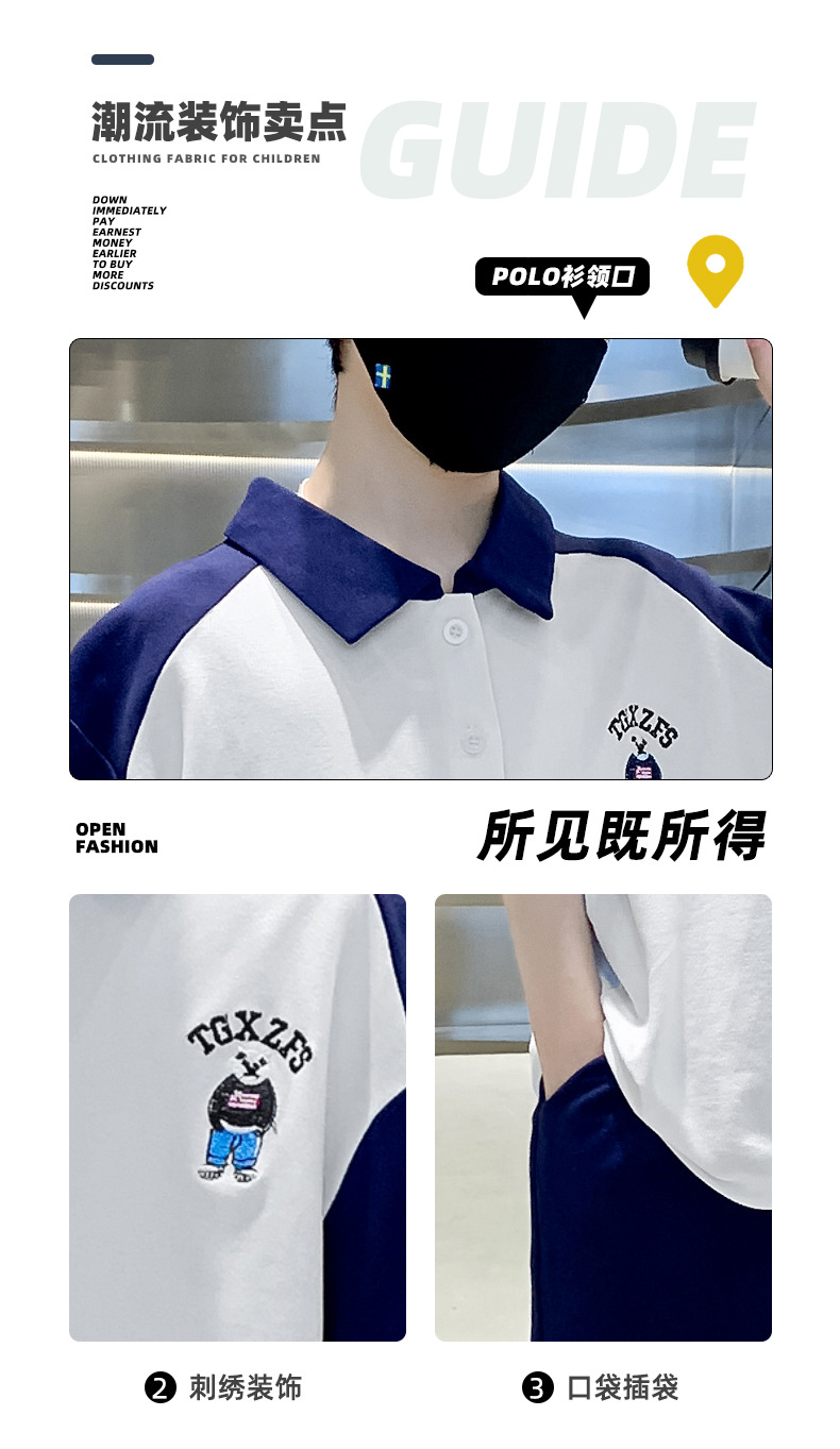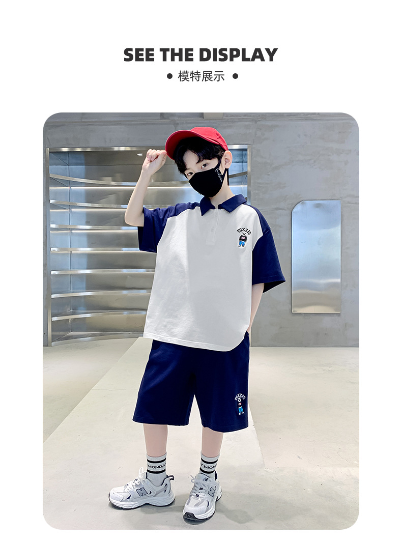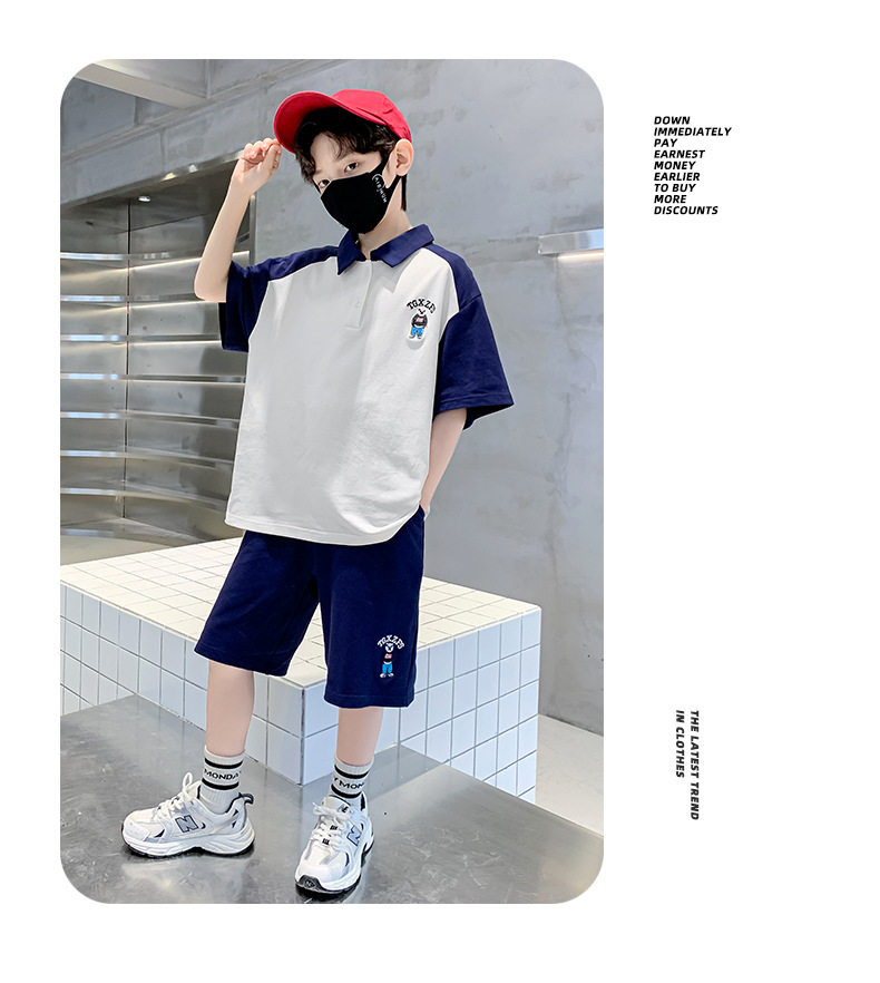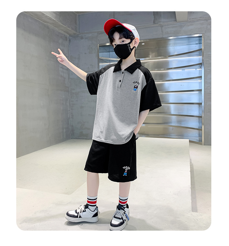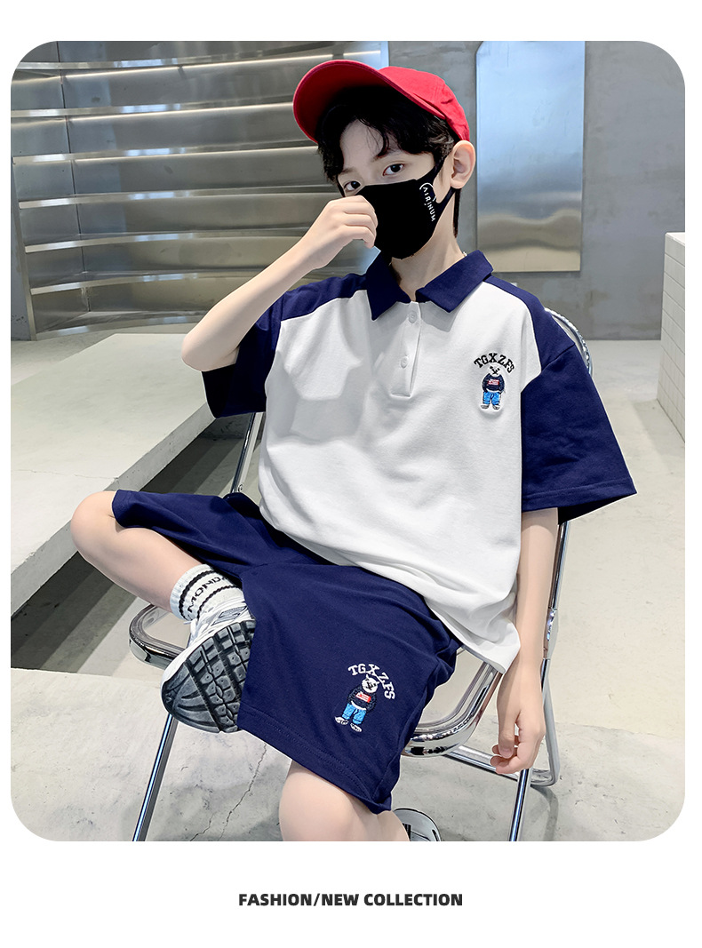 儿童POLO衫套装夏季新款2024男孩痞帅炸街夏装中大童刺绣两件套潮