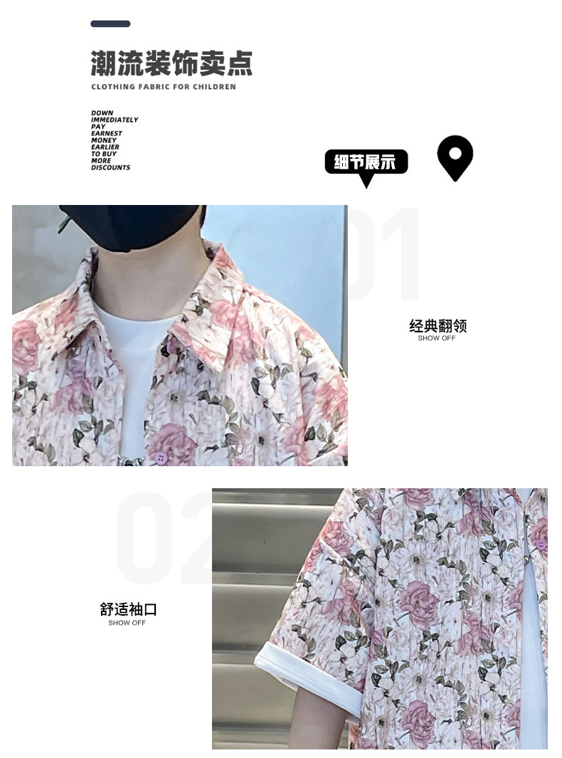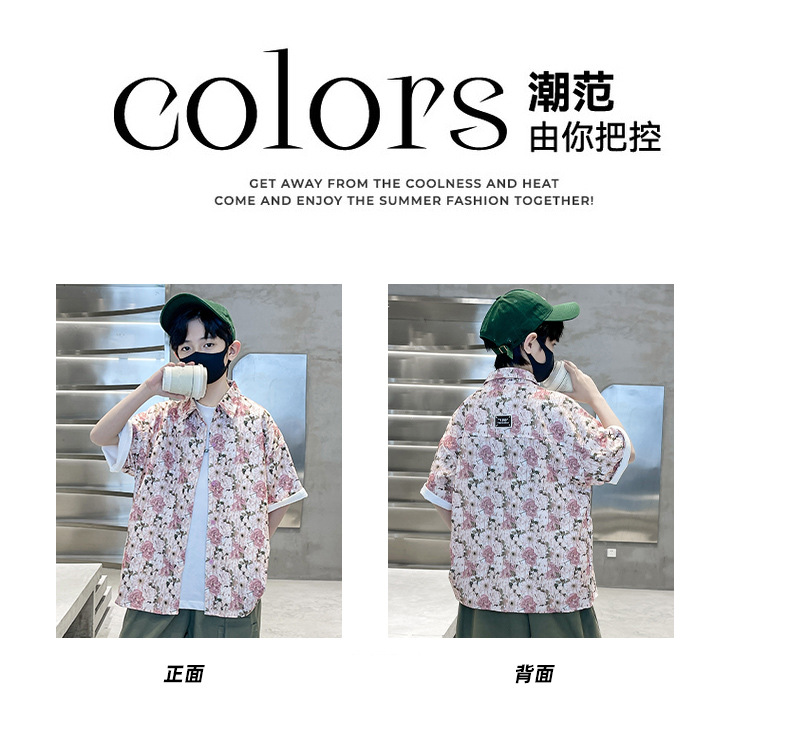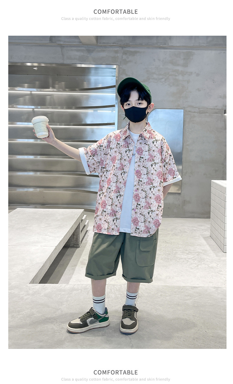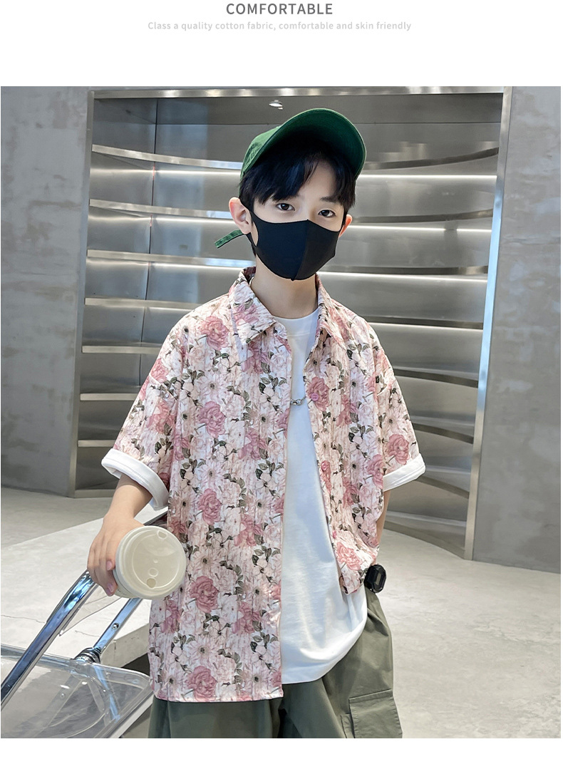 儿童短袖衬衫男童夏季薄款2024新款中大童男孩潮酷帅气花衬衫夏款