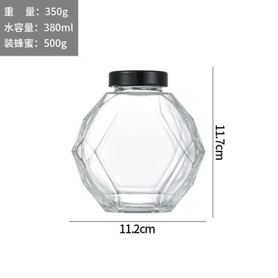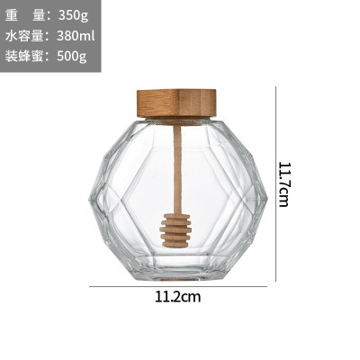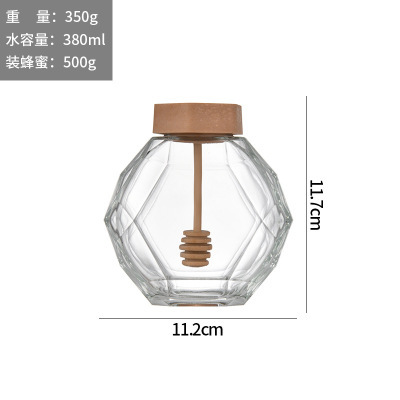 晶白料透明钻石蜂蜜瓶搅拌棒六棱木盖铁盖氧化铝盖玻璃蜂蜜罐
