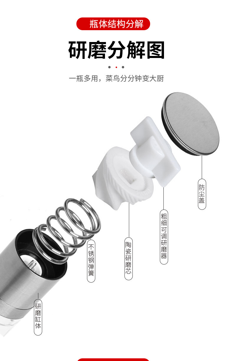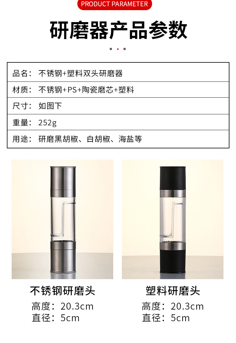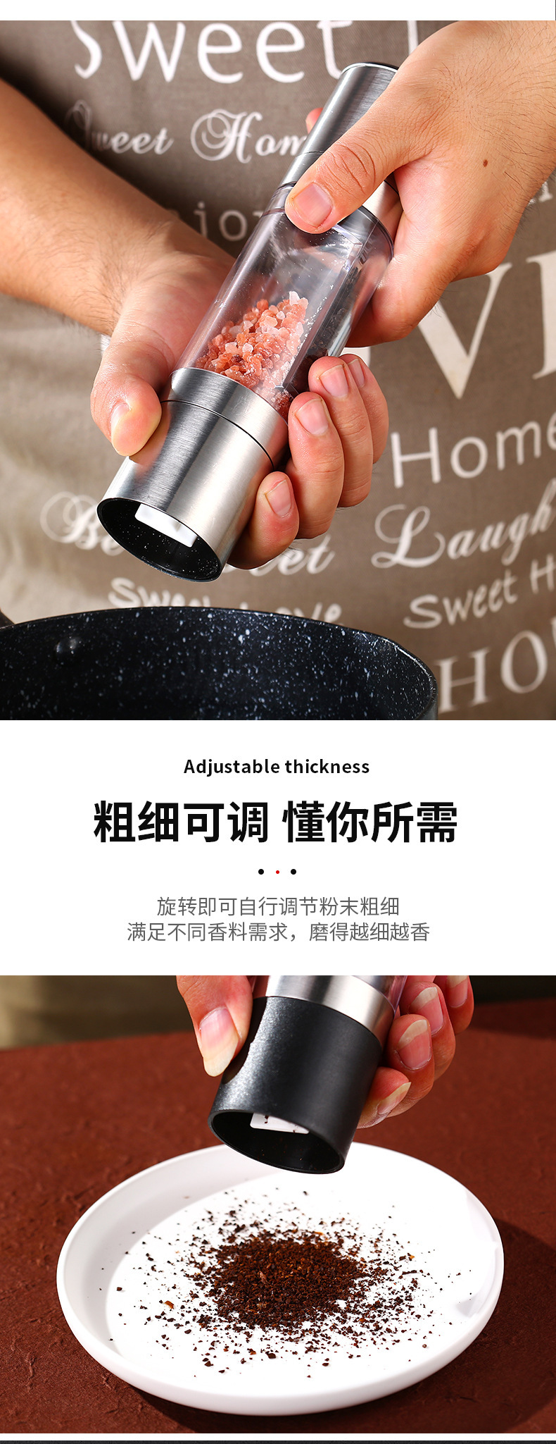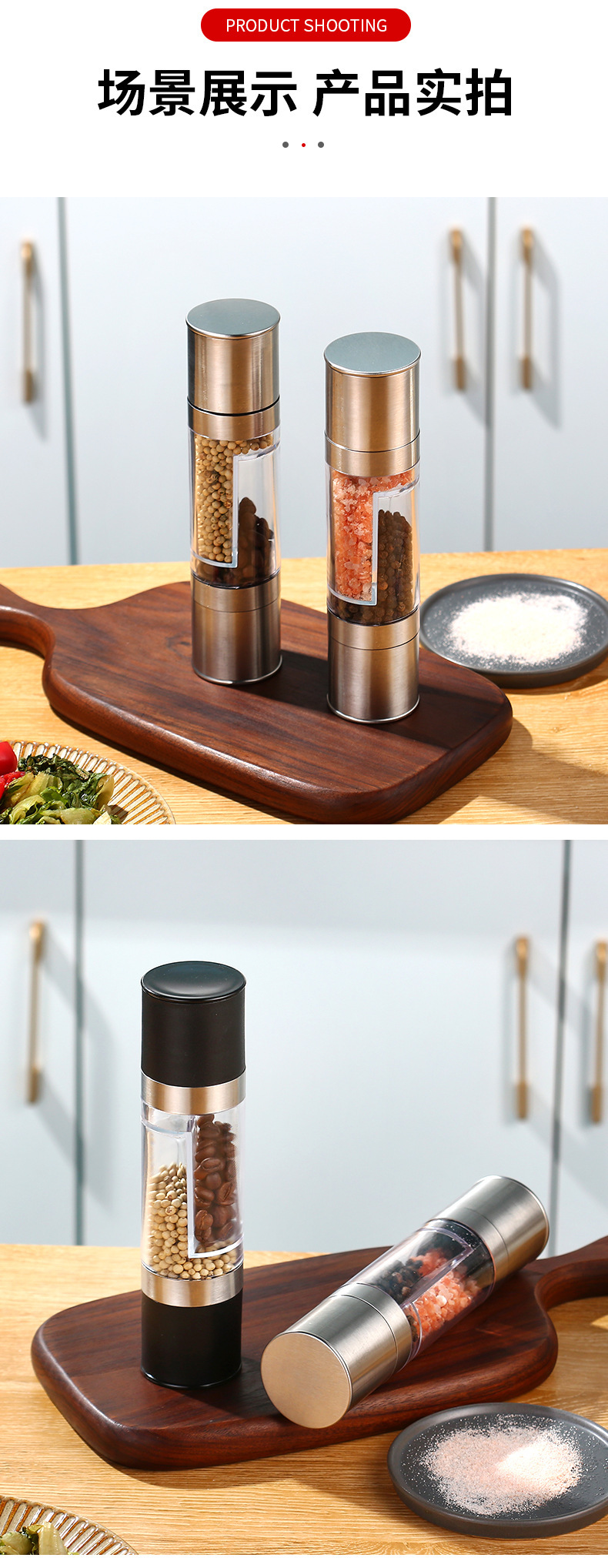 手动双头研磨器海盐烧烤瓶家用厨房胡椒花椒不锈钢研磨调料撒料瓶