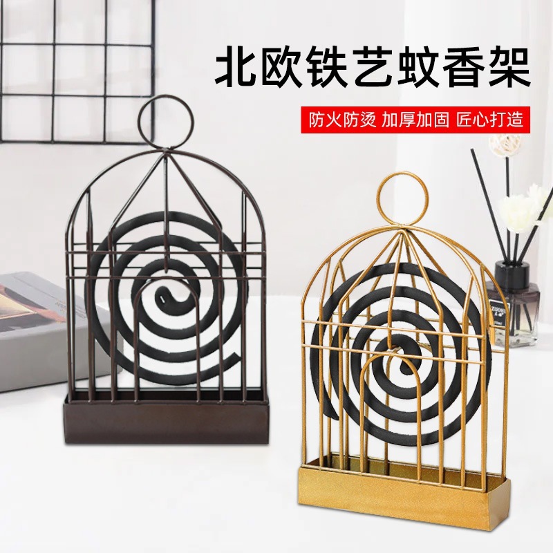 家用创意蚊香架北欧铁艺鸟笼蚊香盒客厅卧室蚊香盘助燃防烫香炉盘
