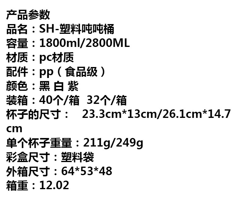 | 2800ml(2800ml) | USD $1.95 | 999999 piece available |
