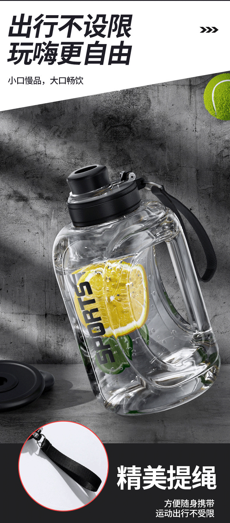 新款PC大容量吨吨桶水杯子耐高温高颜值夏季健身运动便携塑料水壶