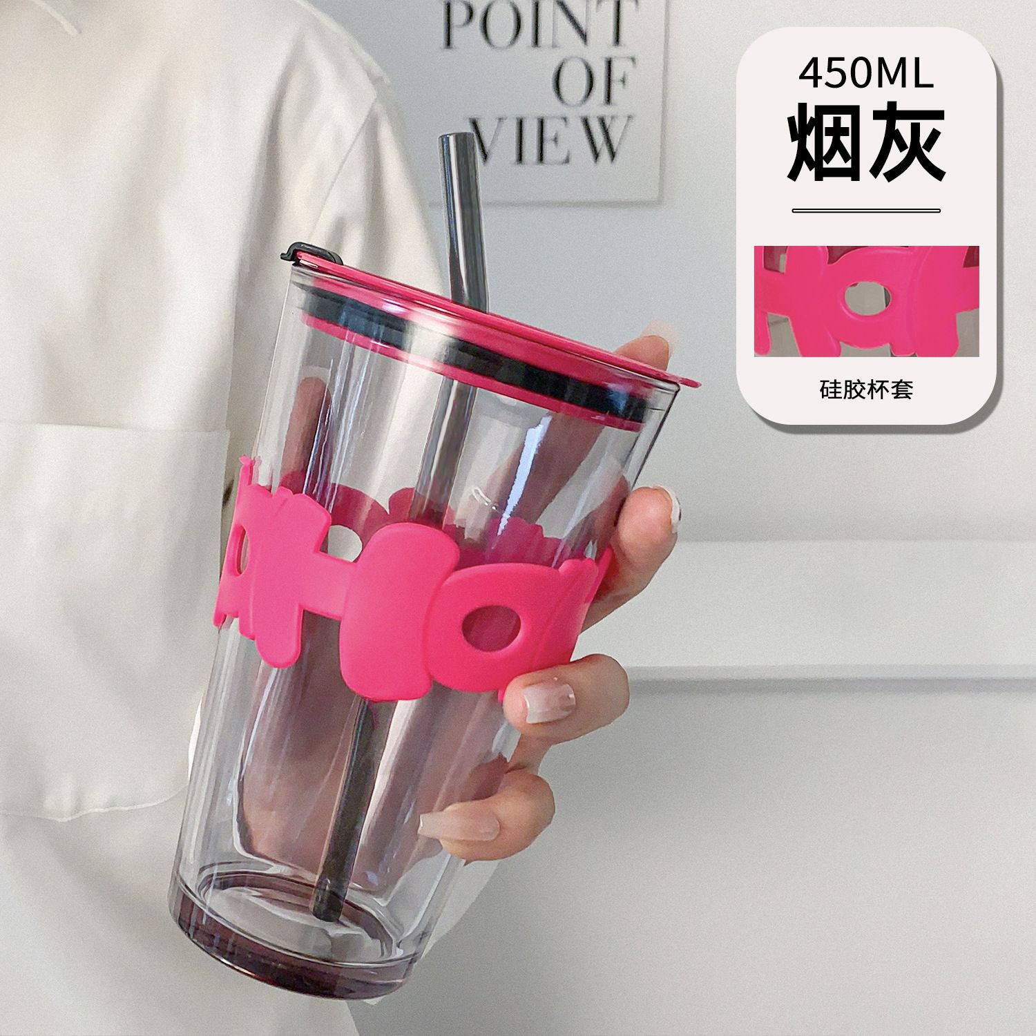 高颜值ins风玻璃杯双饮杯伴手礼杯子竹节杯礼品广告水杯吸管杯