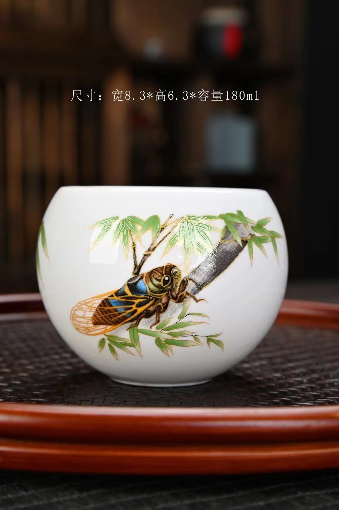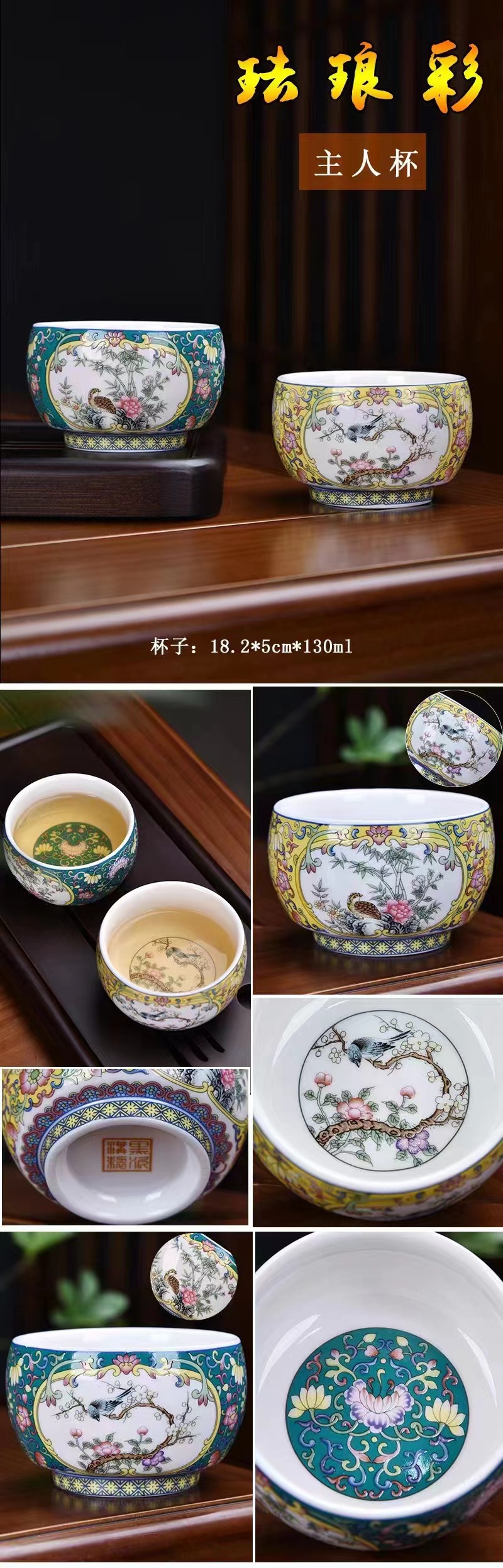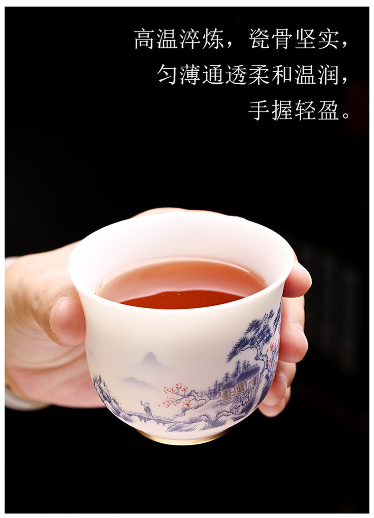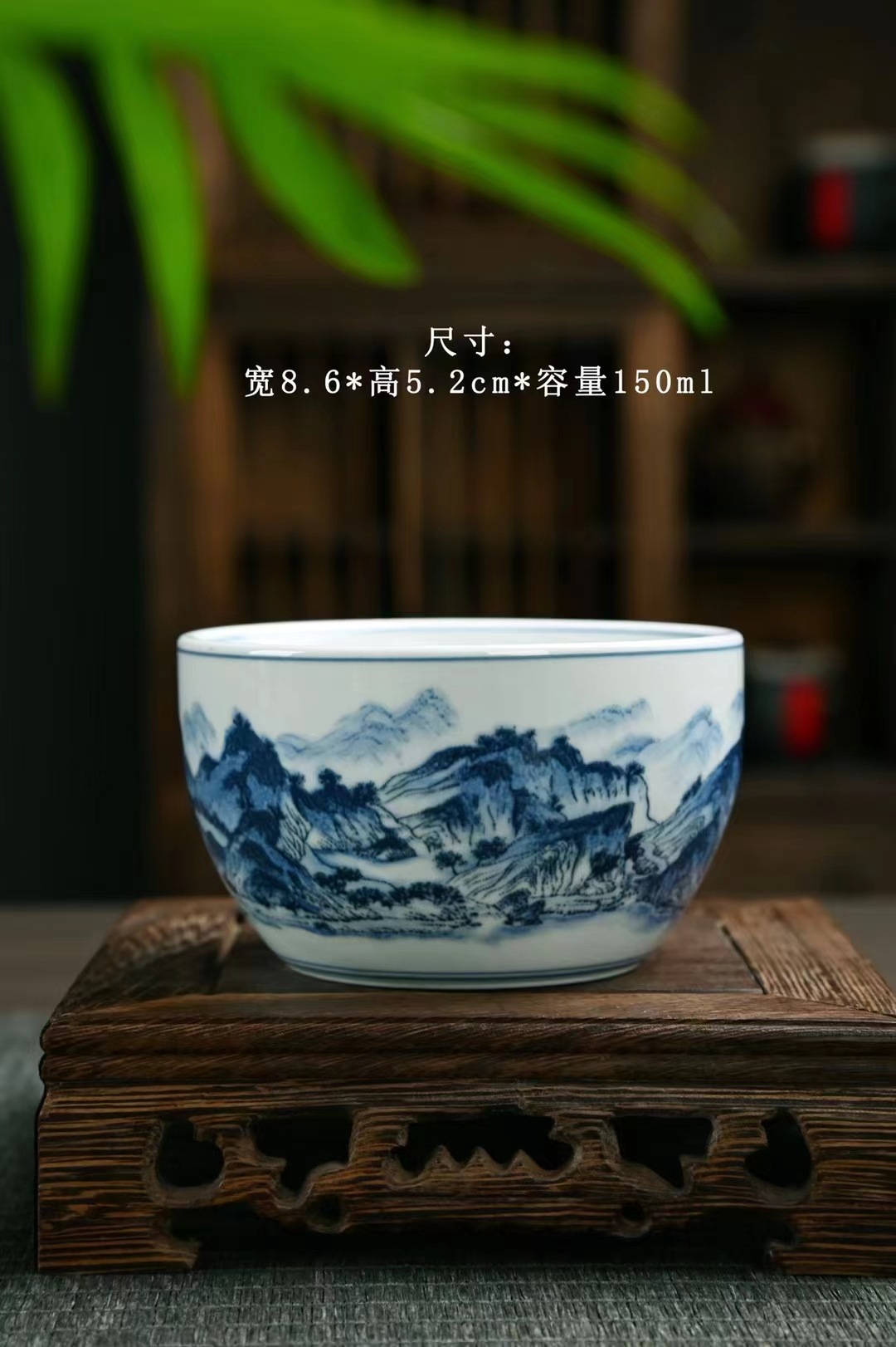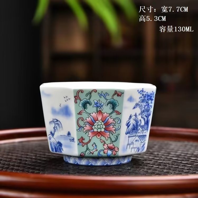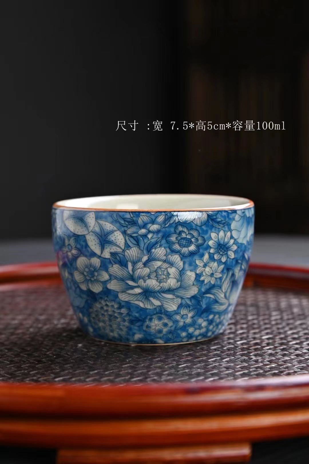 跨境电商批发手绘单杯建盏珐琅彩主人杯黑冰窑变青花高白瓷品茶杯