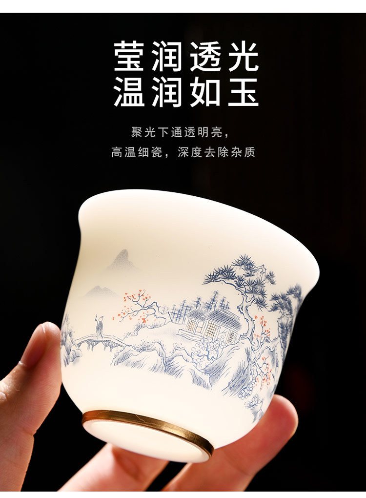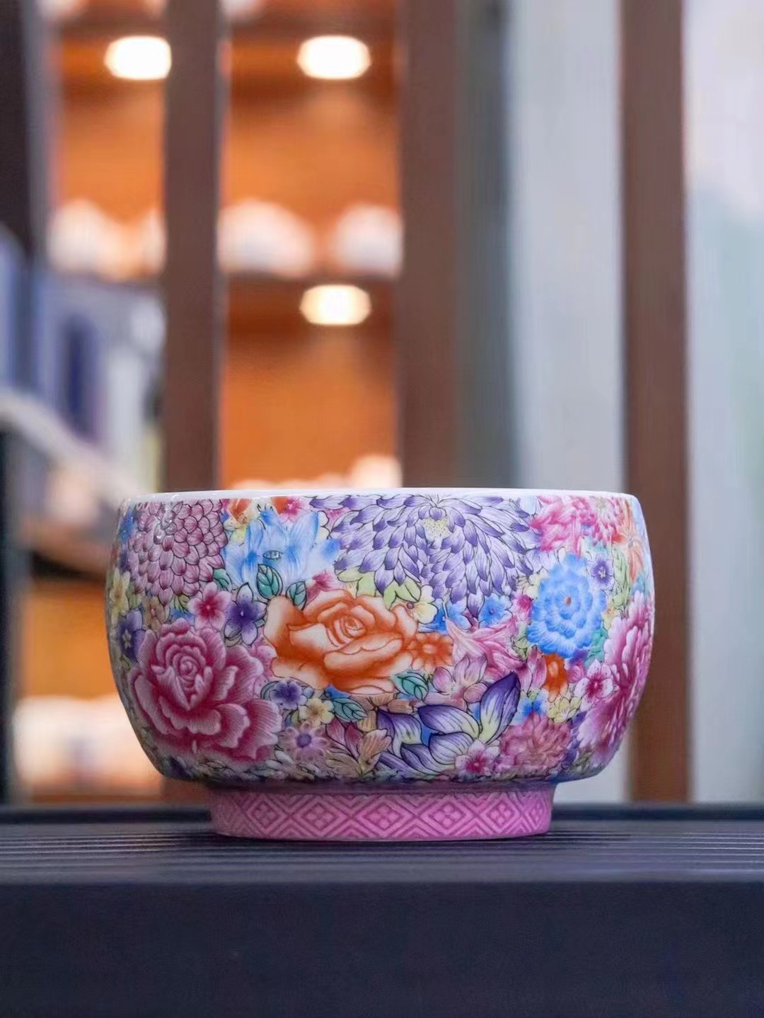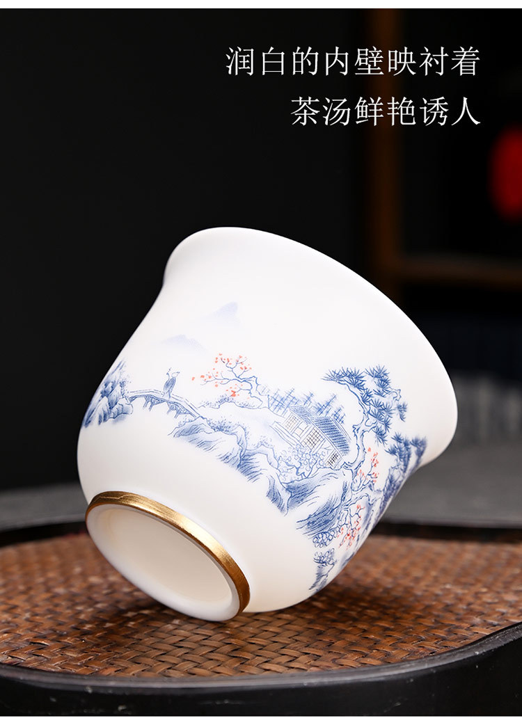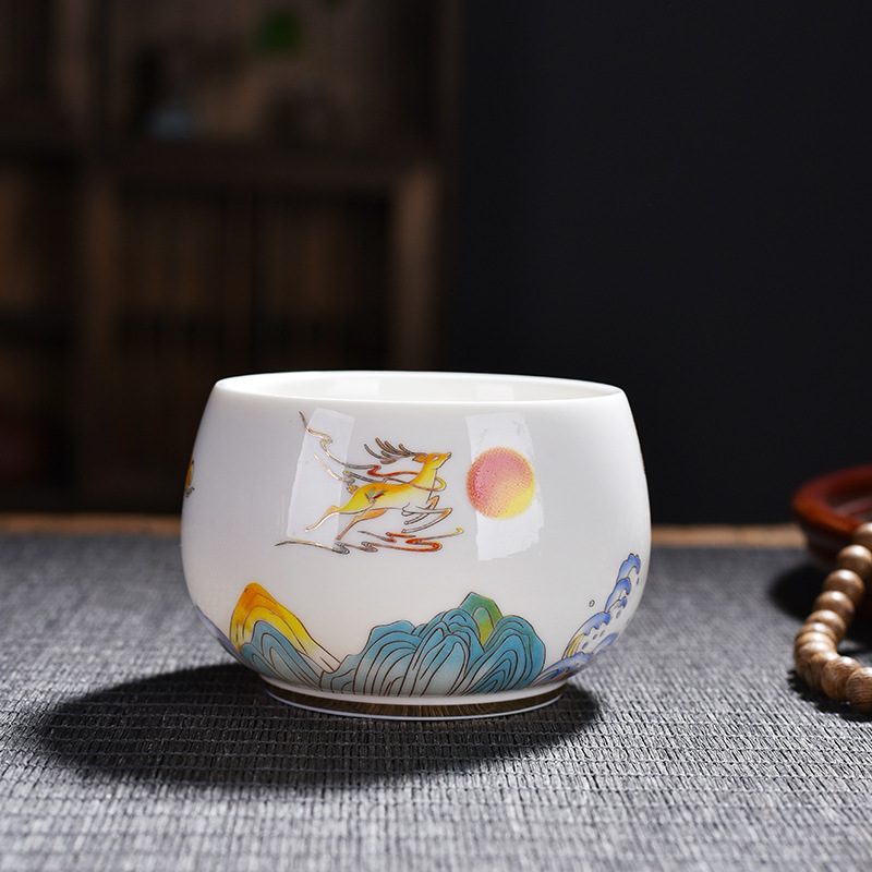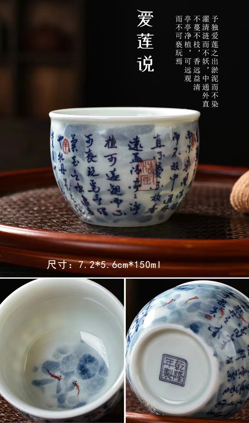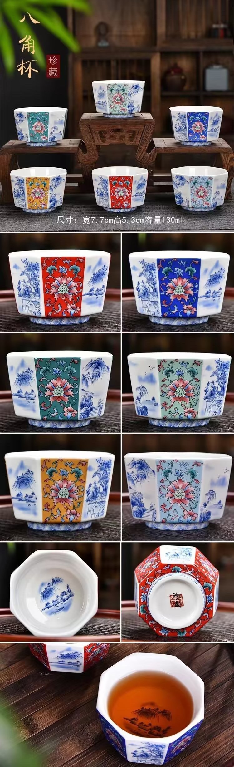 跨境电商批发手绘单杯建盏珐琅彩主人杯黑冰窑变青花高白瓷品茶杯