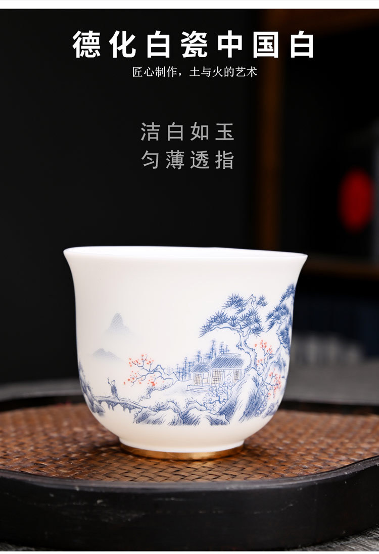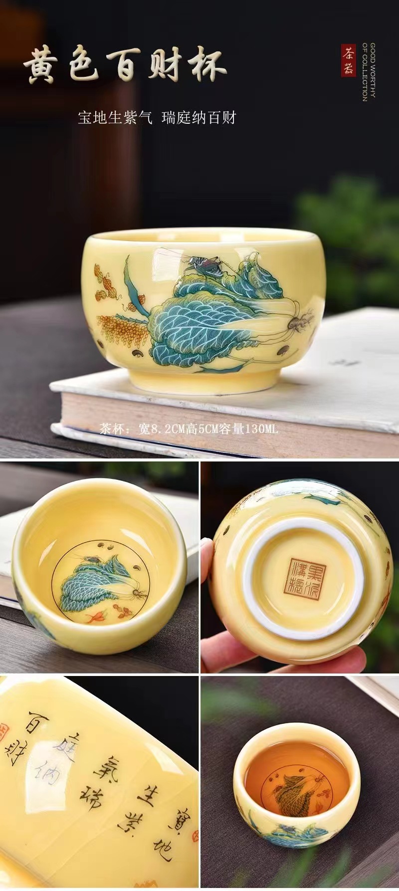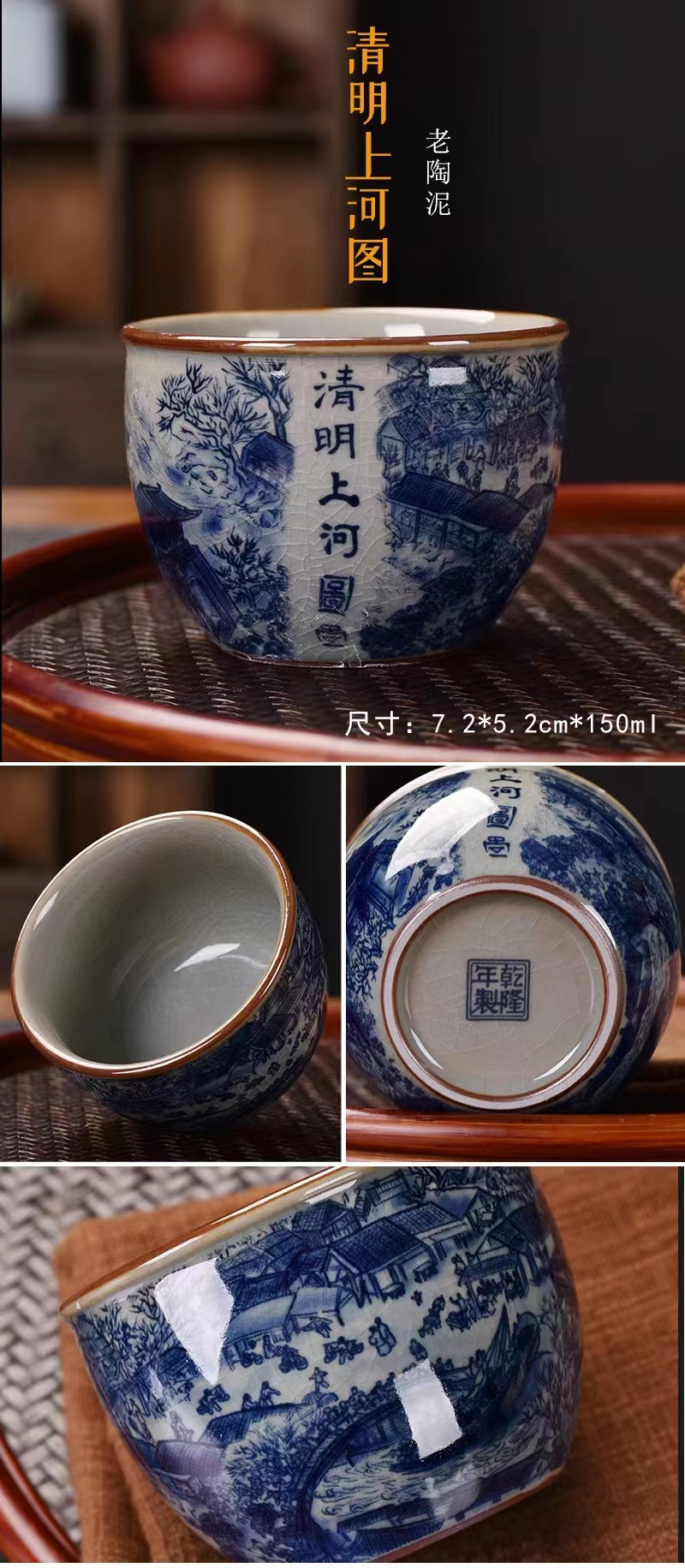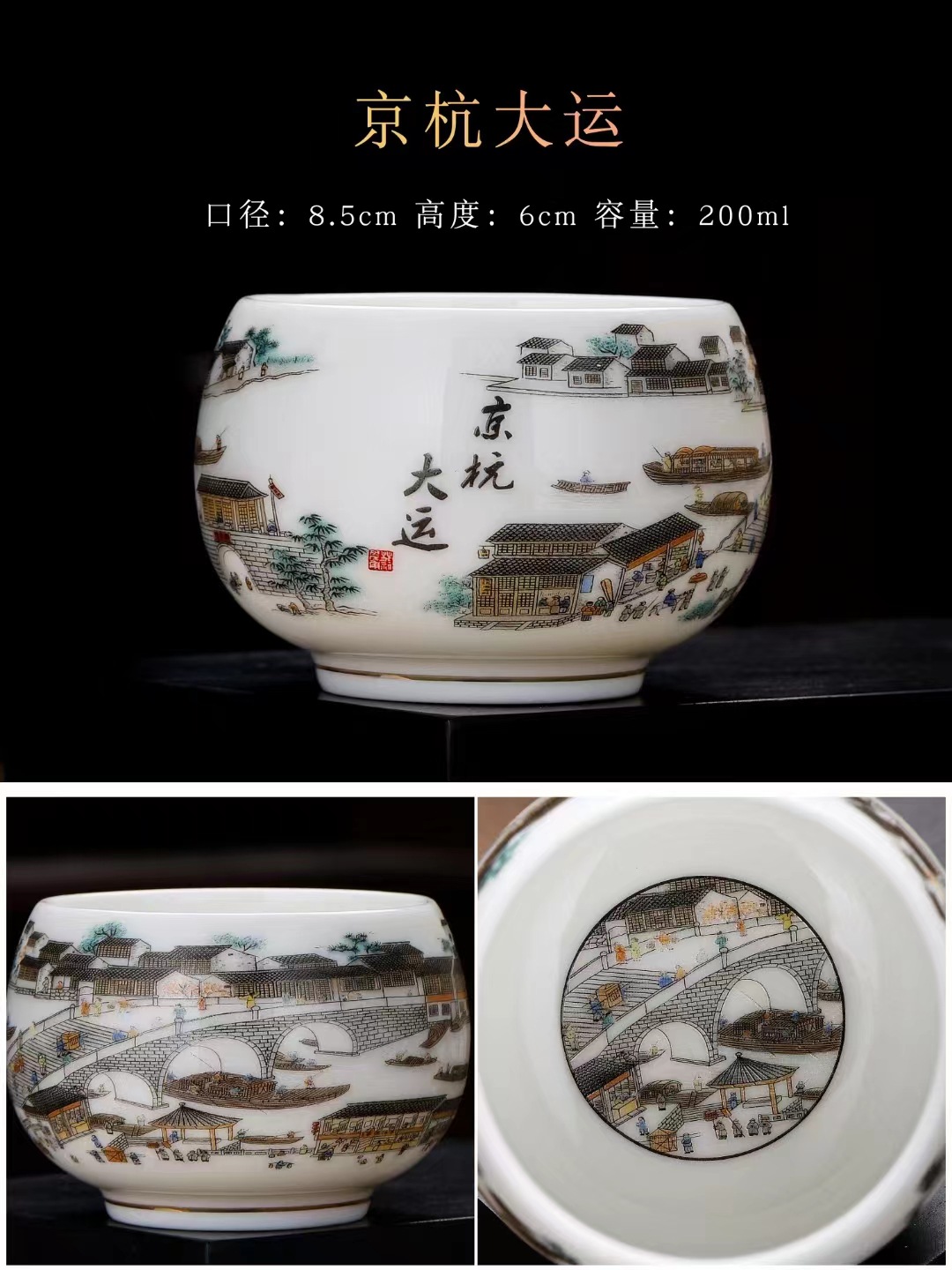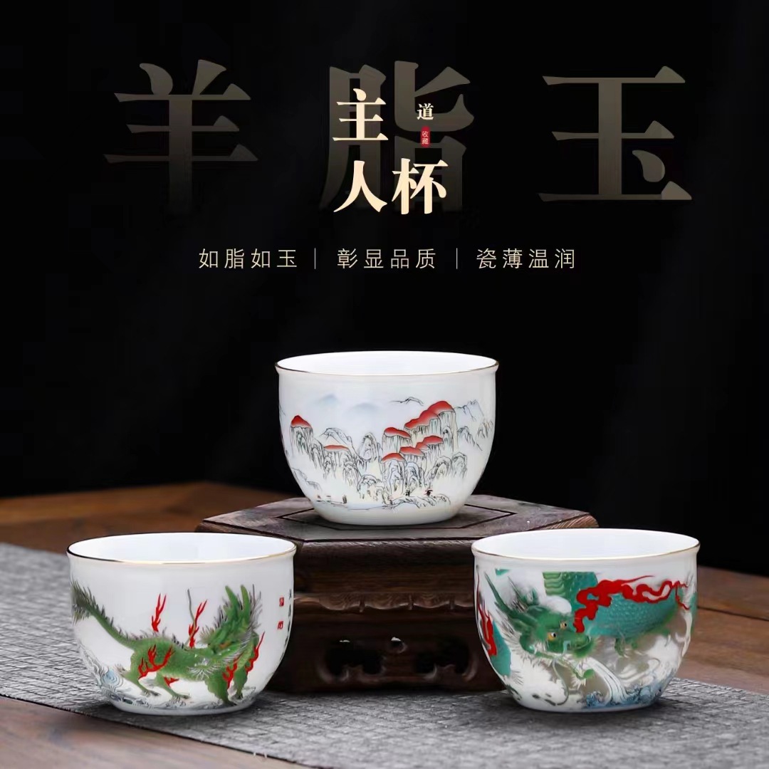 跨境电商批发手绘单杯建盏珐琅彩主人杯黑冰窑变青花高白瓷品茶杯