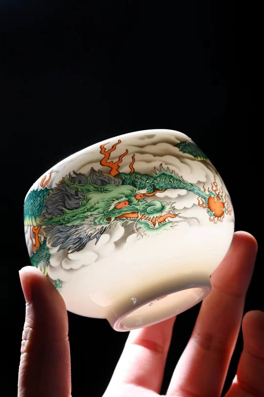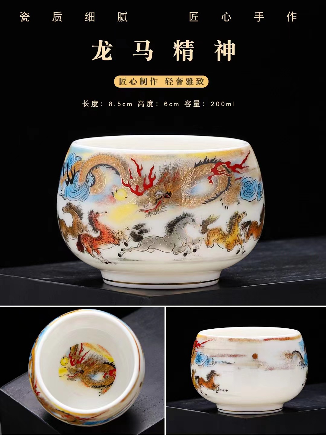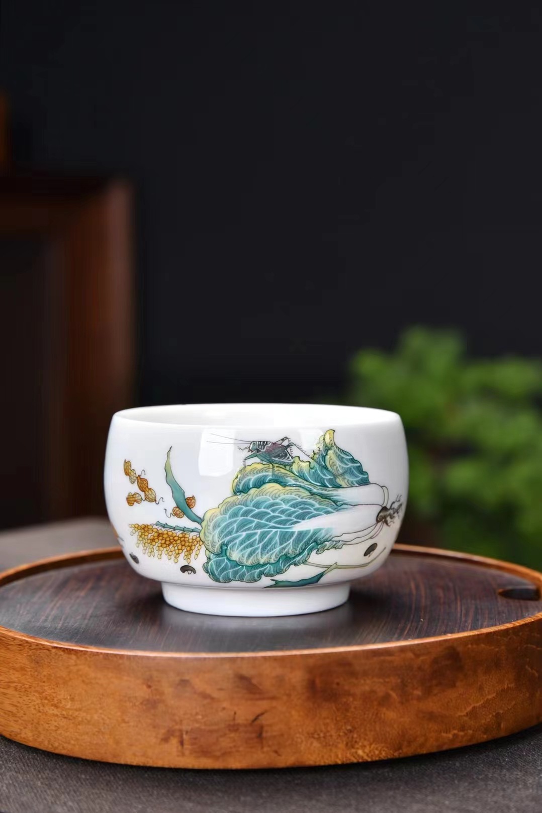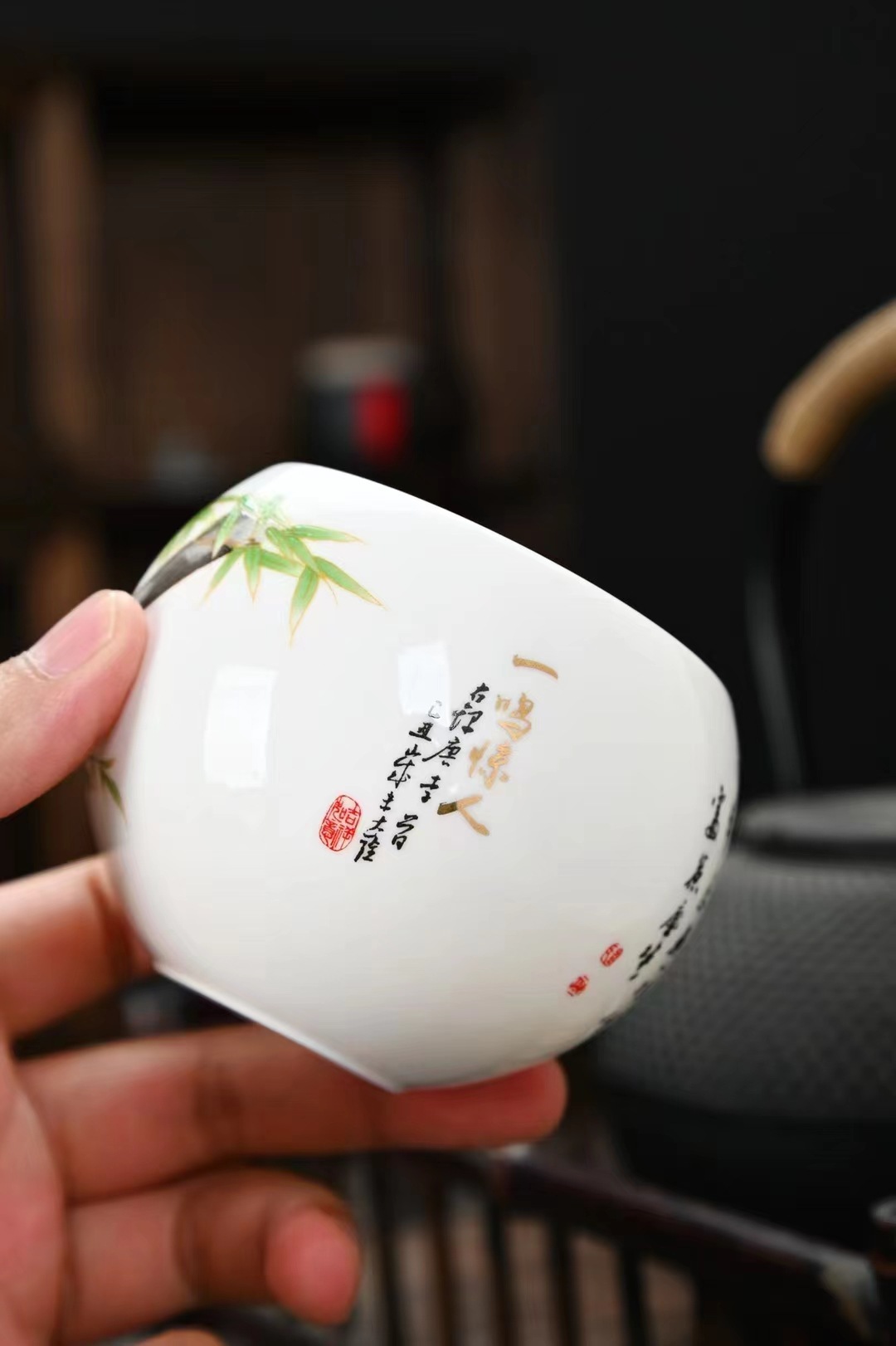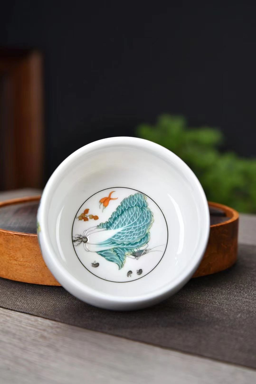 跨境电商批发手绘单杯建盏珐琅彩主人杯黑冰窑变青花高白瓷品茶杯