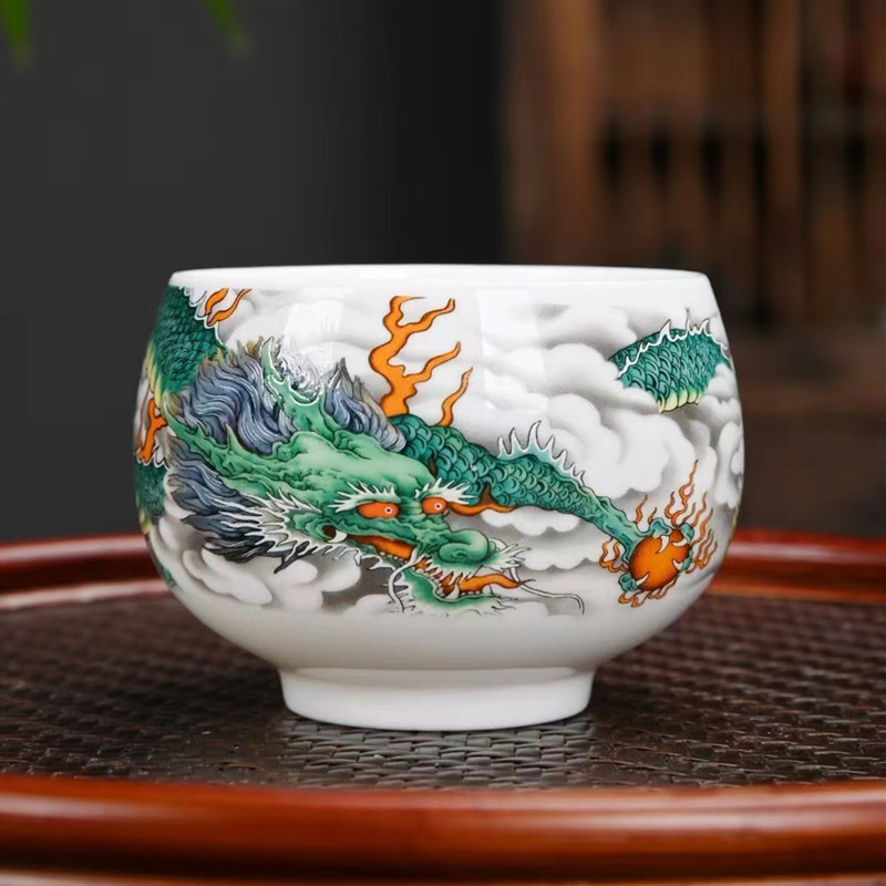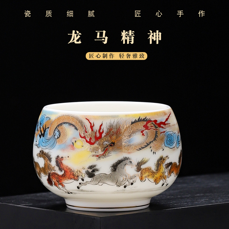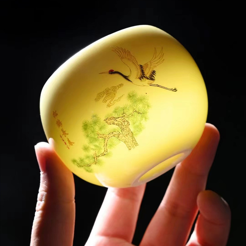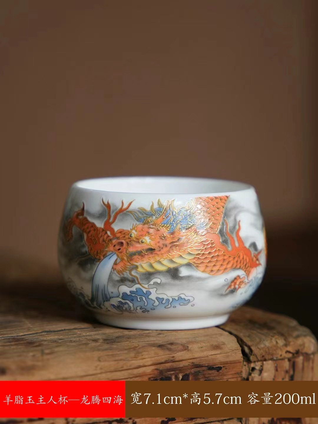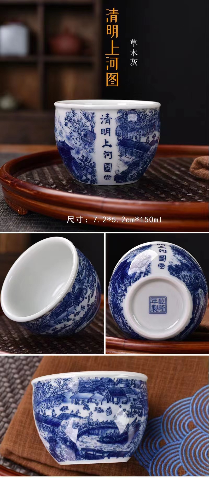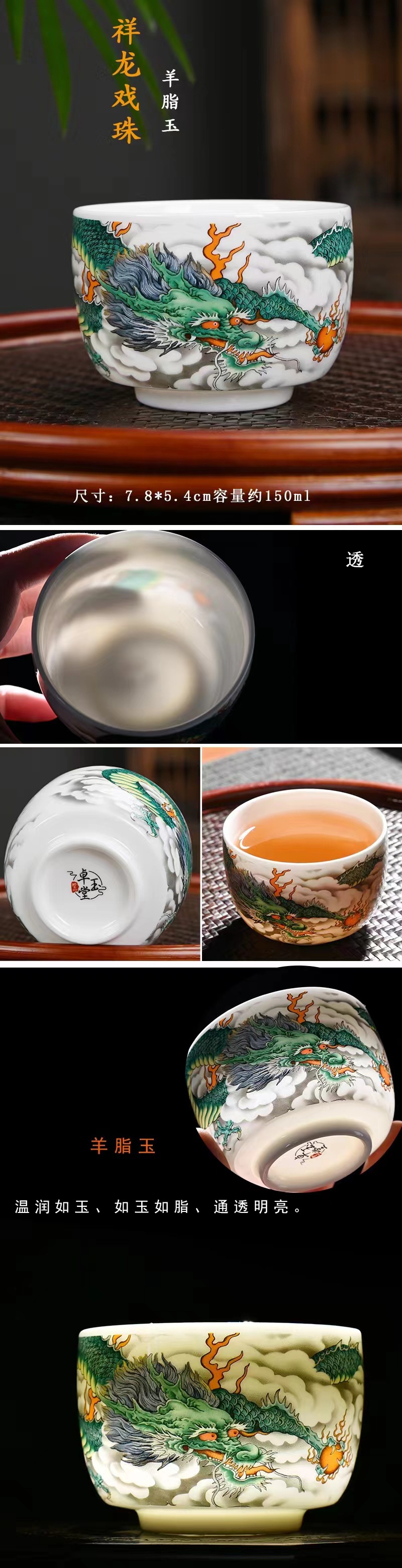 跨境电商批发手绘单杯建盏珐琅彩主人杯黑冰窑变青花高白瓷品茶杯