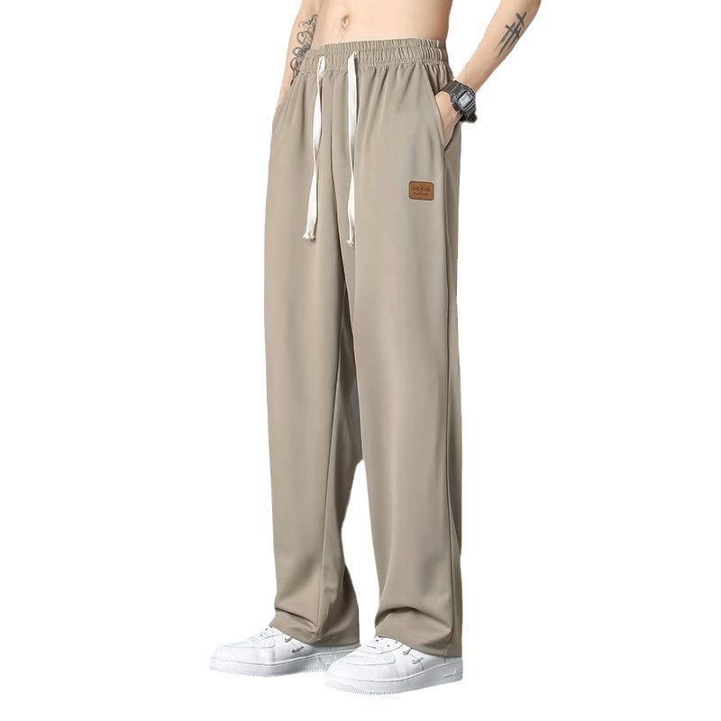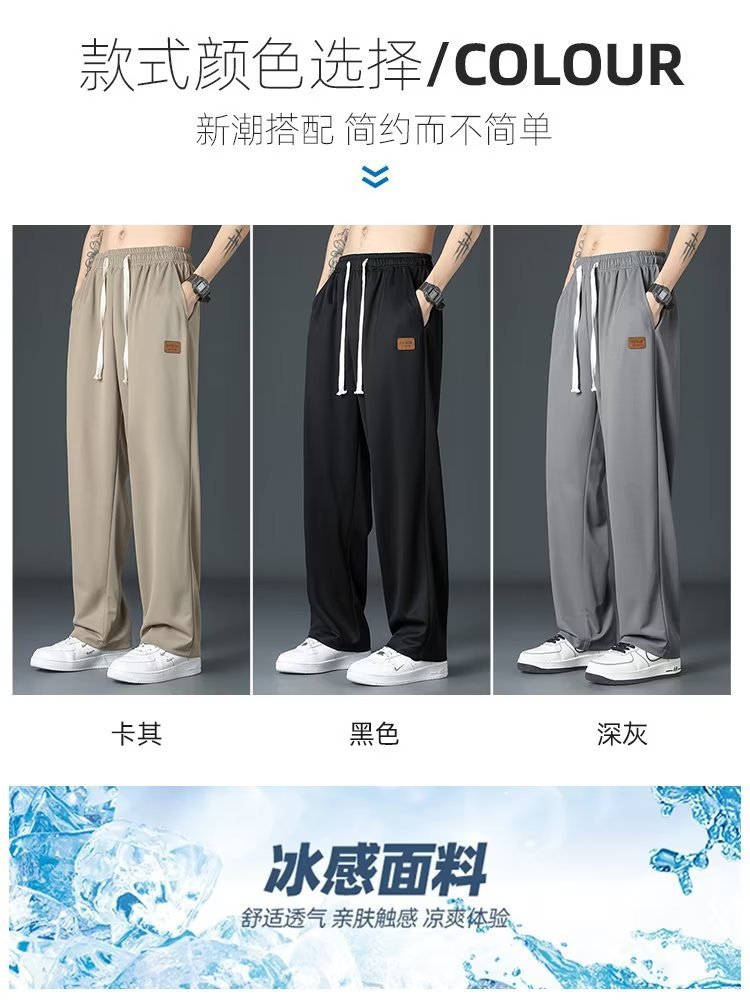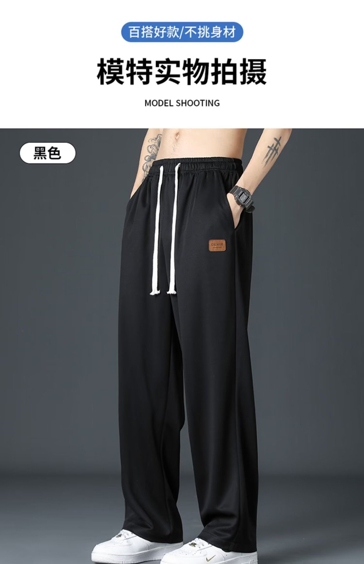 高档薄款冰丝裤子男春夏季男士潮流休闲长裤运动宽松直筒阔腿裤子