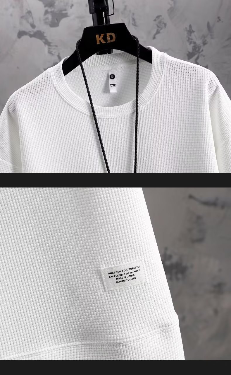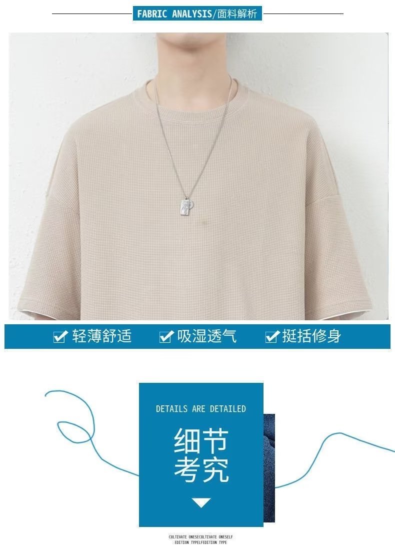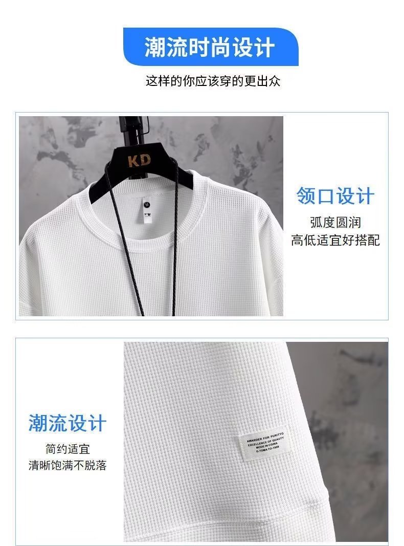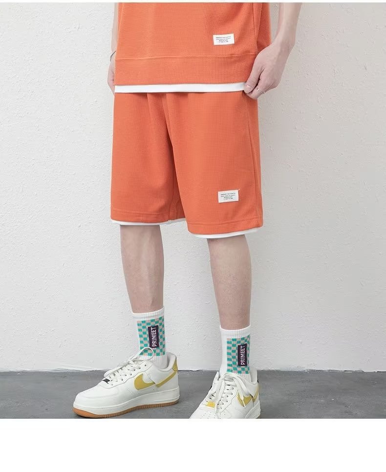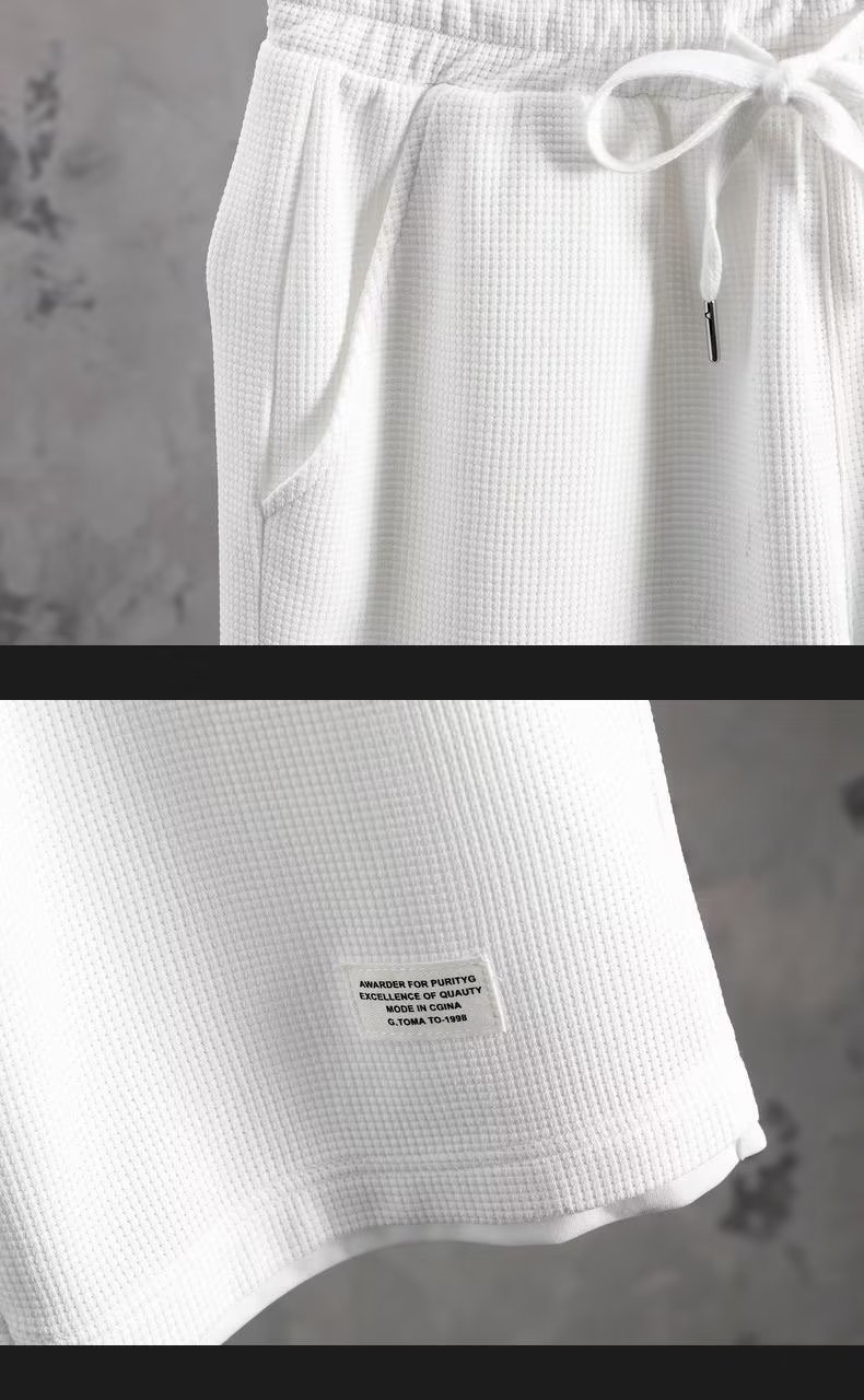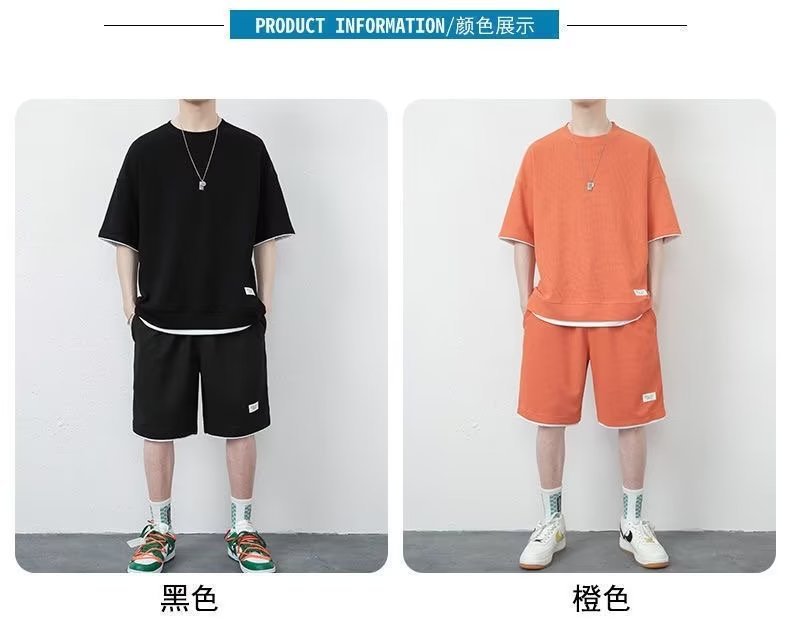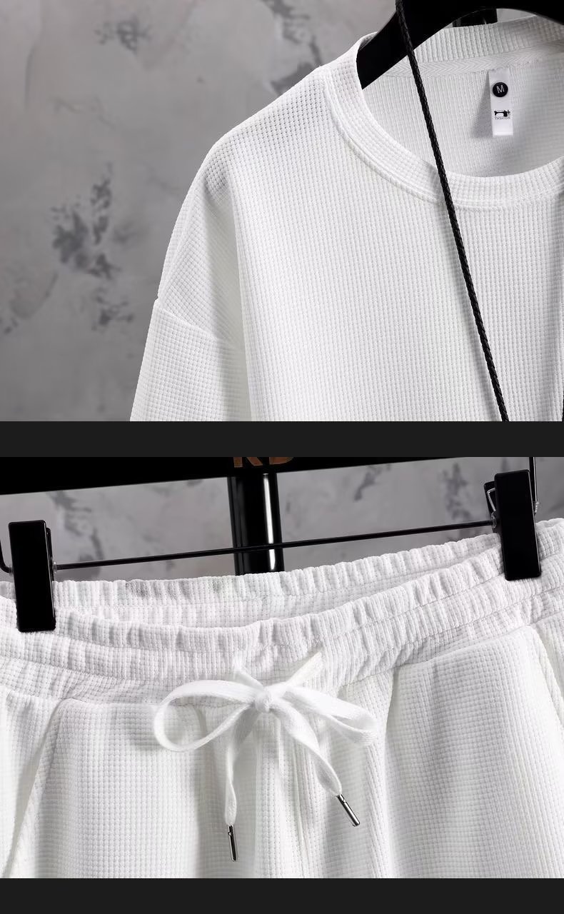 休闲运动套装男夏季冰感潮流宽松华夫格短袖短裤一套衣服帅气搭配